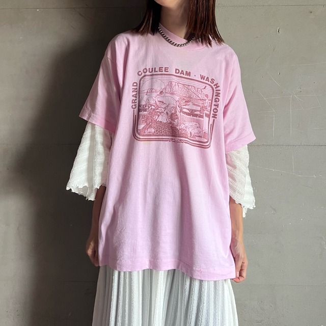 ヨレ感のある万里の長城がプリントされたコンパクトなTシャツ。 ショート丈でサラッと着られるアイテム。 お子様が大きめに着用しても可愛いと思います。 【着用スタッフ身長】 161cm 【平置き実寸(cm)】 着丈 / 53 肩幅 / 48 身幅 / 48 袖丈 / 15 素材:表記なし ダメージ:フロントに穴二つあります。かなり歪みがあり裾部分がカーブしています。 ――――――――――――――――――――――――――――――――― 〇ご購入前にお読みください〇 ●梱包資材については簡易包装とさせていただいておりますので内袋に入れずに発送しております。 ●当店の商品は全てUSED商品のため、記載がなくても多少の使用感はあります。デッドストックなどの場合は表記しております。 ●ダメージにつきましては、ごく小さいものや当店基準でほぼ目立たないと判断したものは記載を省略する場合があります。 ●できる限り実物に近い色味の写真の掲載を心がけておりますが、お使いのブラウザにより差が出ることがあります。 ●商品は実店舗でも販売しております。管理には細心の注意を払っていますが、ご注文と同時に店頭で売り切れてしまう可能性があります。そのような場合は、こちらでキャンセルさせていただきます。ご了承くださいませ。 ●サイズ、色味のイメージ違いなど、お客様都合での返品交換はお断りさせていただいております。 ●USED商品に慣れていない方、神経質な方はご購入をお控えください。 ●発送やお問い合わせの返信につきましては、即日を心がけていますが店舗休業日は発送等を行なっておりません。翌営業日までお待ちください。
