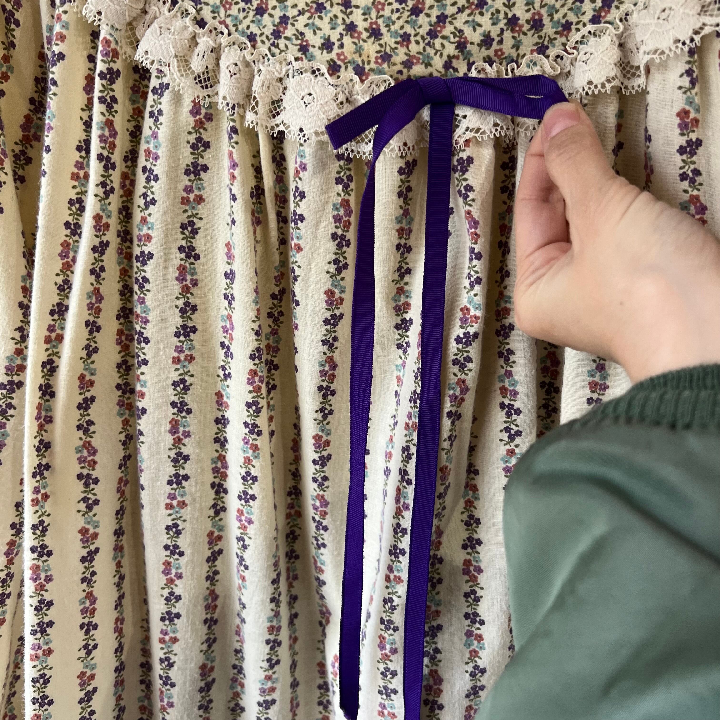 小花柄とレースのコットンワンピース。