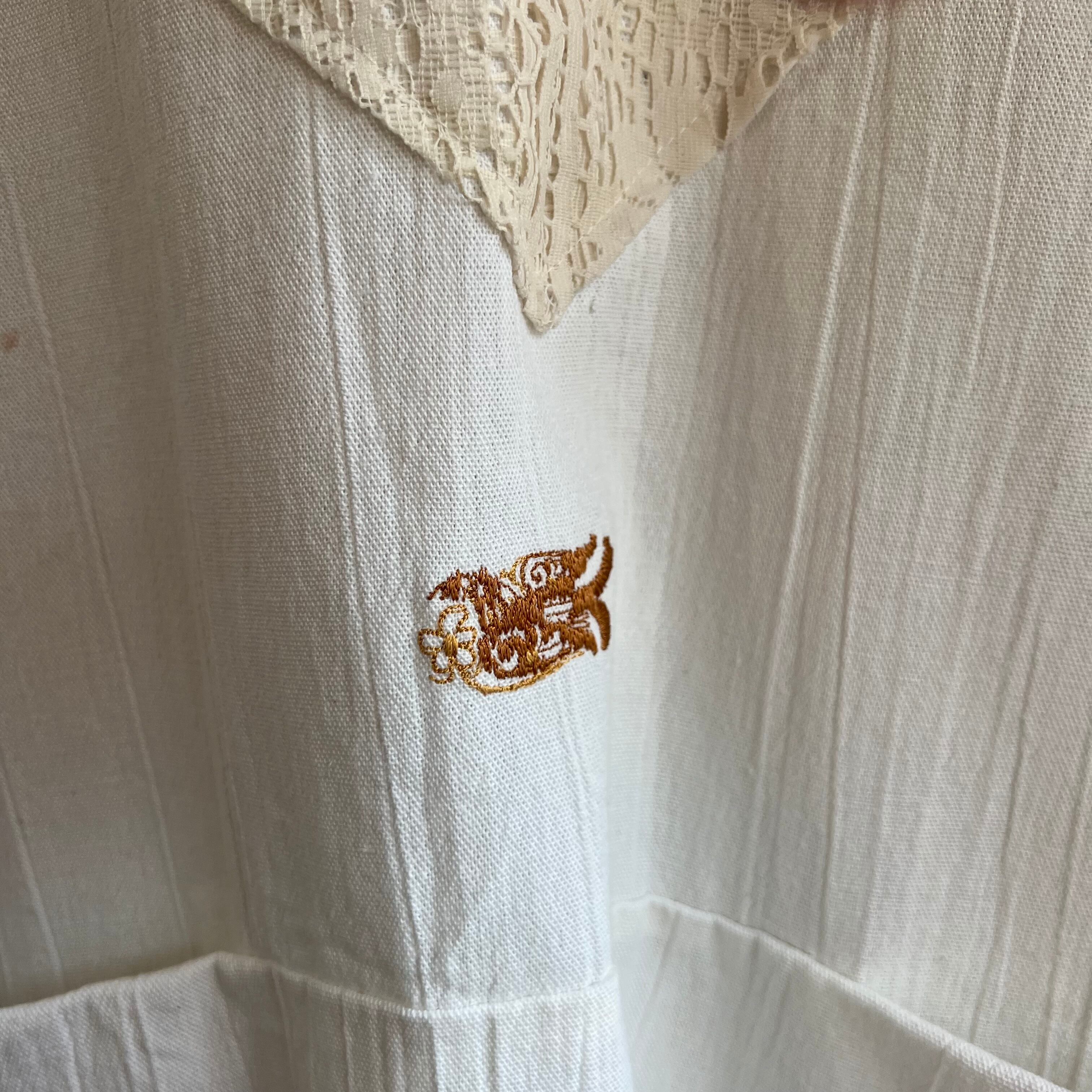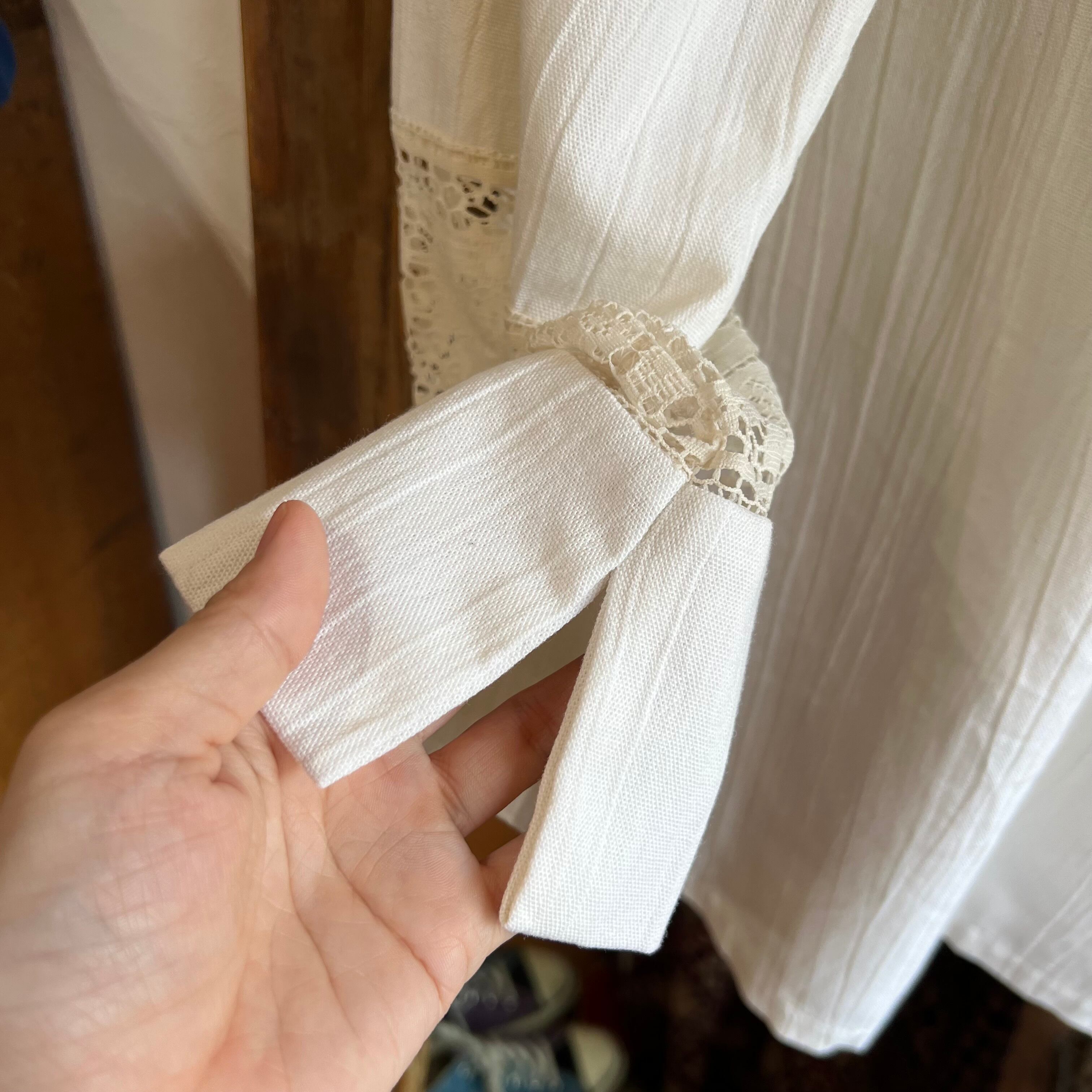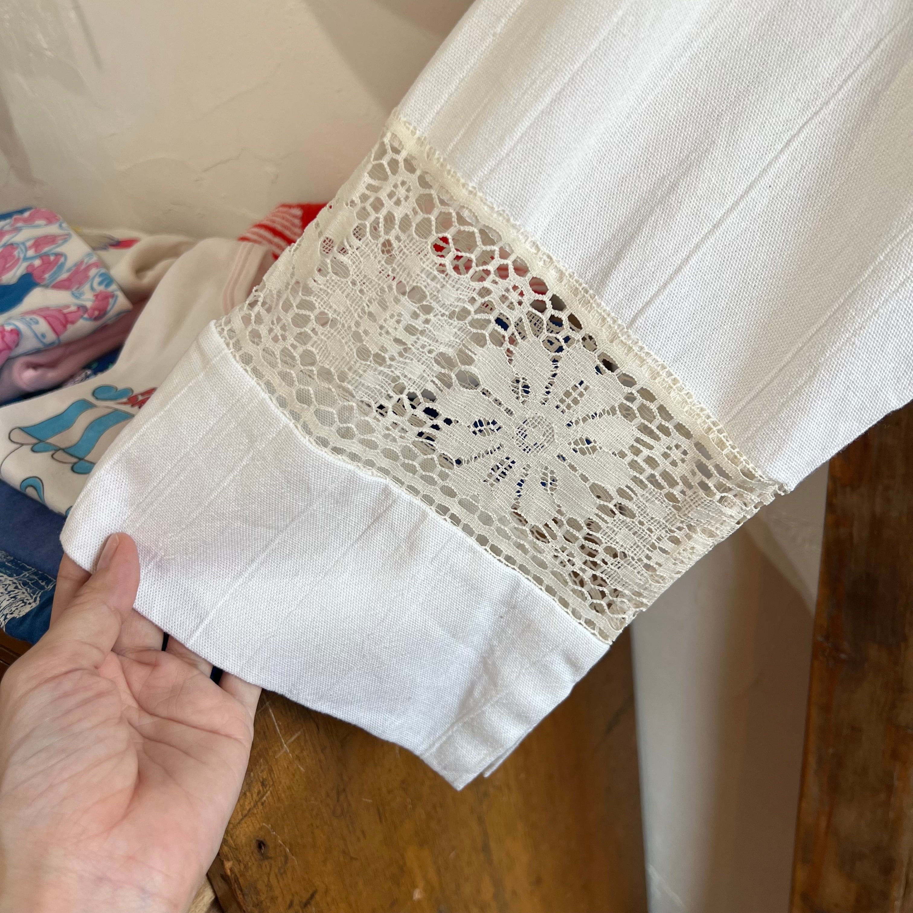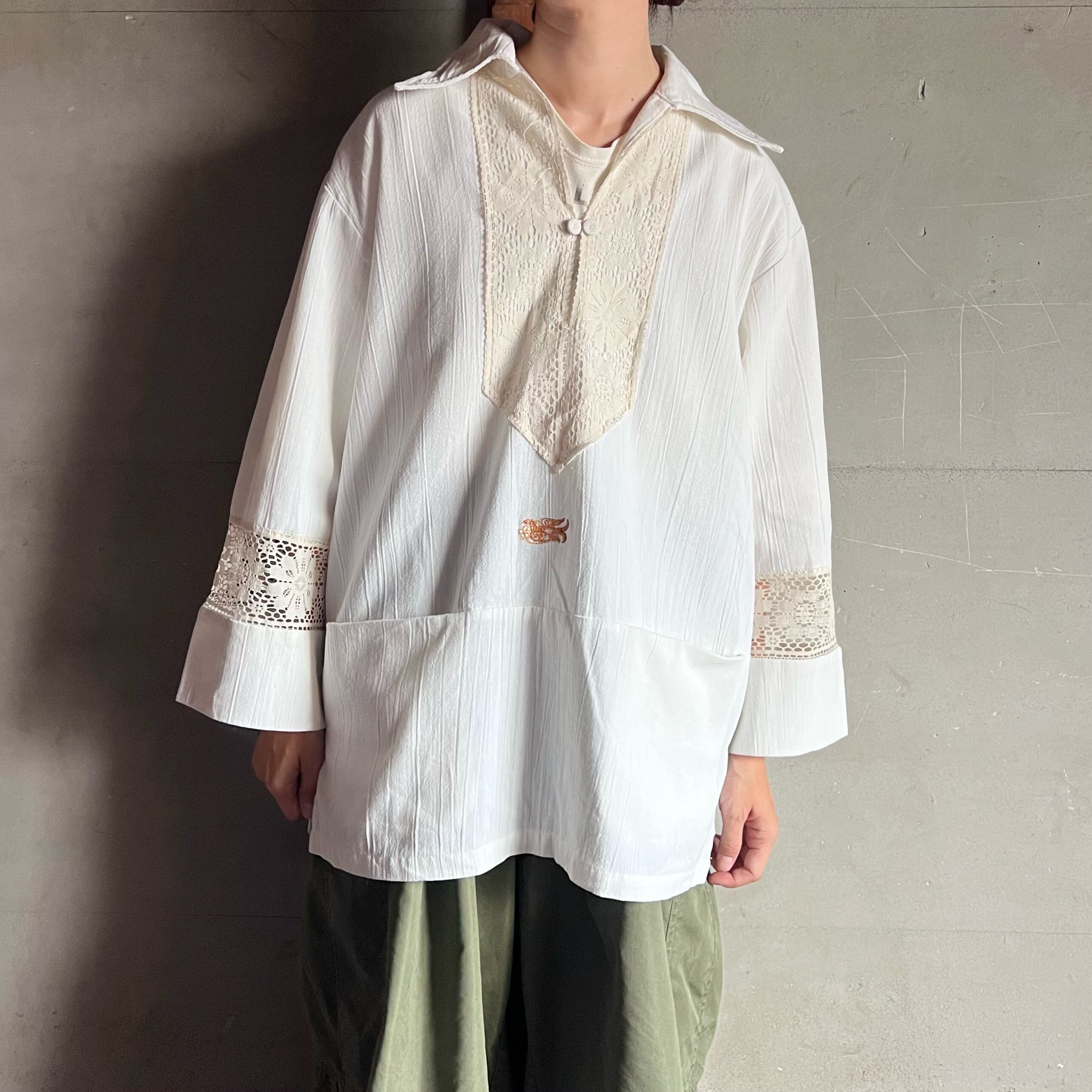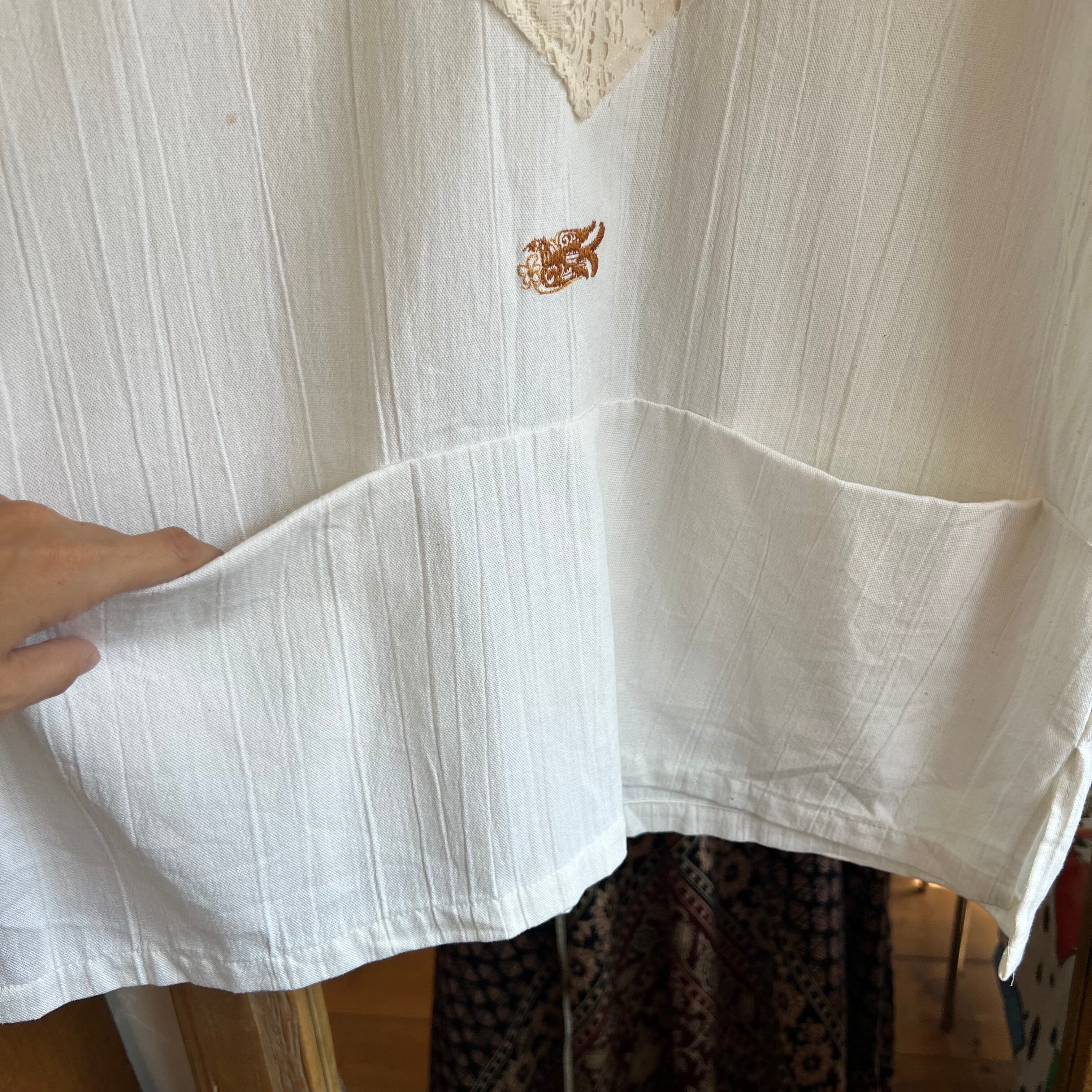 胸元や袖にレースの切り替えがしてあり、フロントには大きなポケットも。