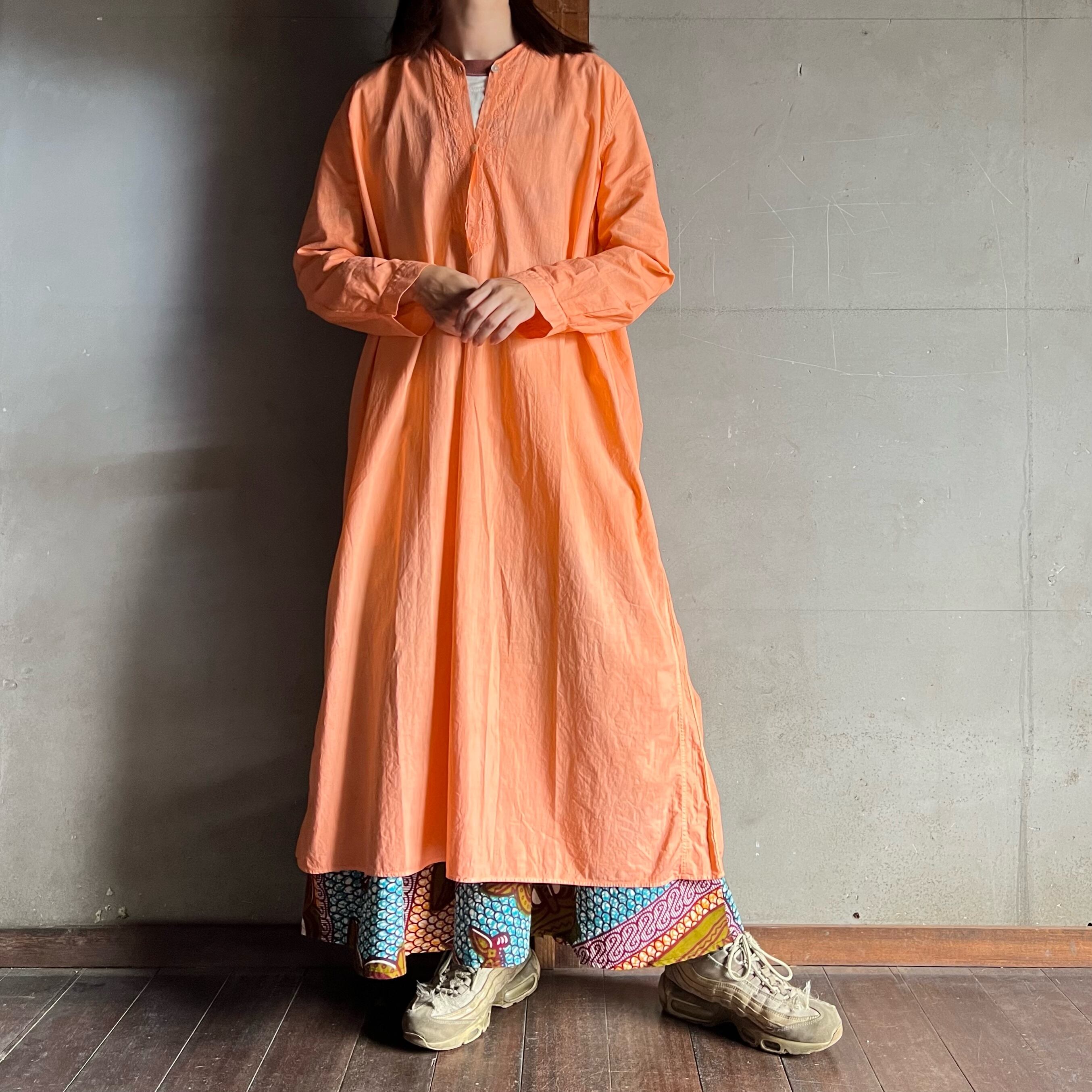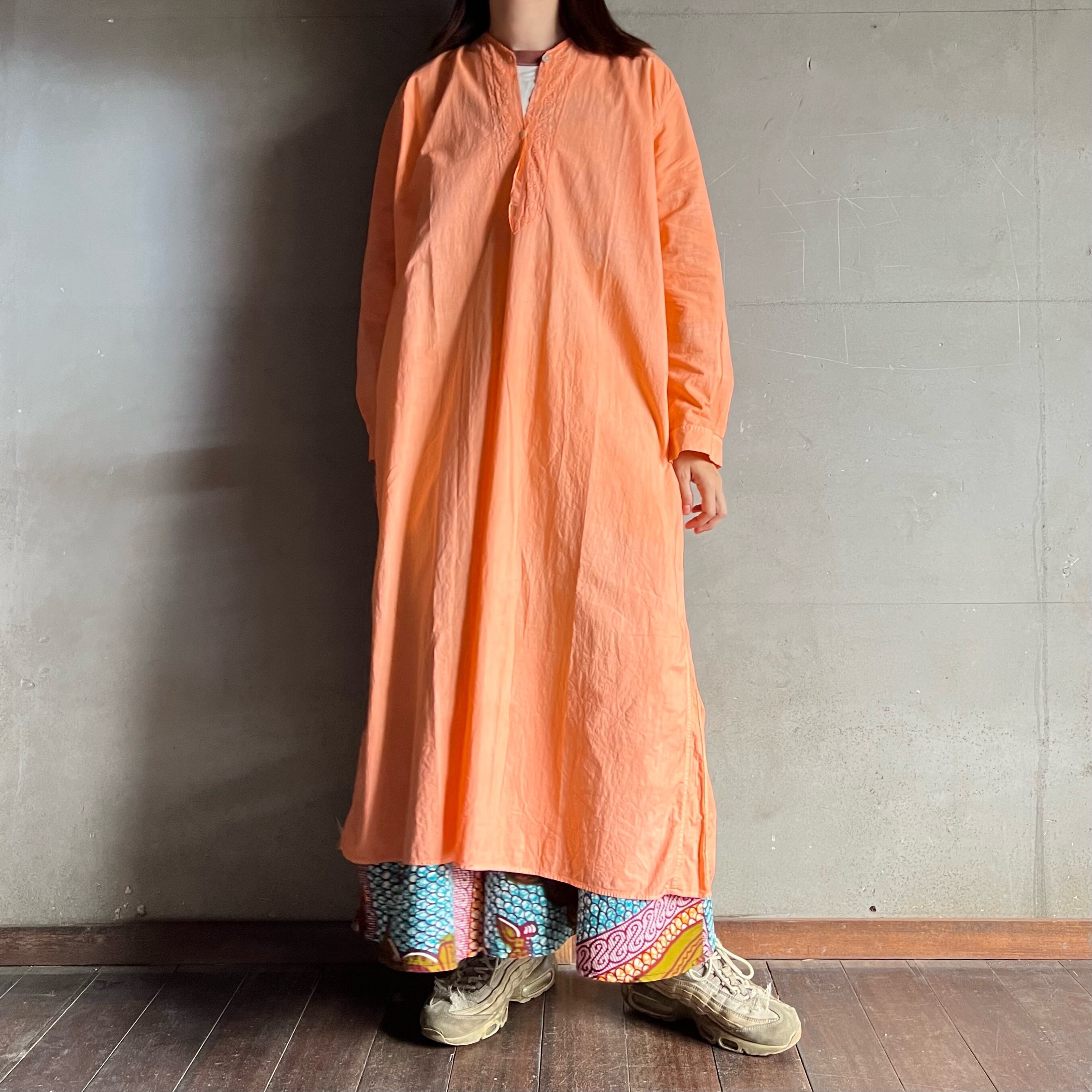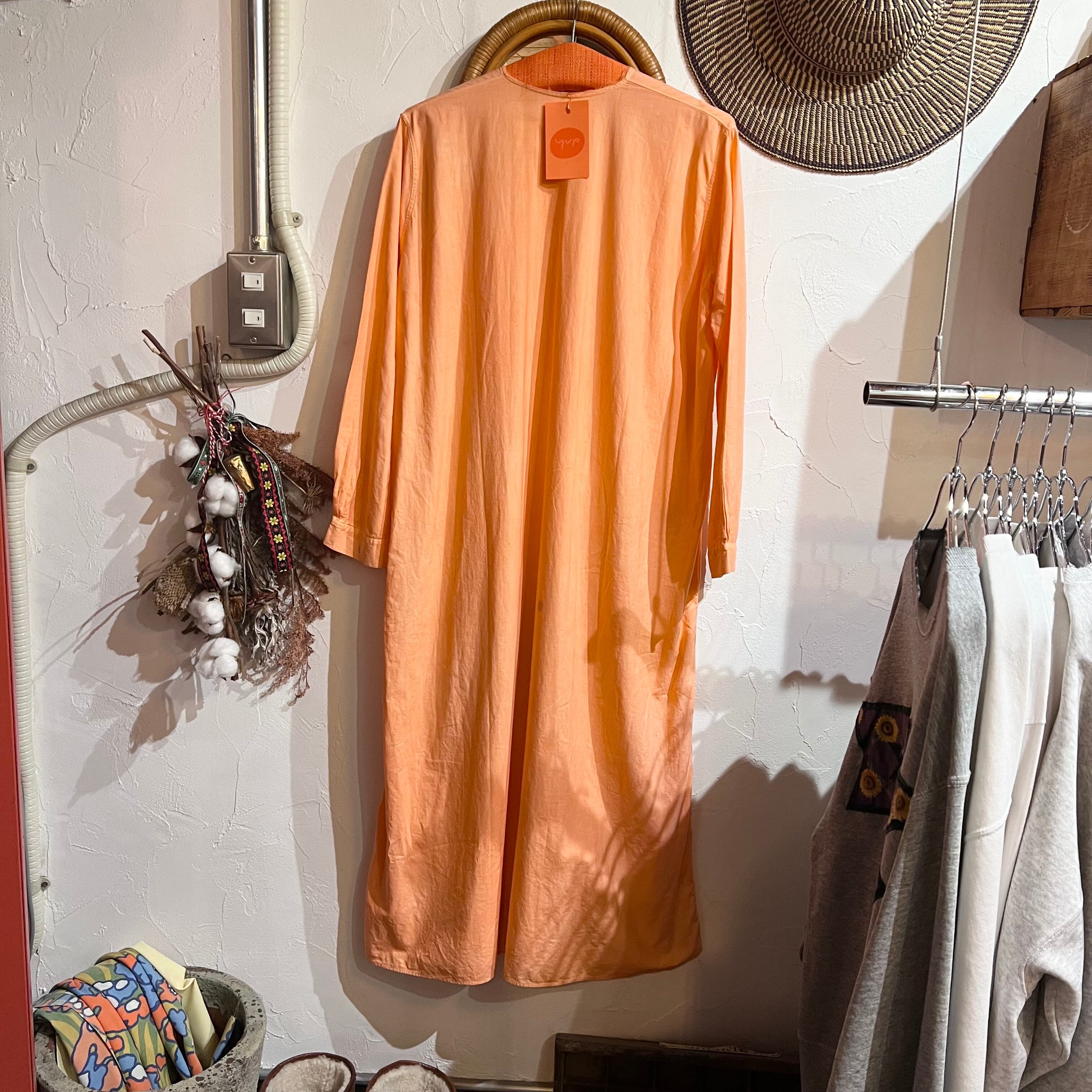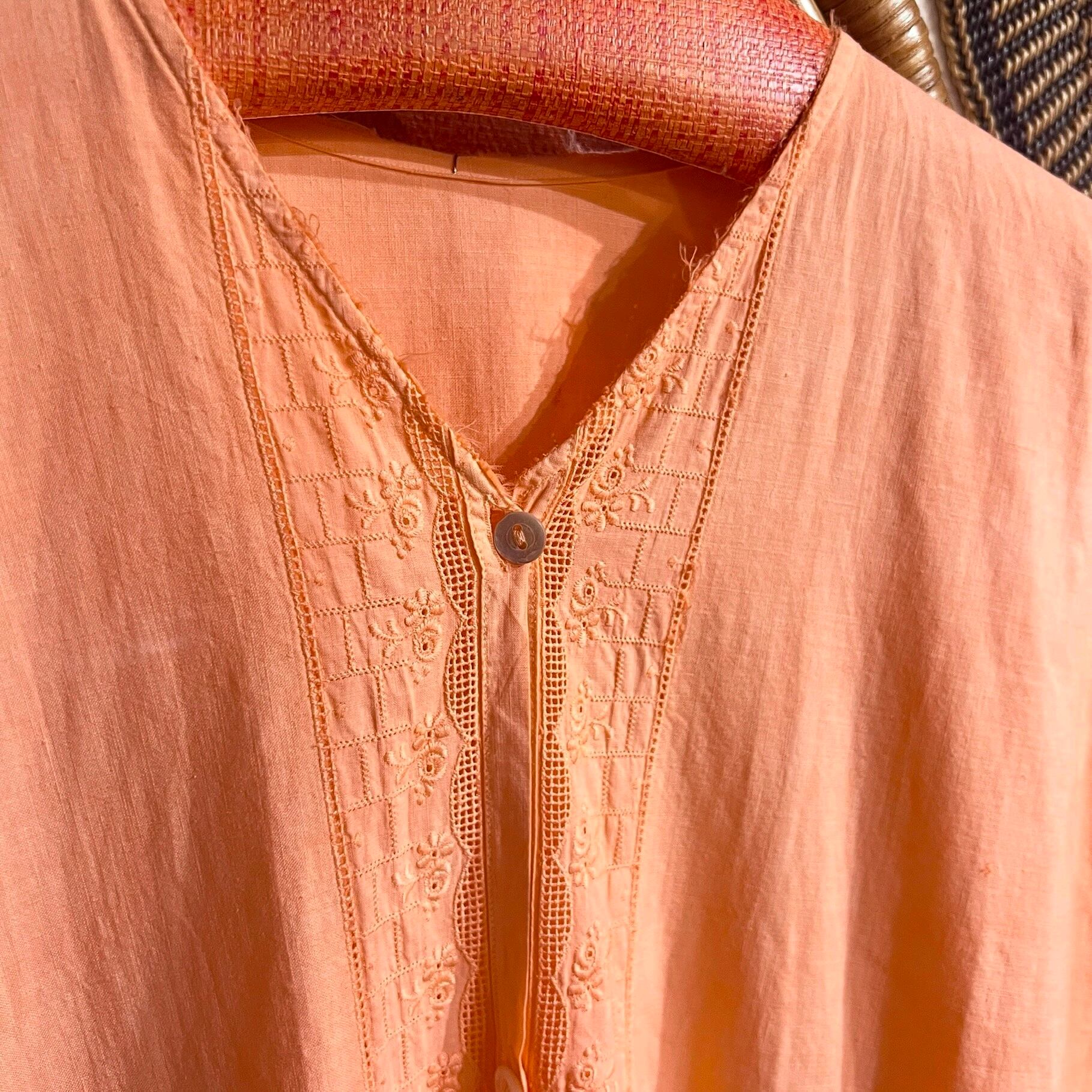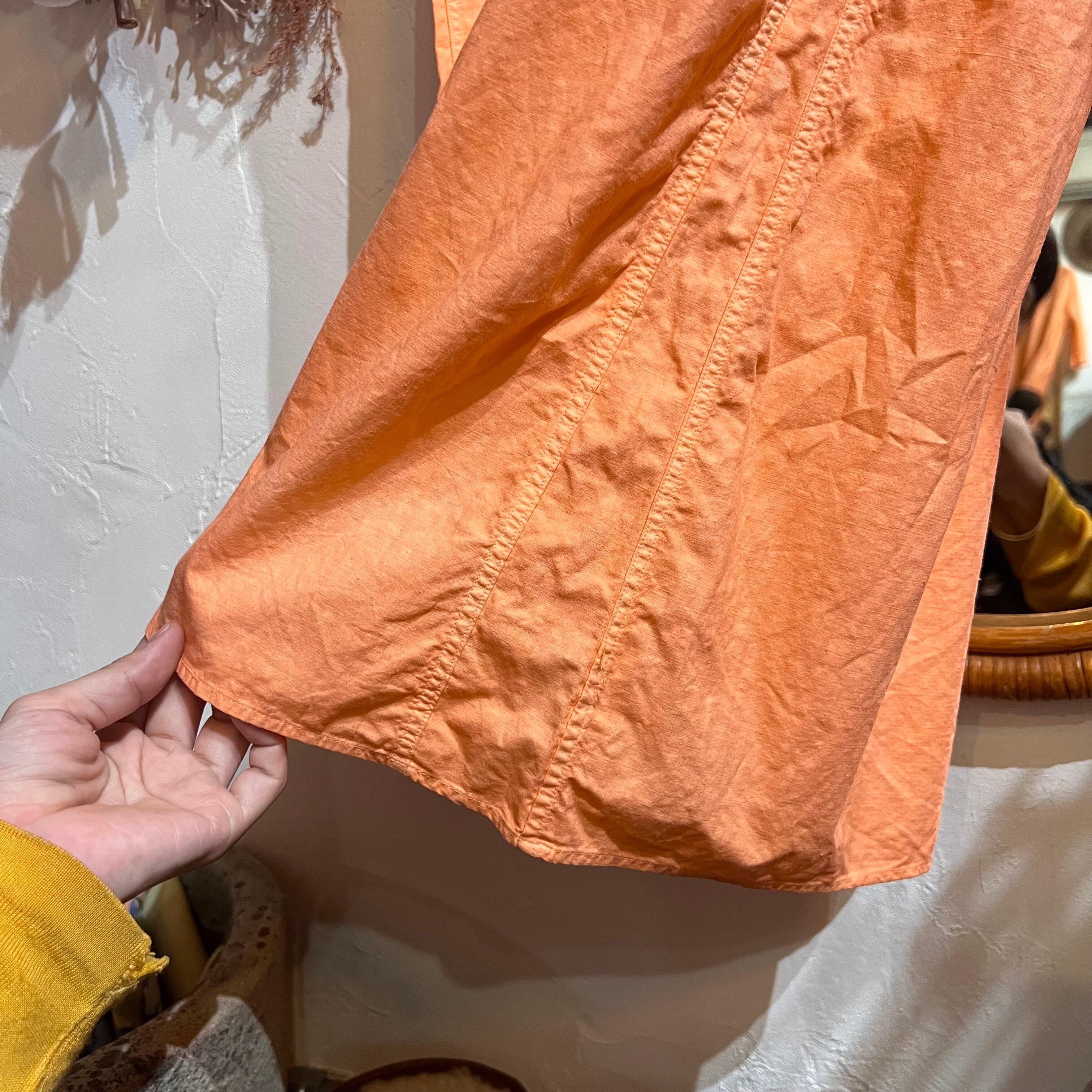 アプリコットオレンジで後染めされたアンティークドレス。