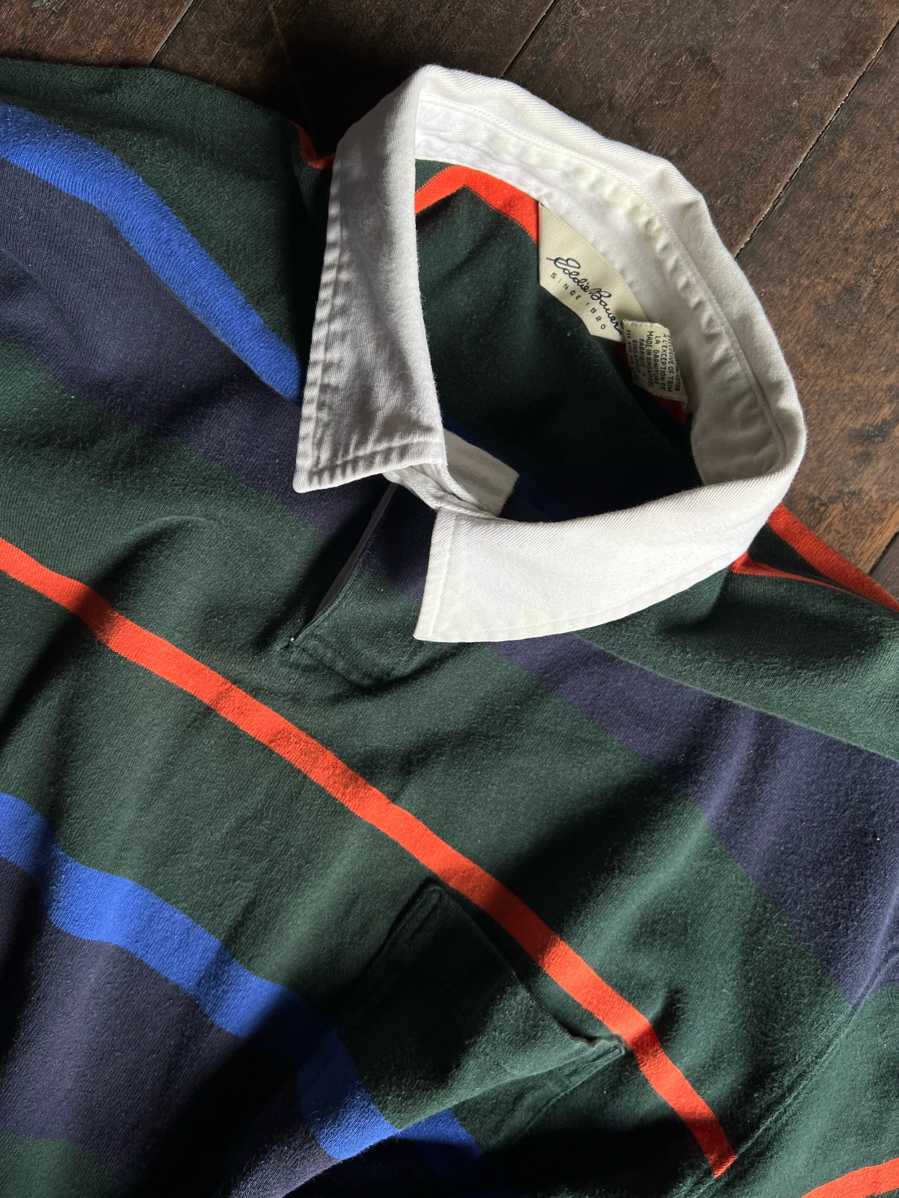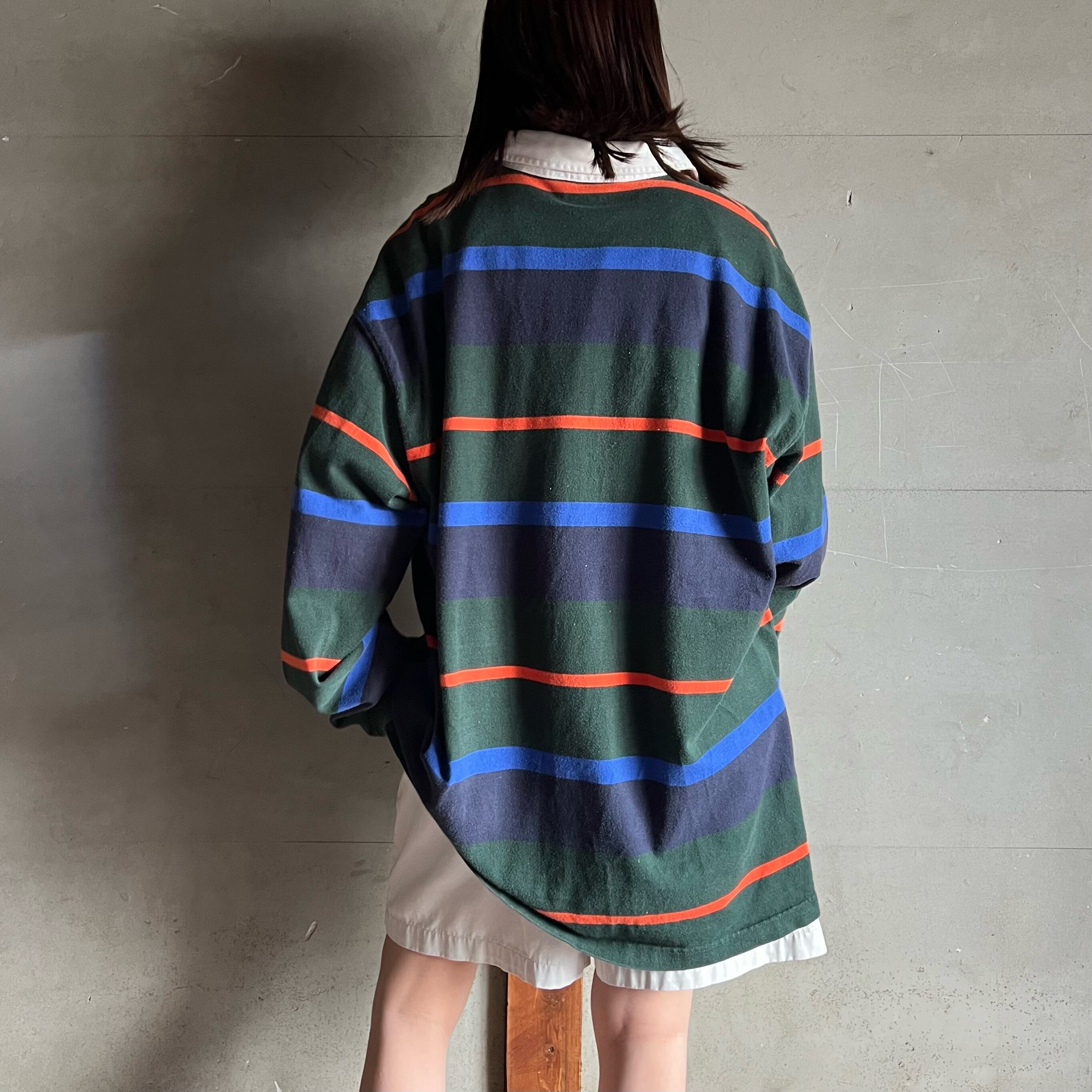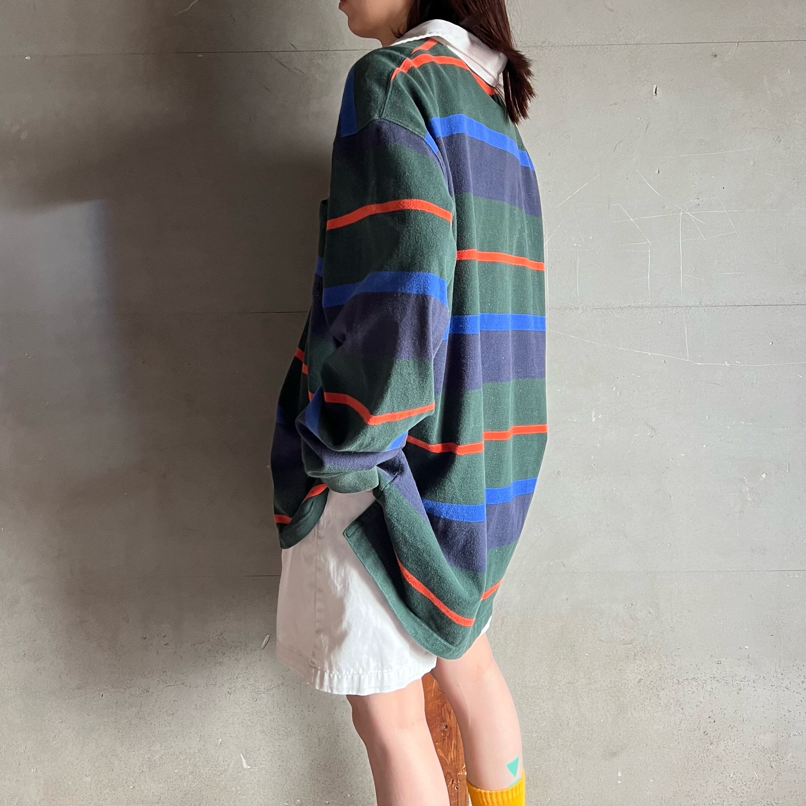深いグリーンベースにブルーとオレンジのラインが映えます。