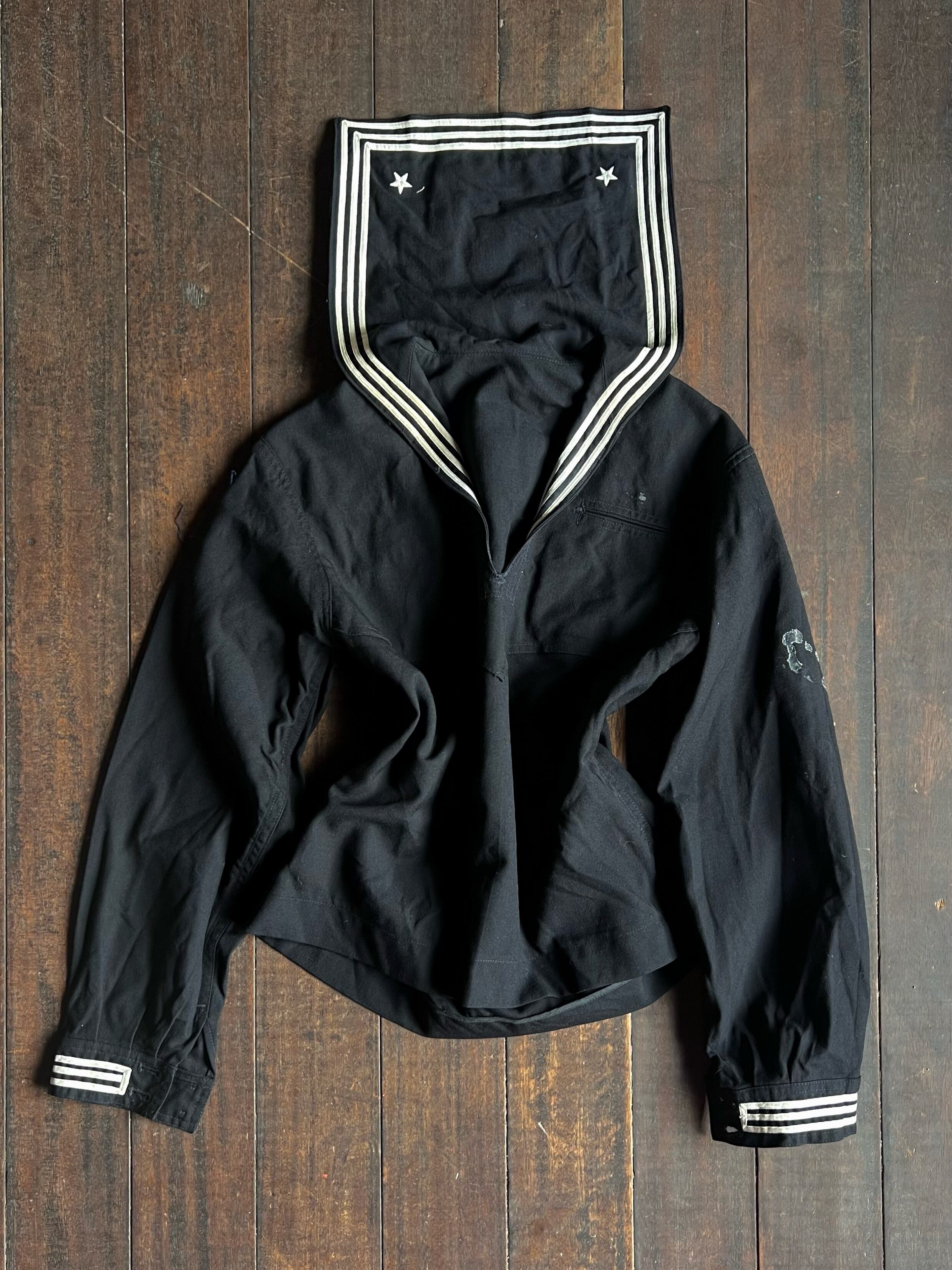 左袖に腕章の跡、ポケット上にも小さな跡がありますがそのほかはとても綺麗な状態です。