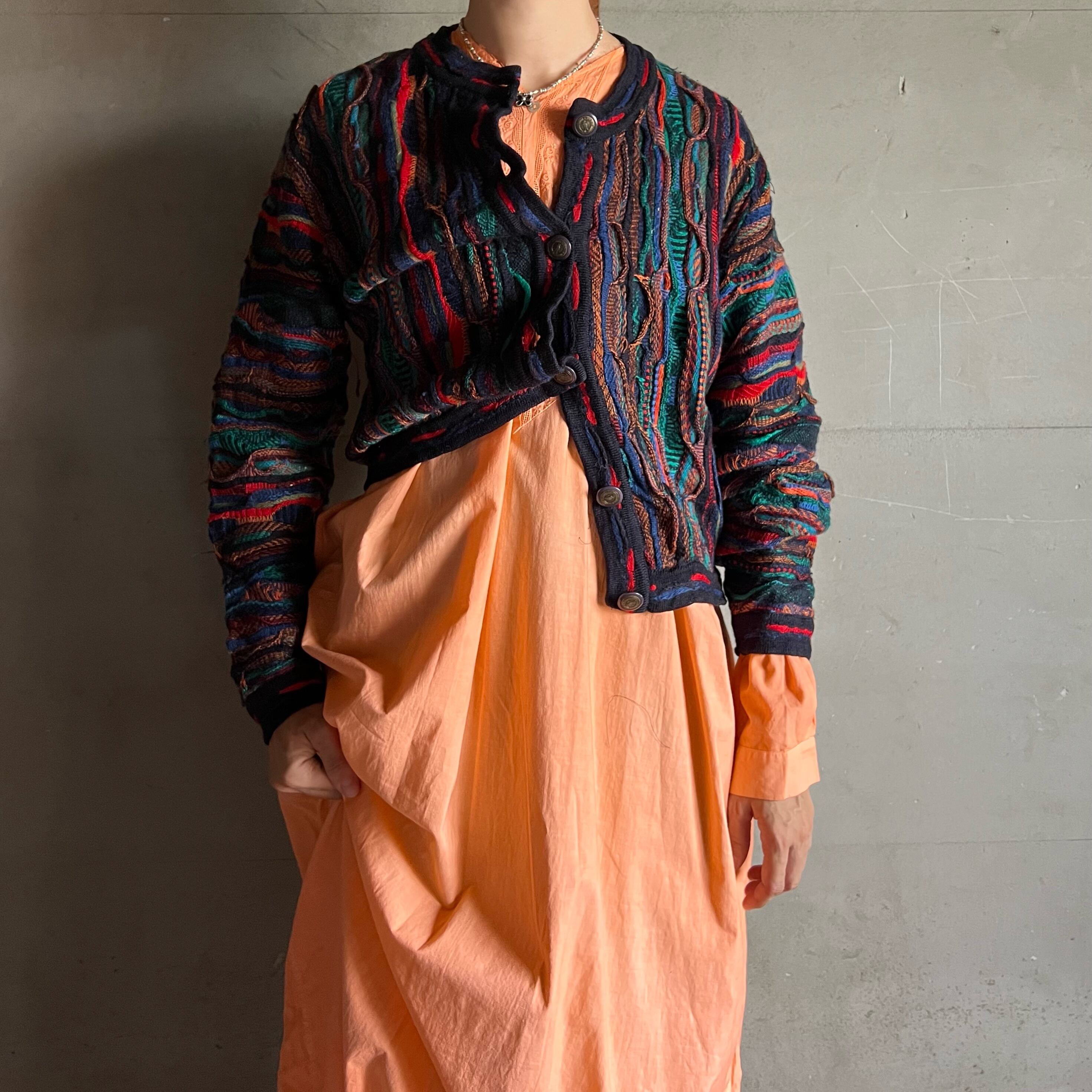 ぱっと見落ち着いた雰囲気にまとまっていますがいろんな色が入っていて原色系のお洋服とも相性がいいです。