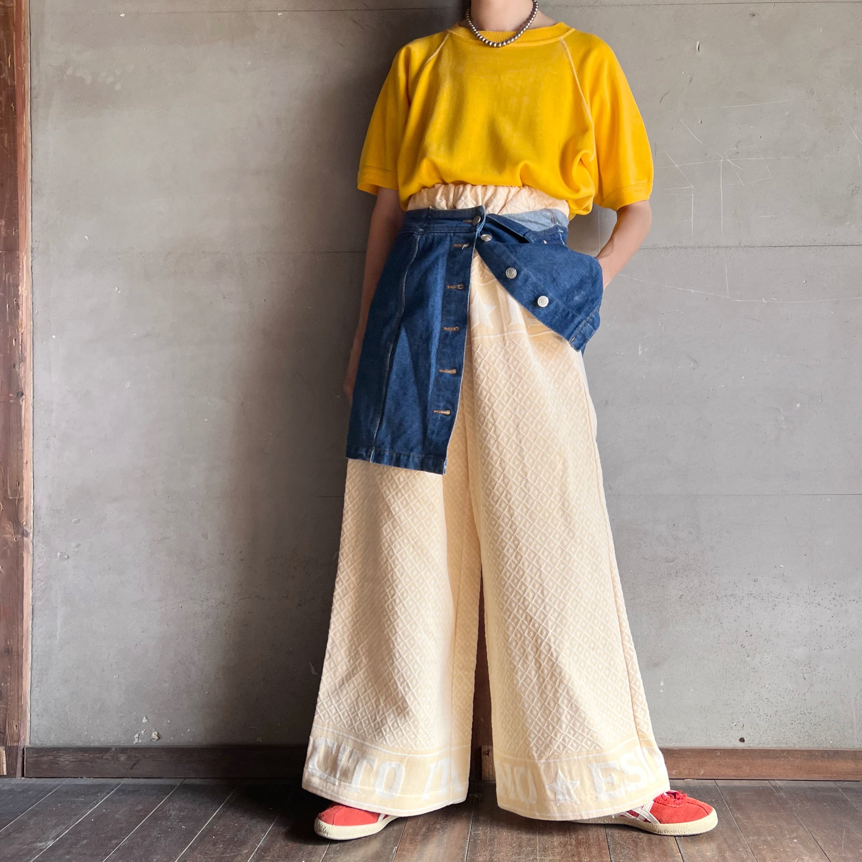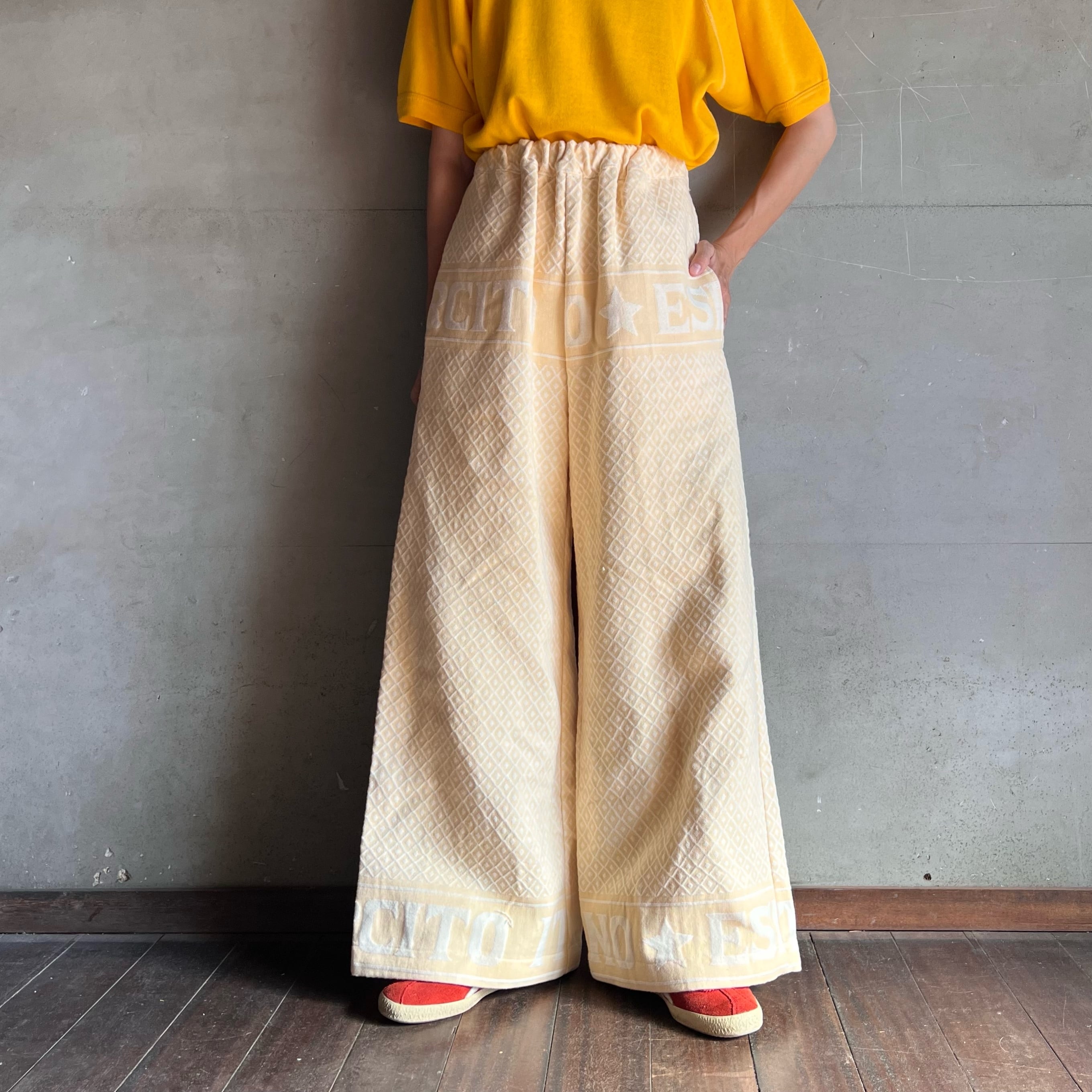 ヴィンテージのイタリア軍のコットンブランケットを使ったイージーワイドパンツです。