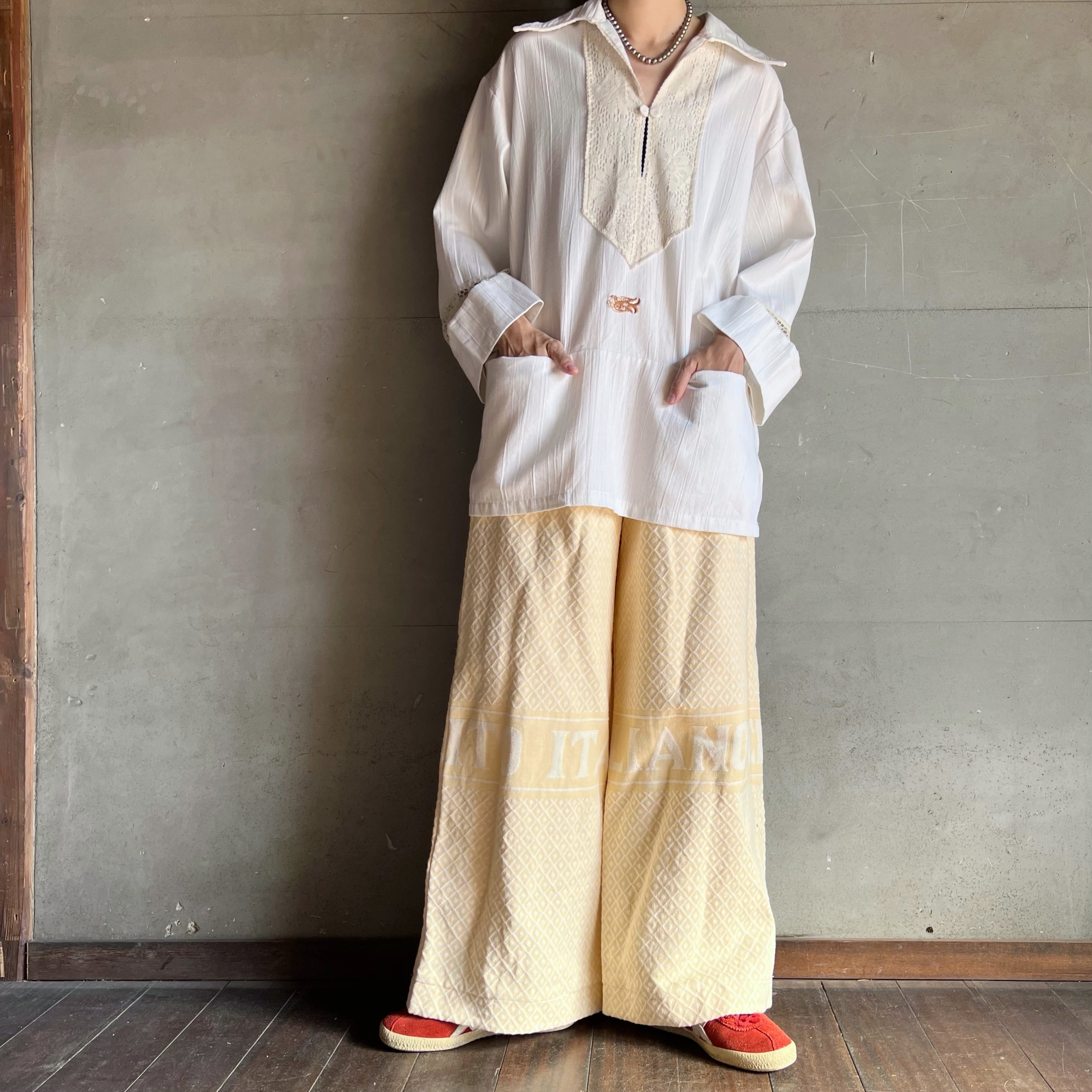 ヴィンテージのイタリア軍のコットンブランケットを使ったイージーワイドパンツです。