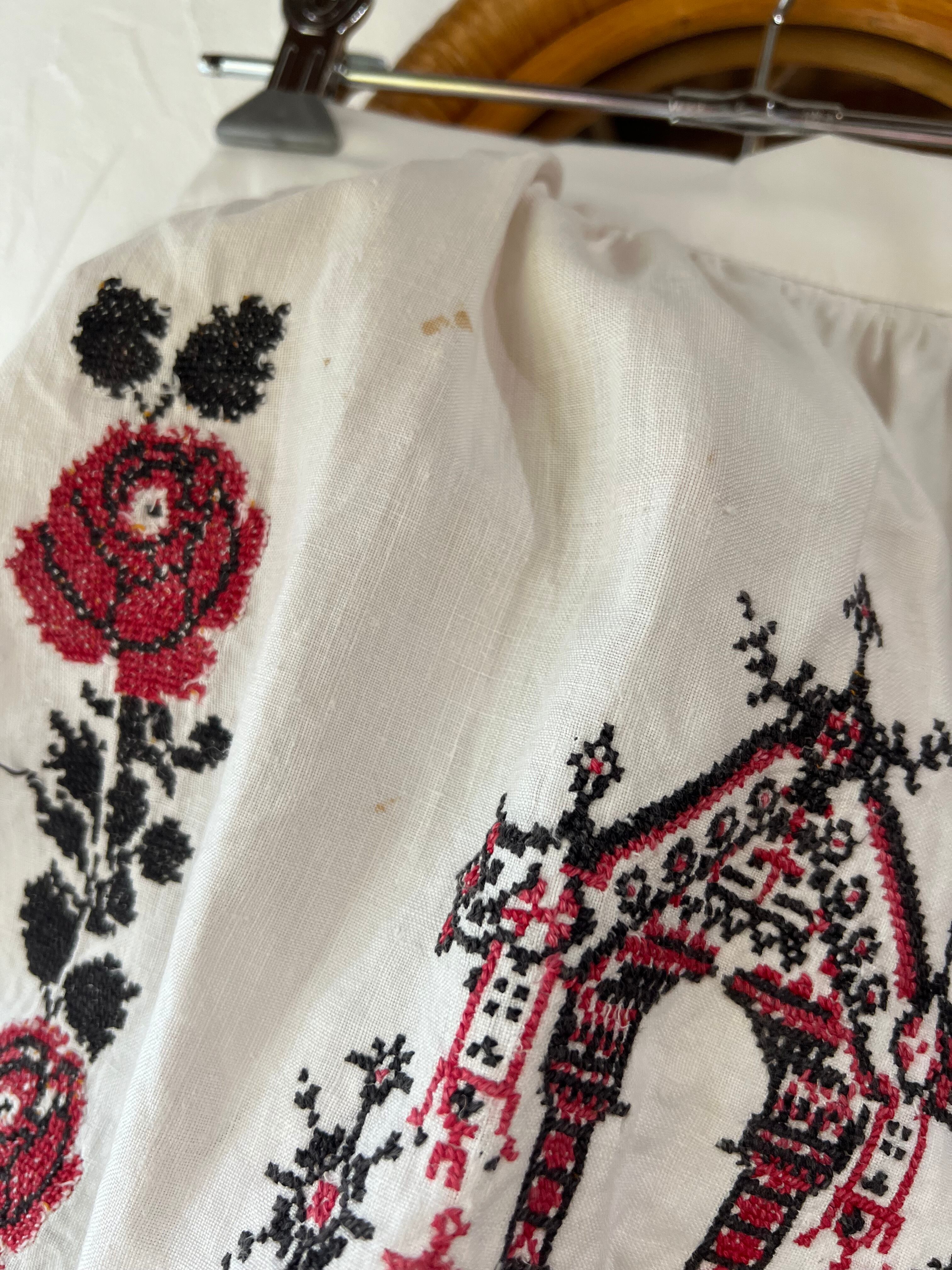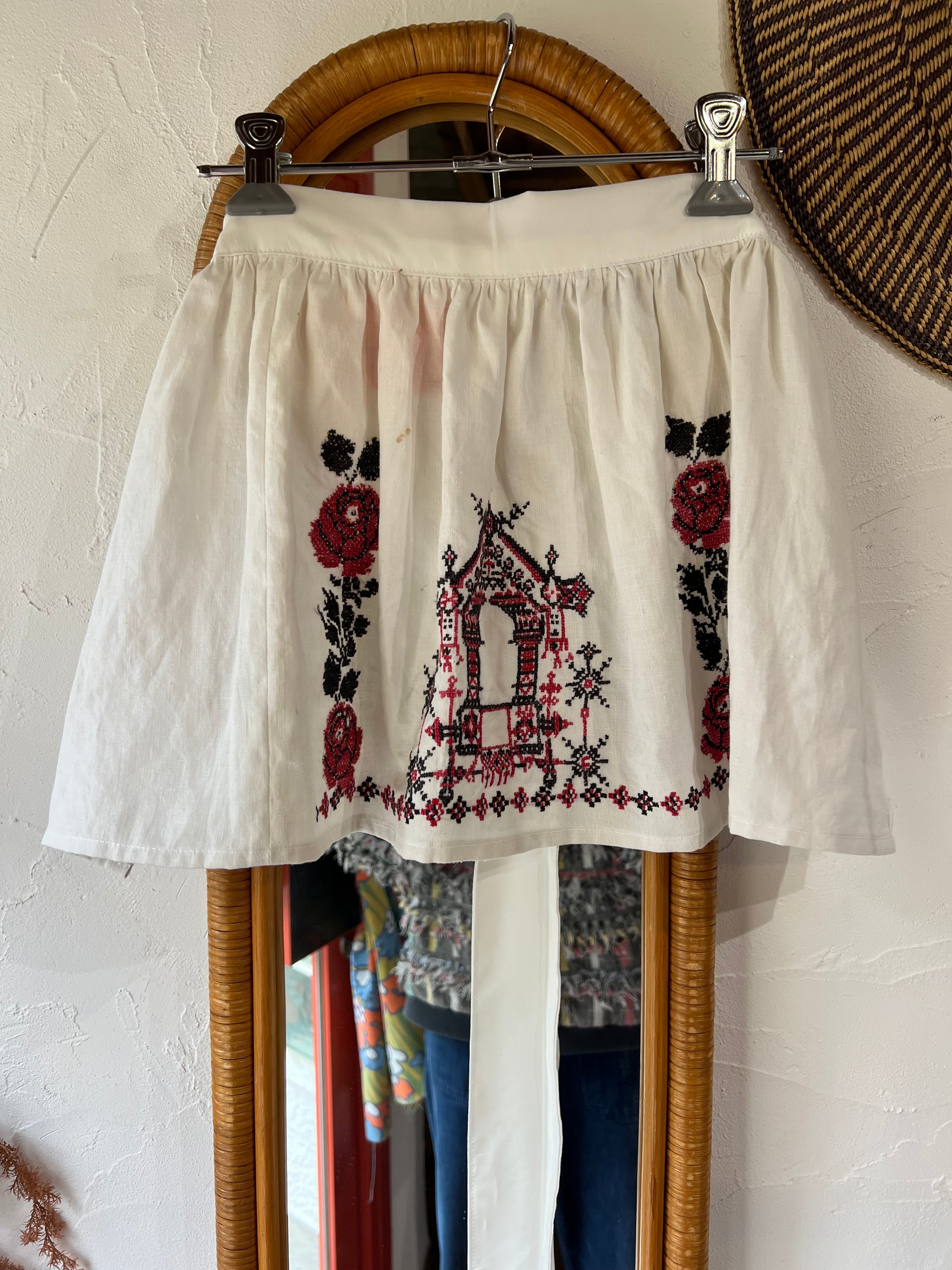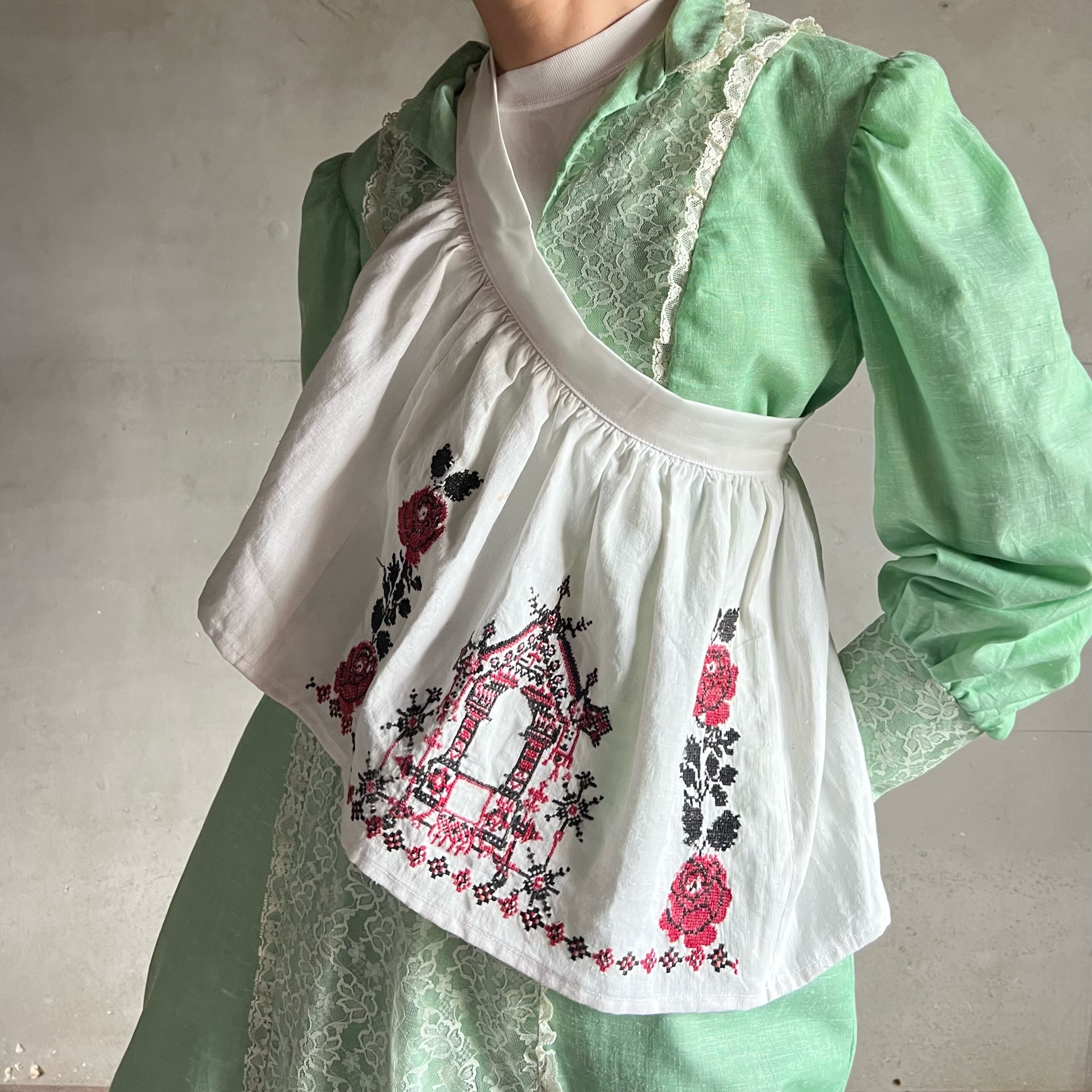 かなり目立つ汚れがあったウクライナのルシニクと呼ばれる祭事用の刺繍タオルを使ったエプロンです。
