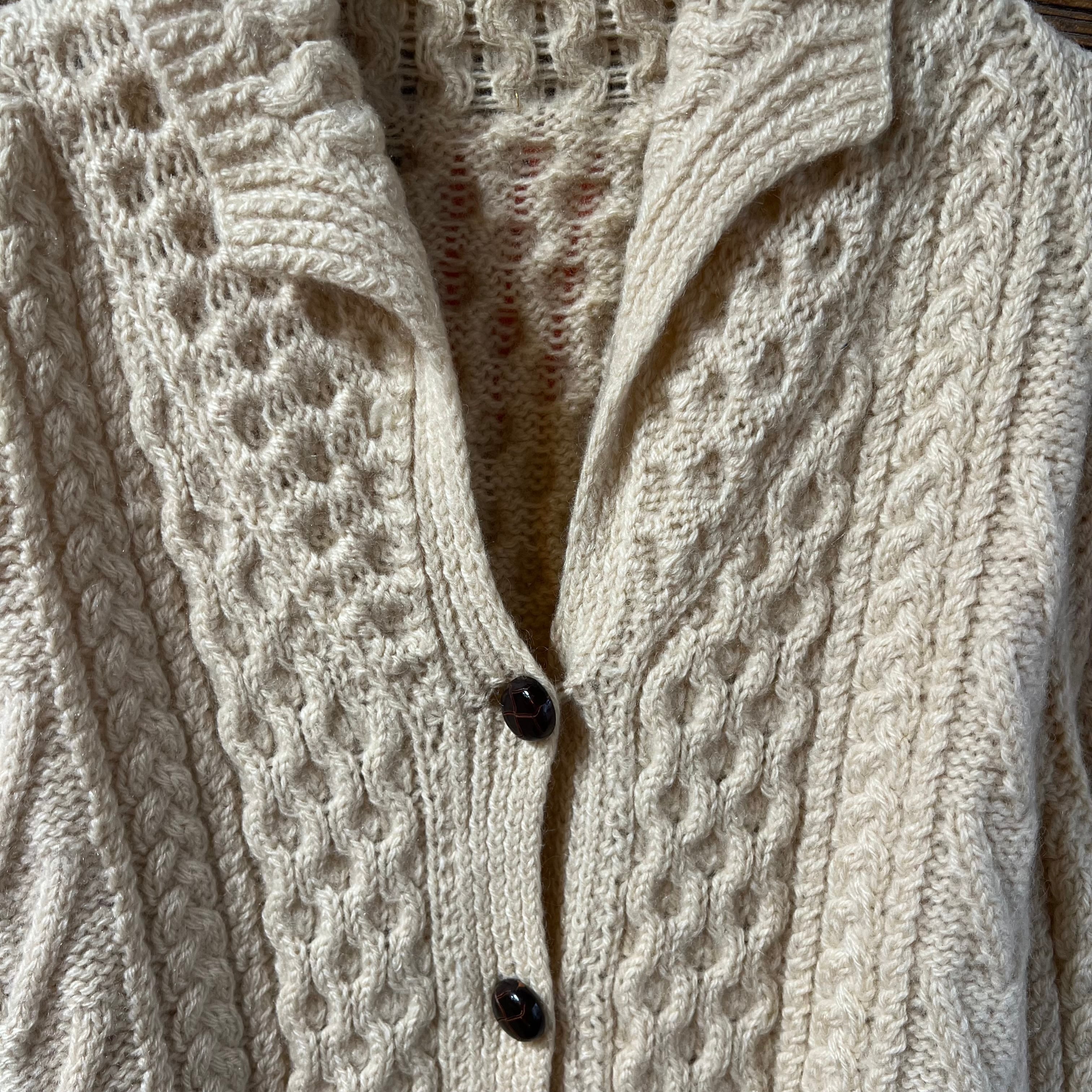 編み目もみっちりしていて綺麗で、合わせやすく使いやすいのでセーターとカーディガンは持っておきたいフィッシャーマンアイテム。