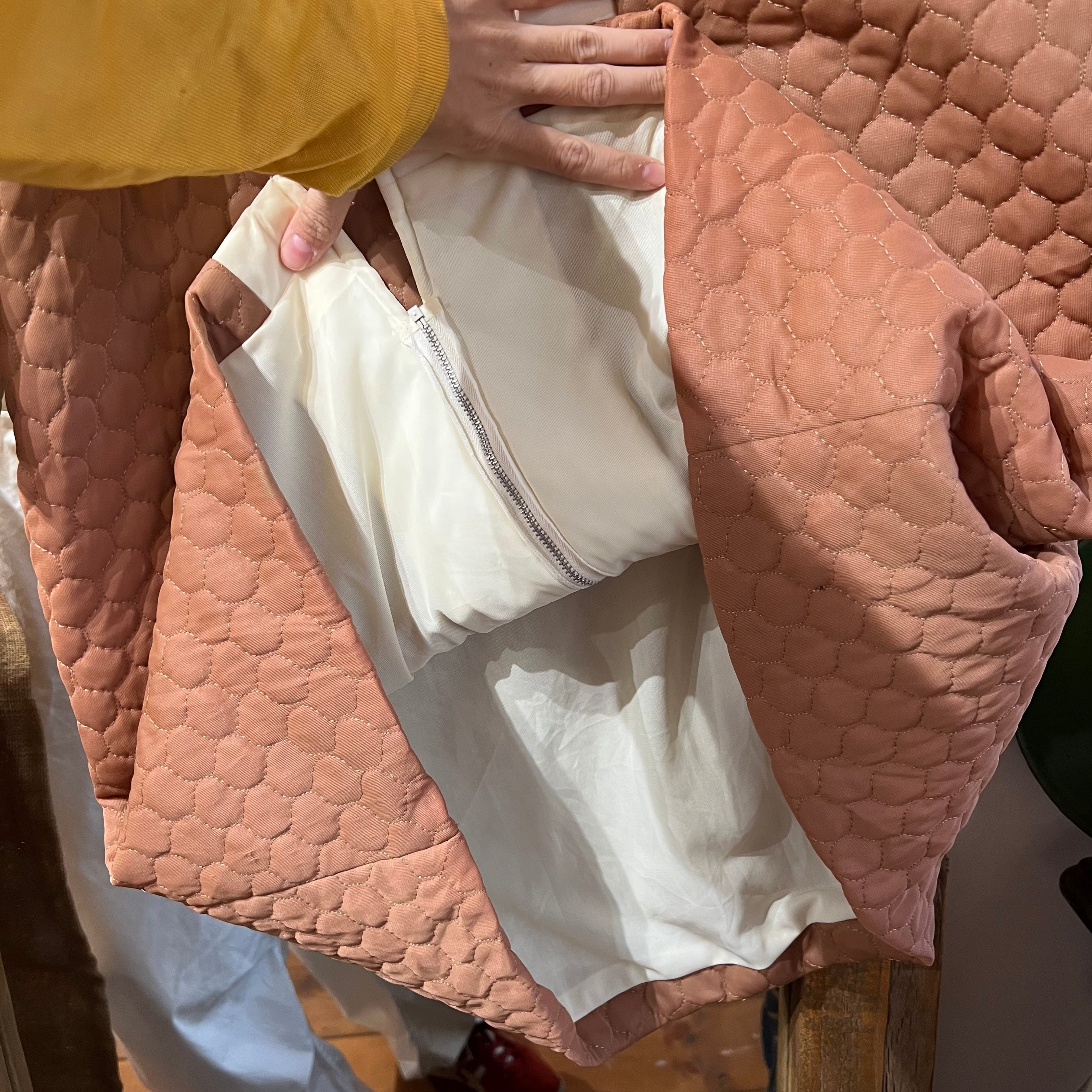 肌に優しい柔らかなキルティング素材で軽くて春先にもおすすめです。