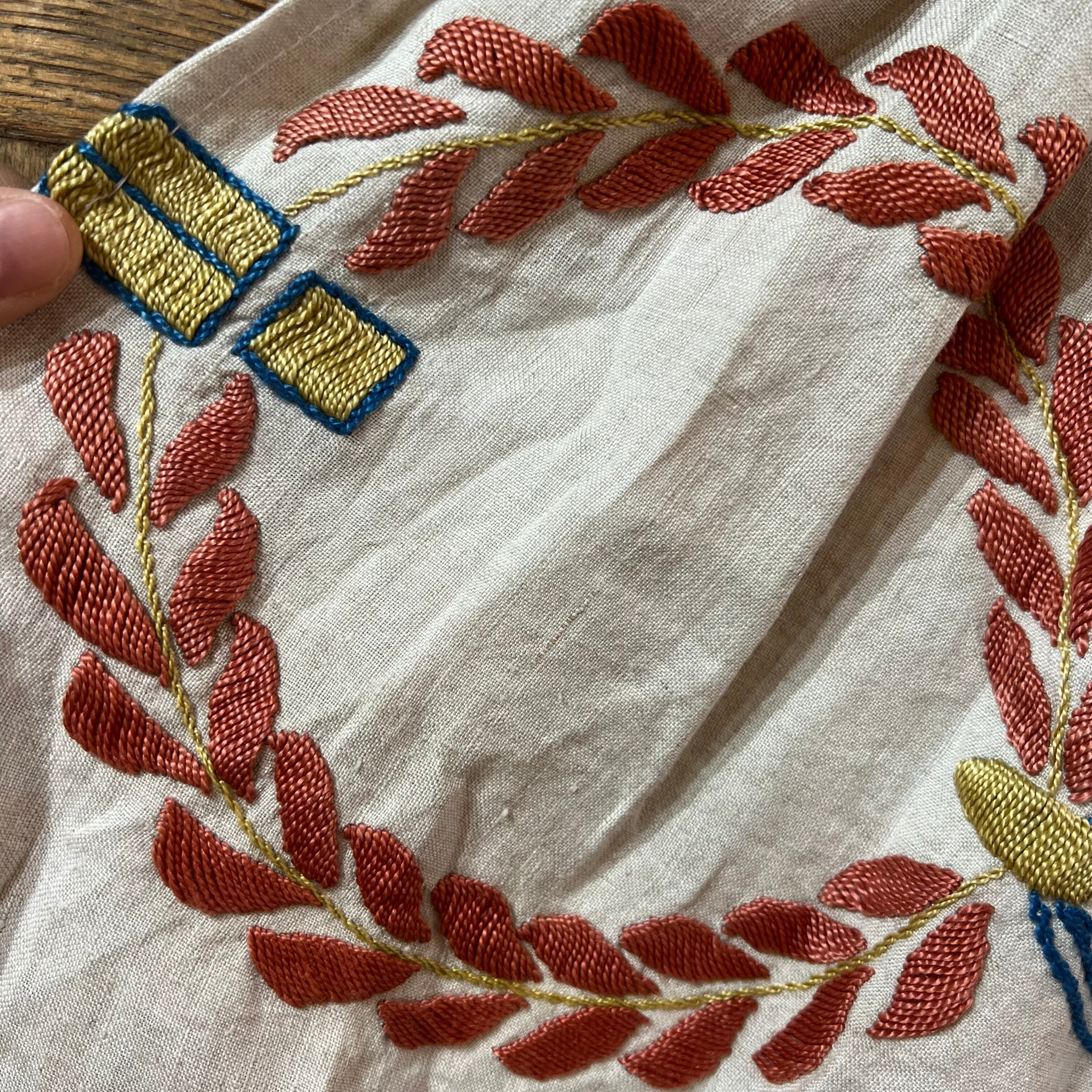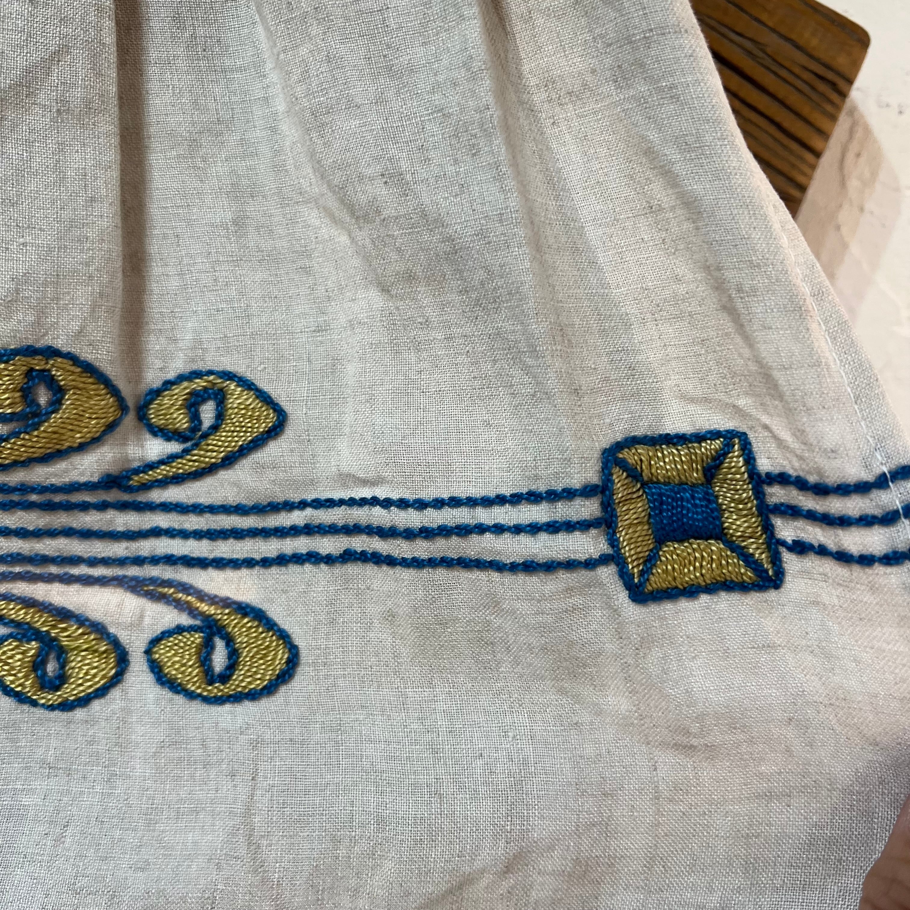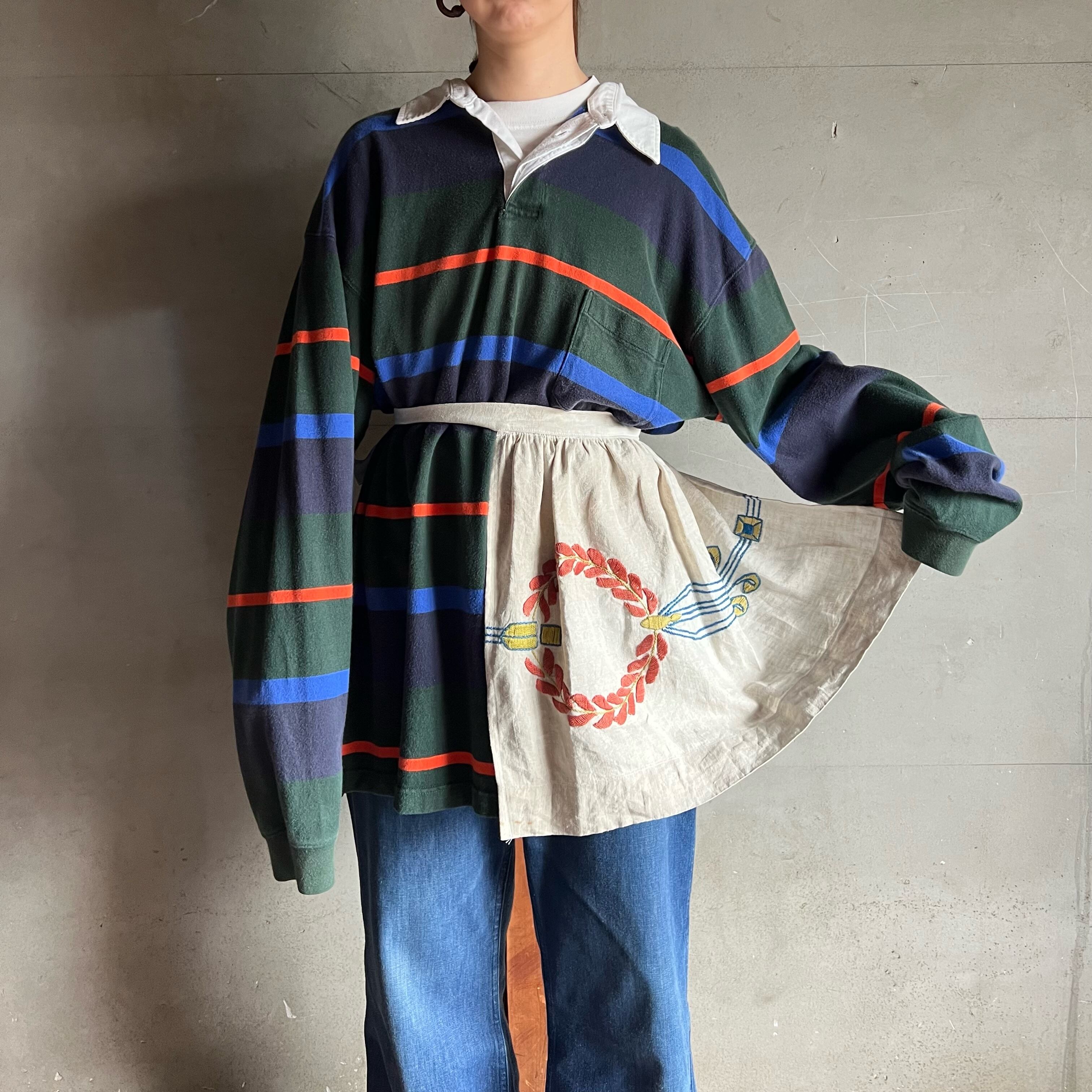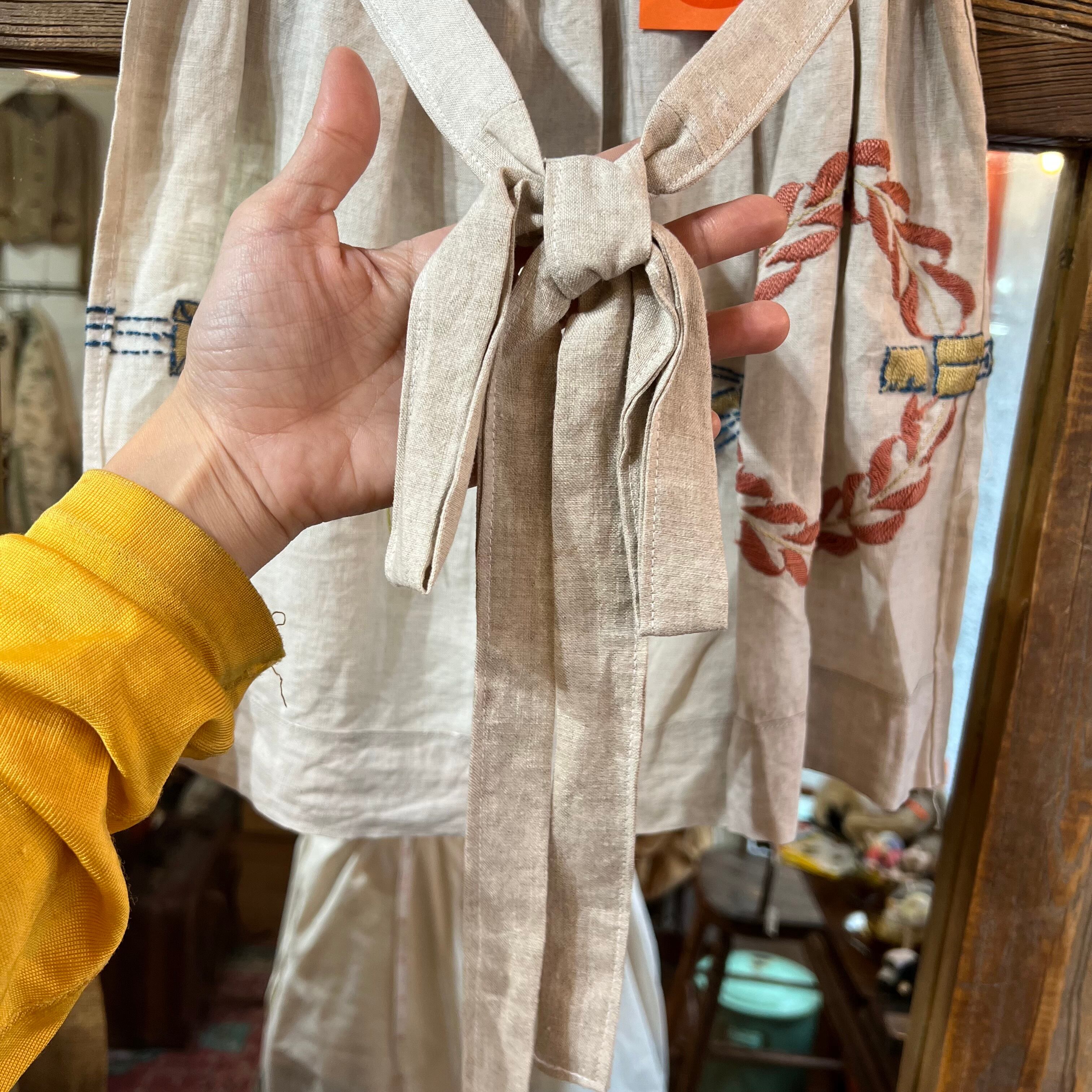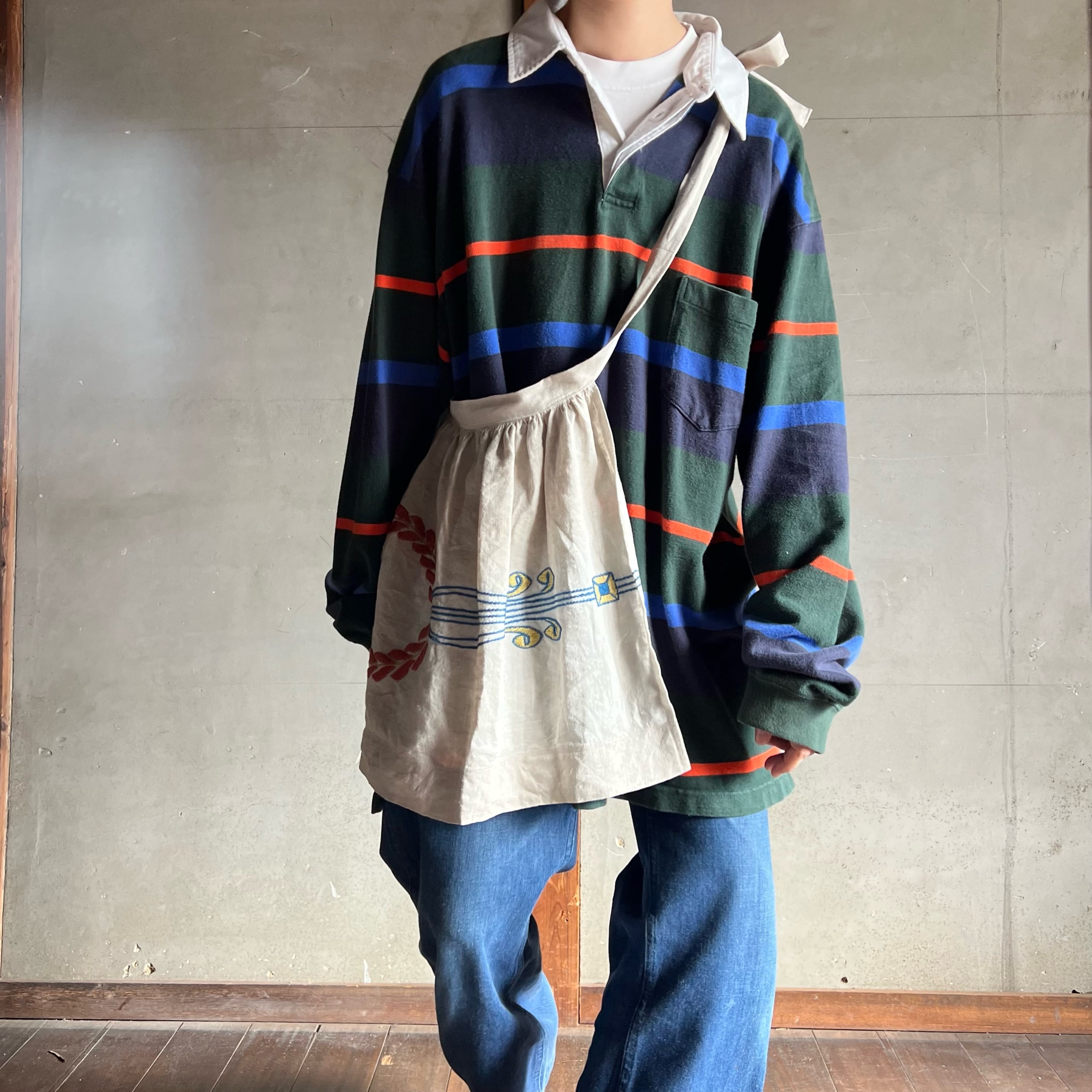かなり目立つ破れやダメージがあったヨーロッパのカーテンを使ったエプロンです。