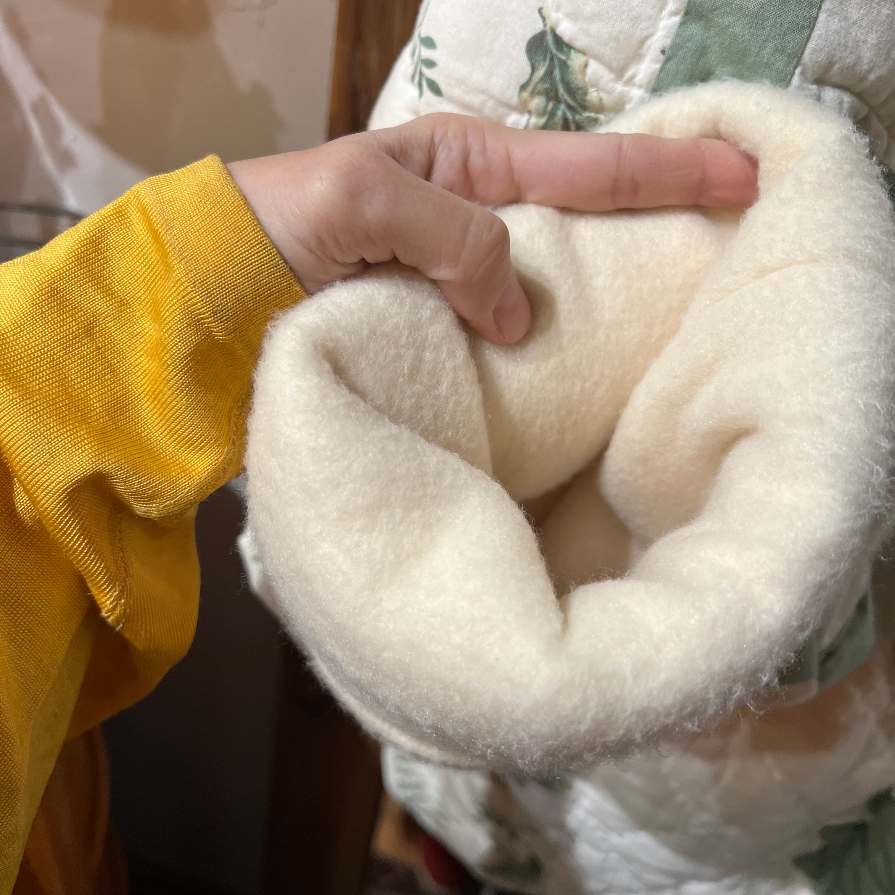 サイズは大きめで裏地にはふわふわのフリースが使ってありとても暖かなアイテムです。