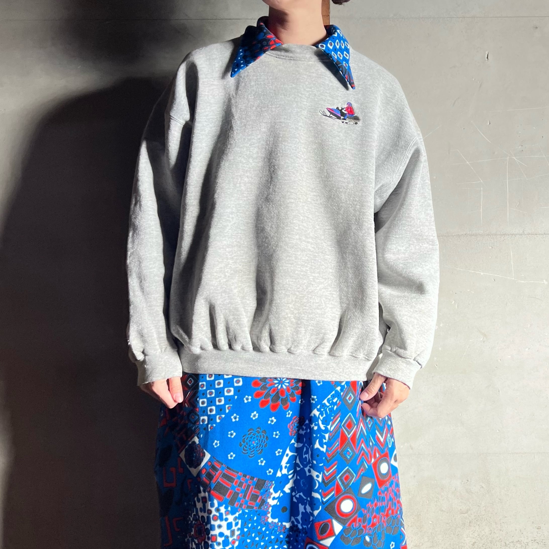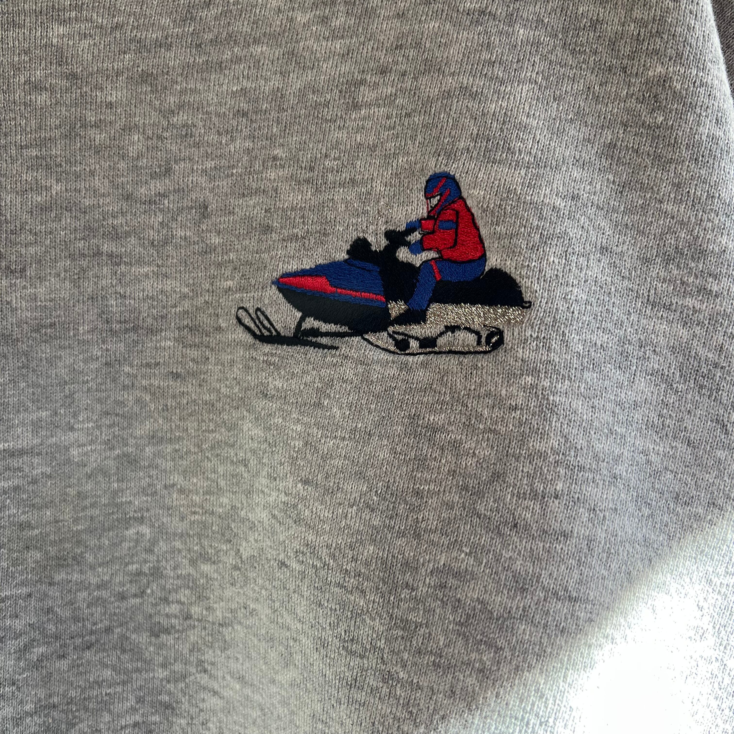スノーモービルの刺繍が可愛いボックスシルエットのスウェット。