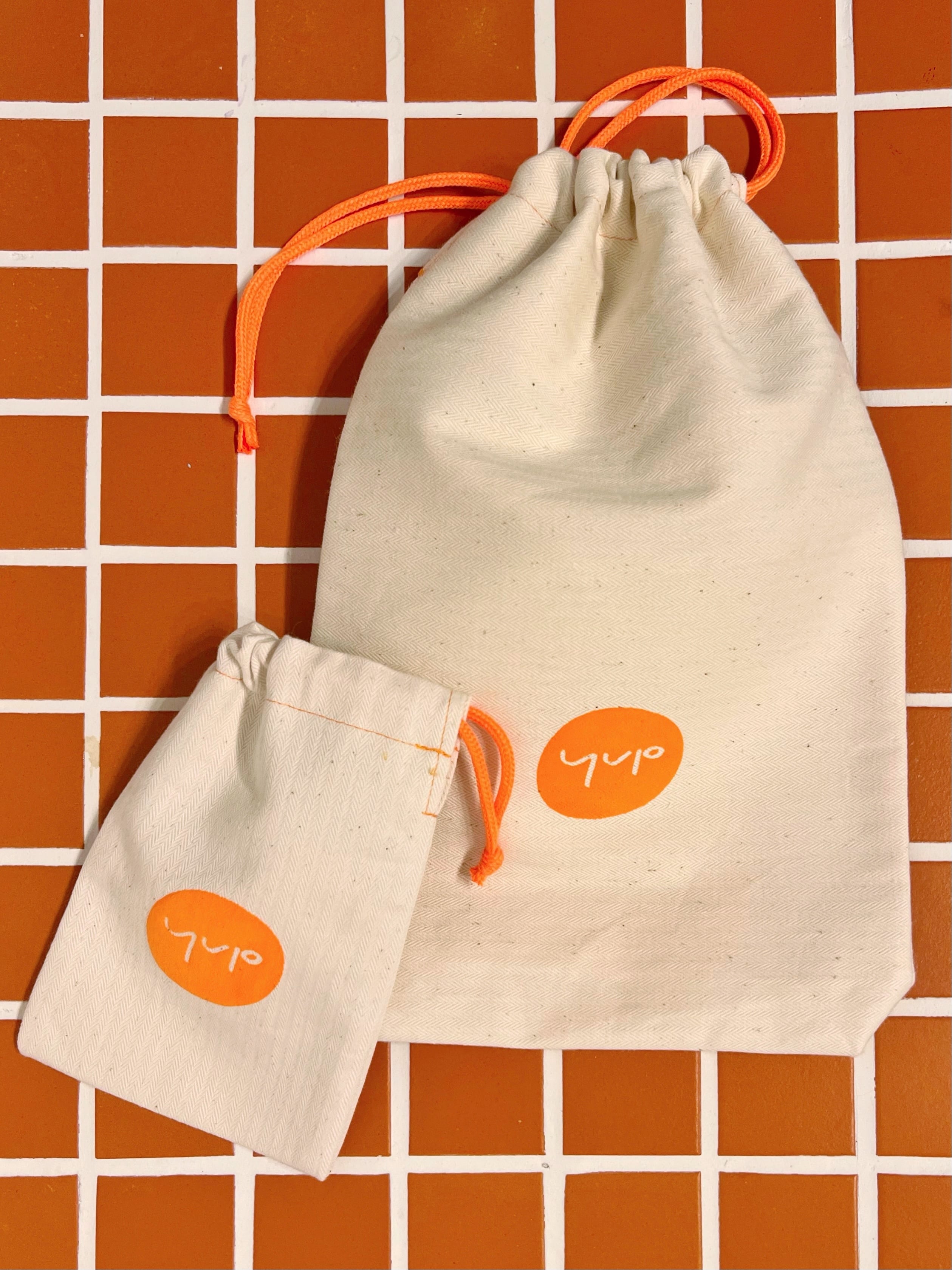 yupにて商品1点お買い上げでyup小巾着、2点以上お買い上げの方にyup大巾着をプレゼントします。