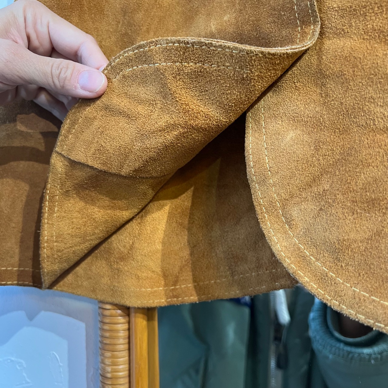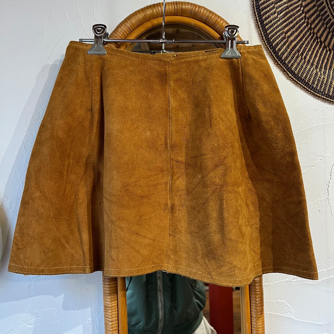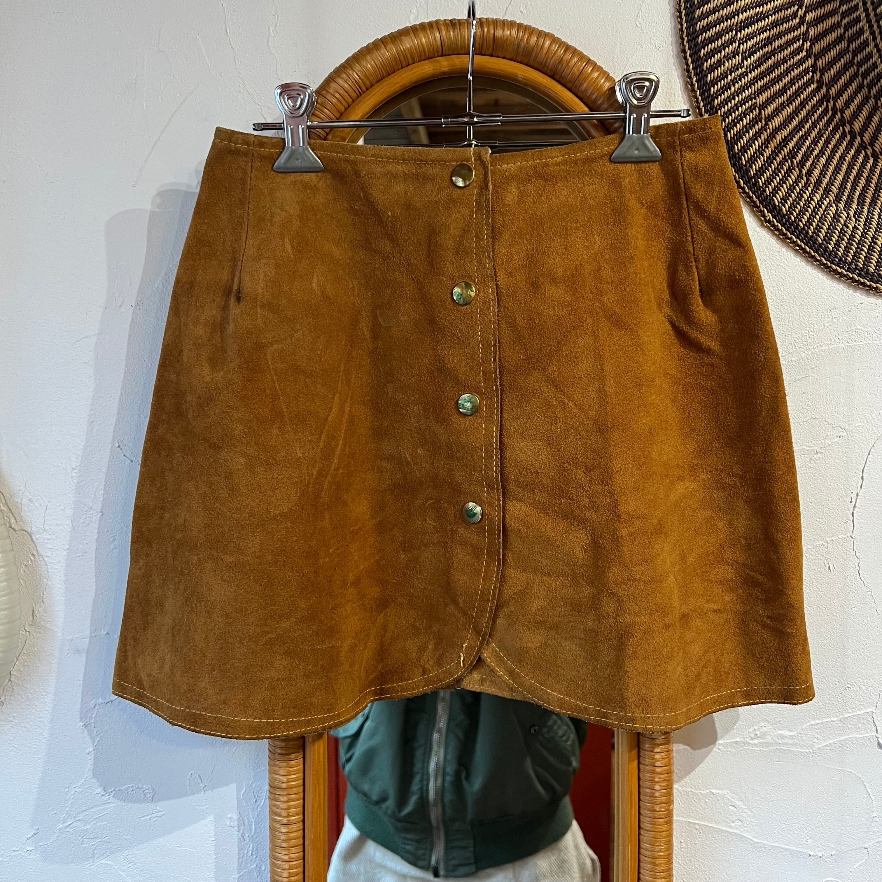 フロントボタンのミニ丈スエードスカート。