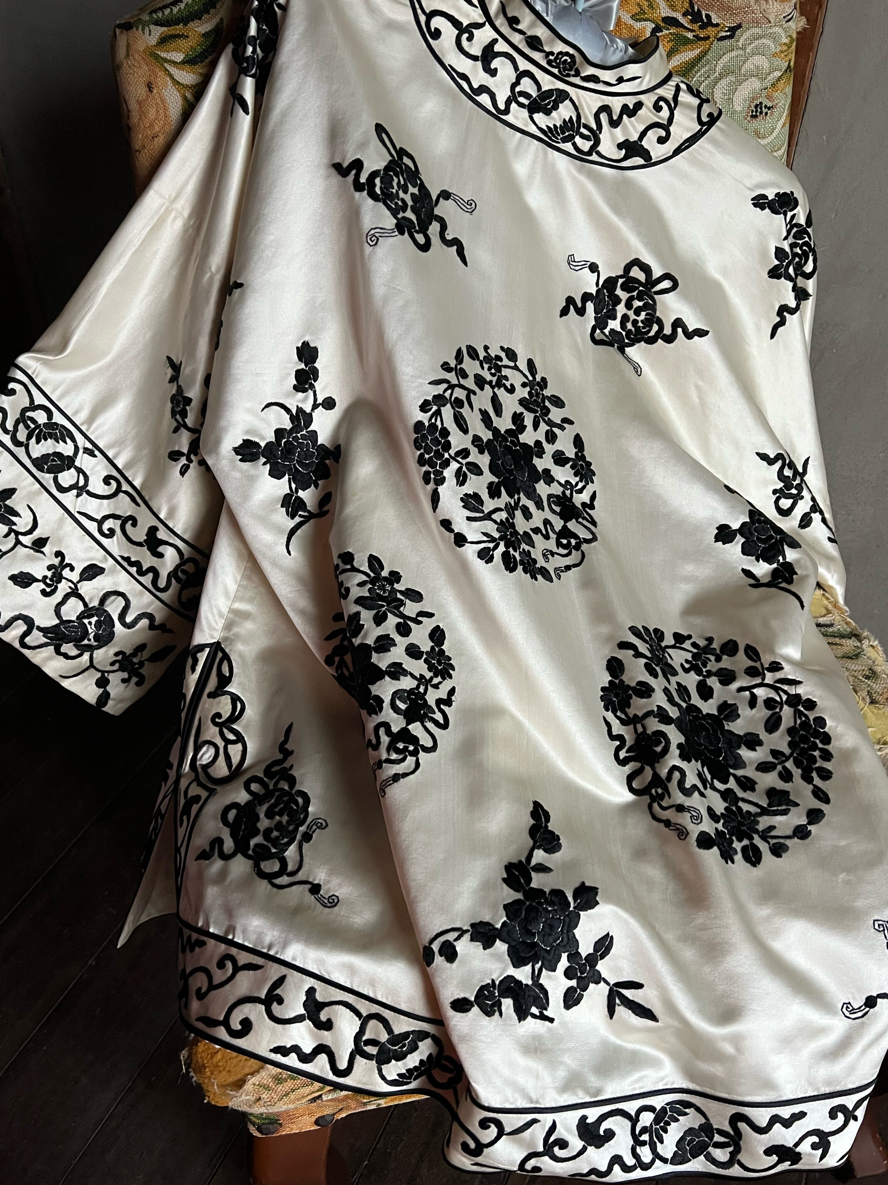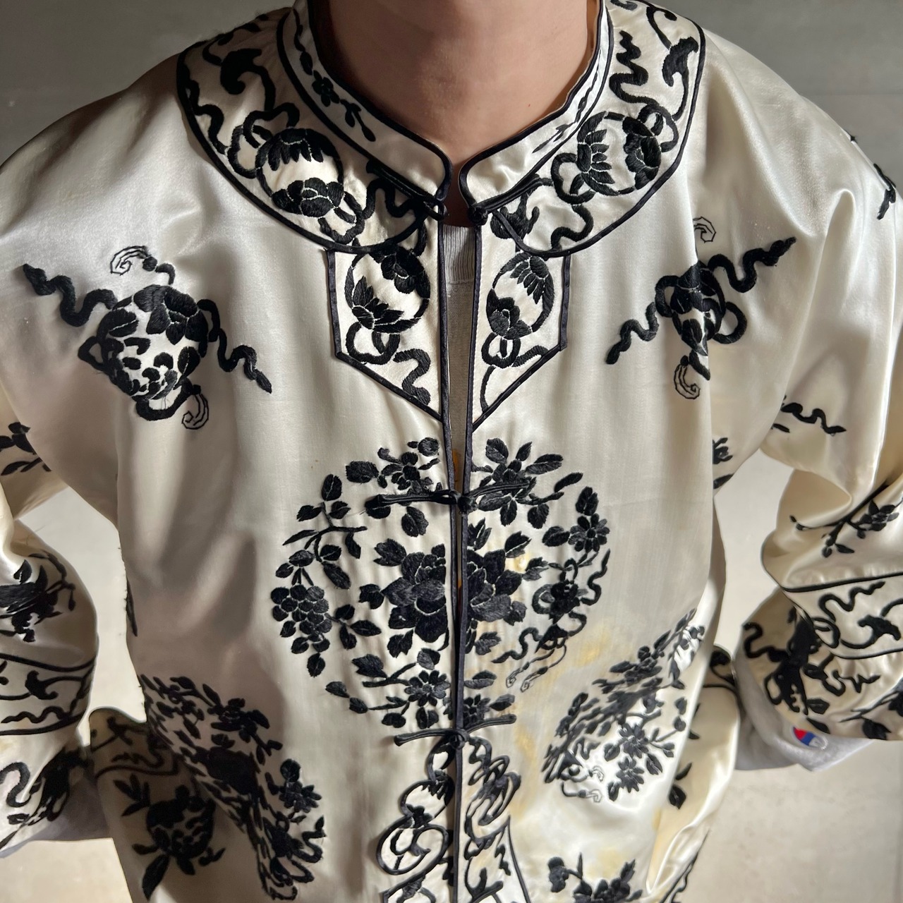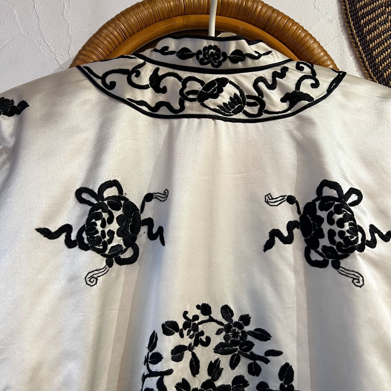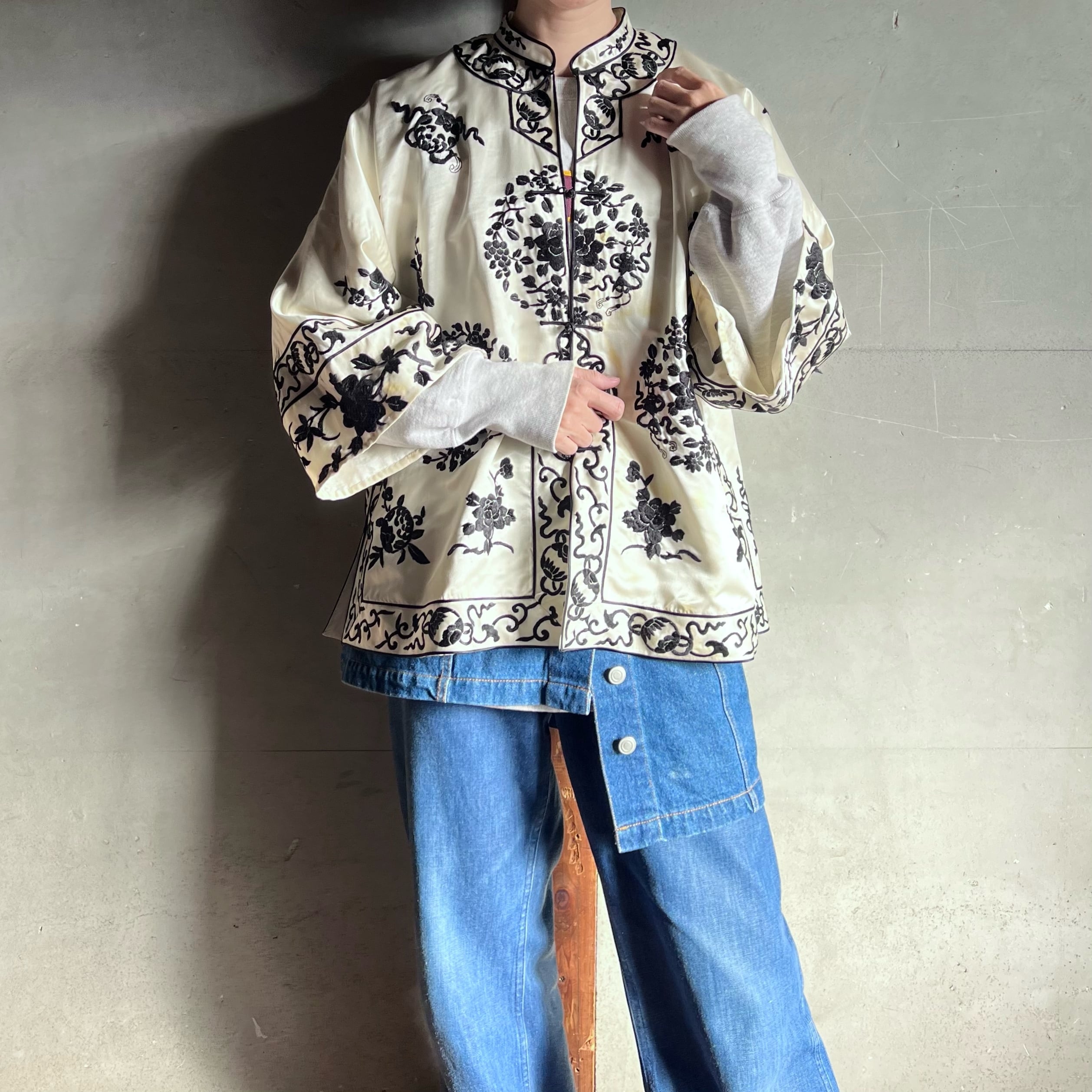 カラフルな刺繍が多い中珍しい単色刺繍のマンダリンジャケット。
