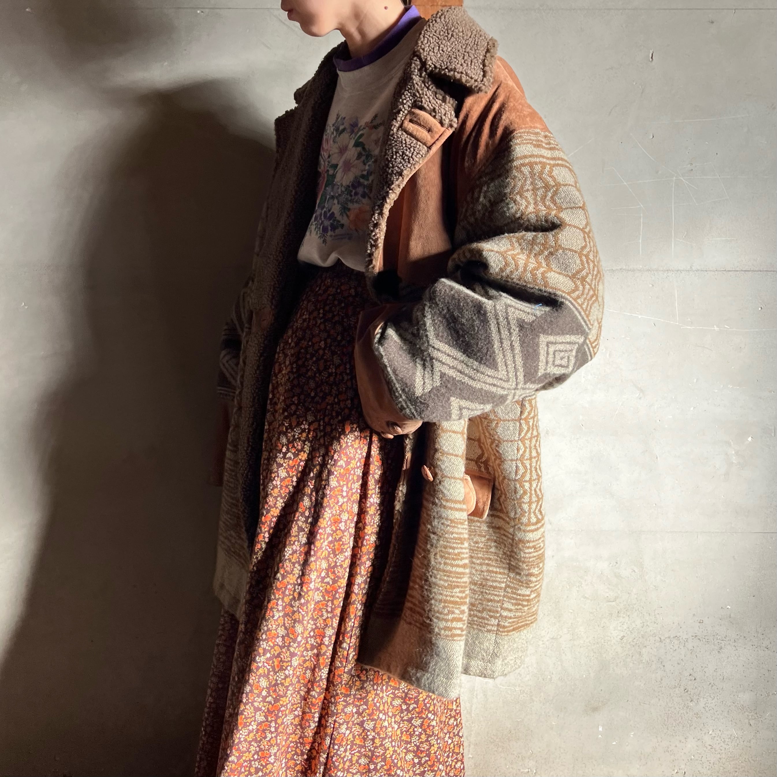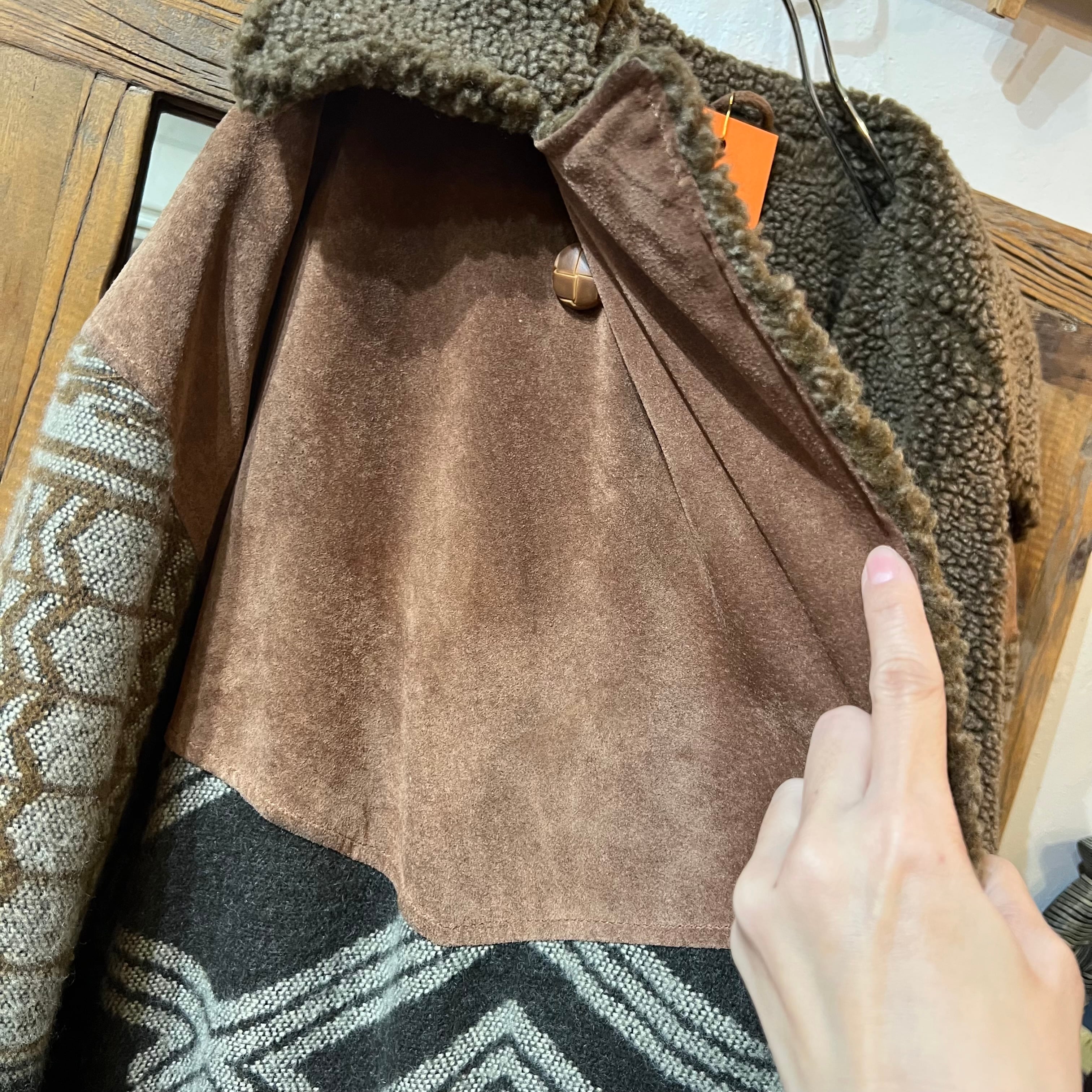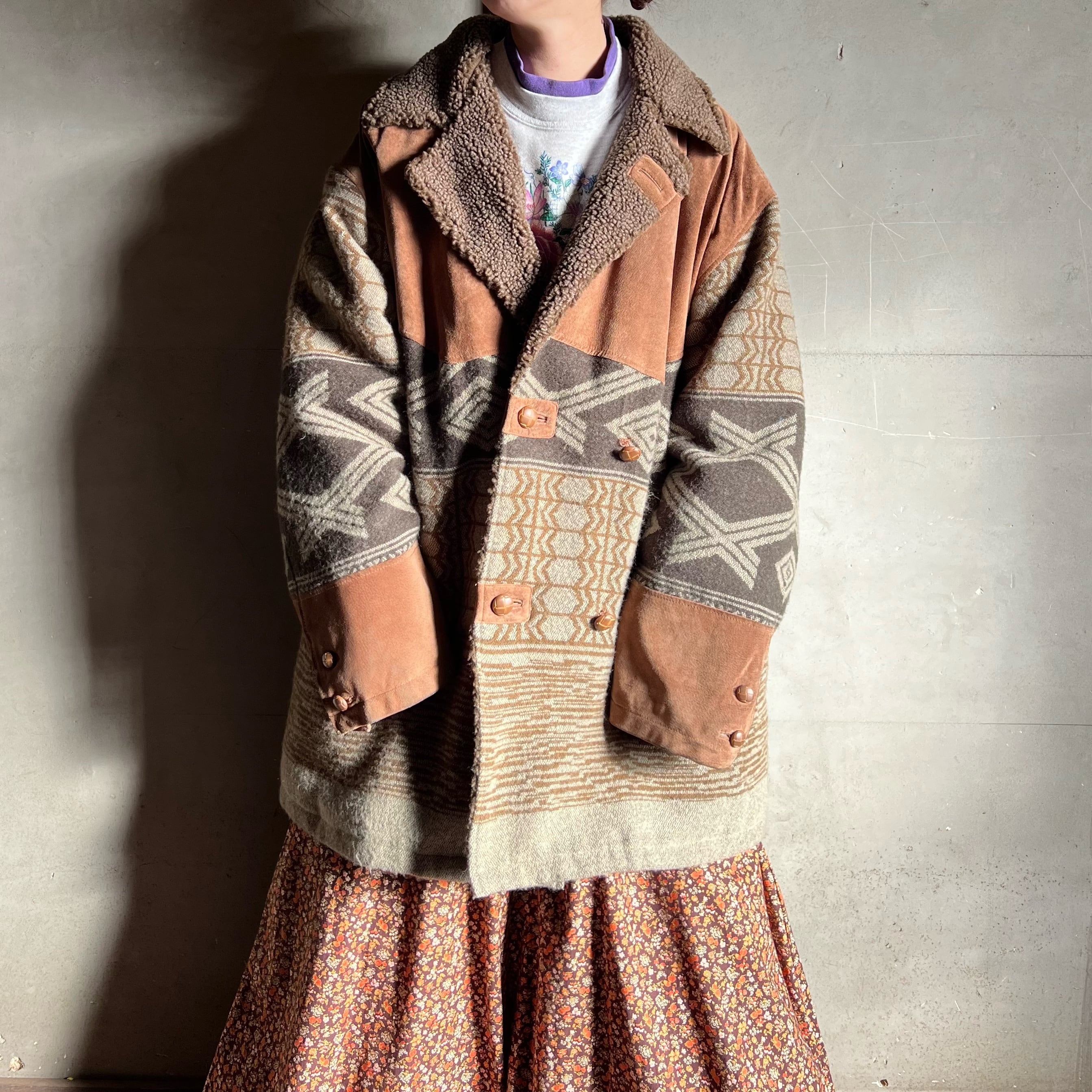 スエードとウール地の切り替えがおしゃれな一点です。