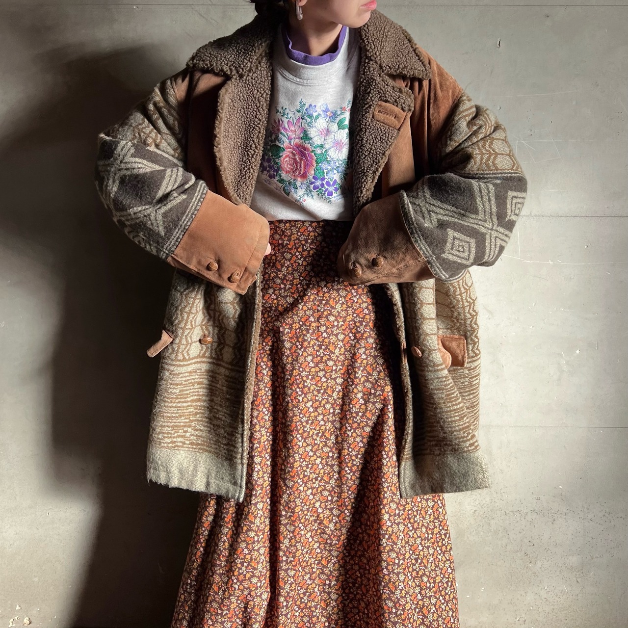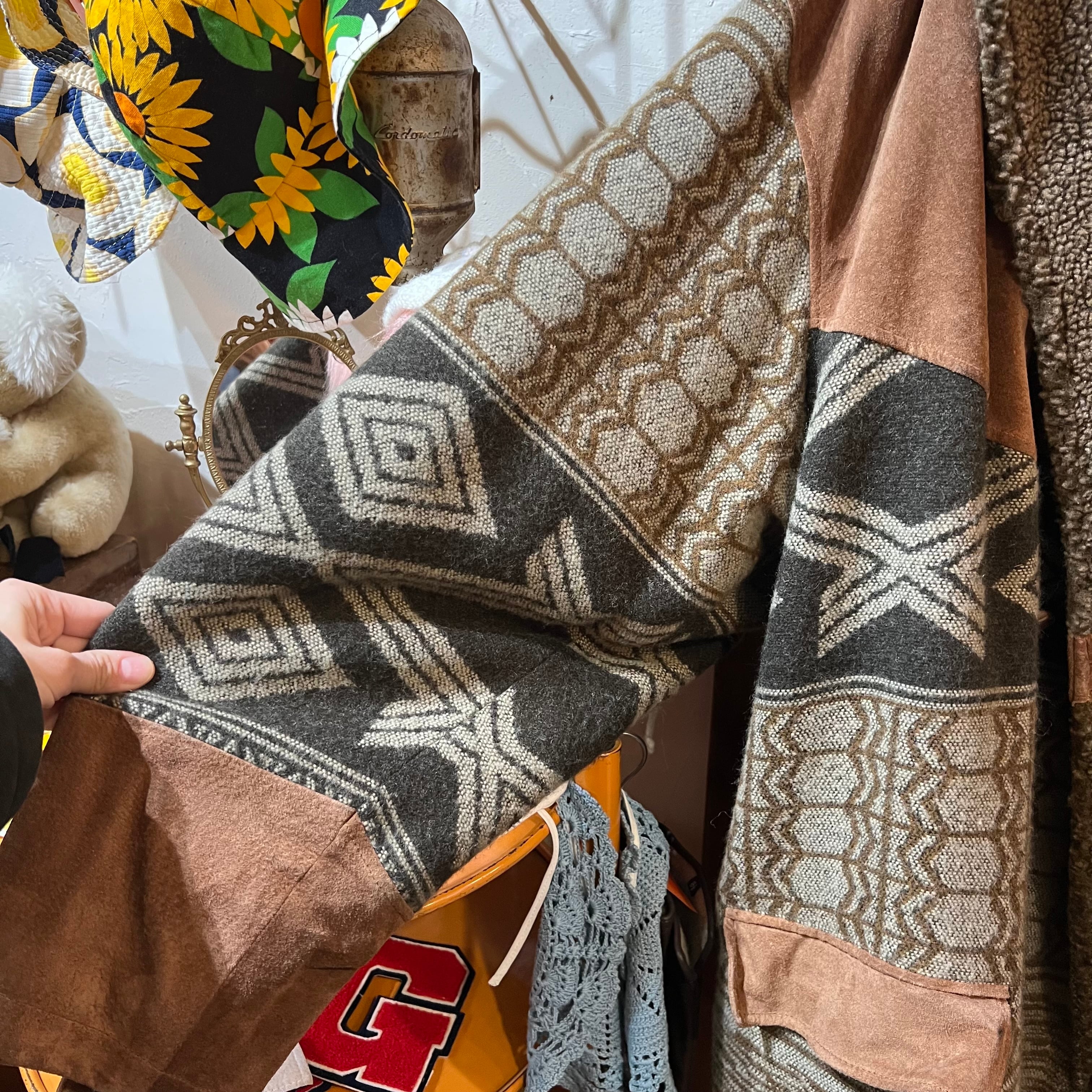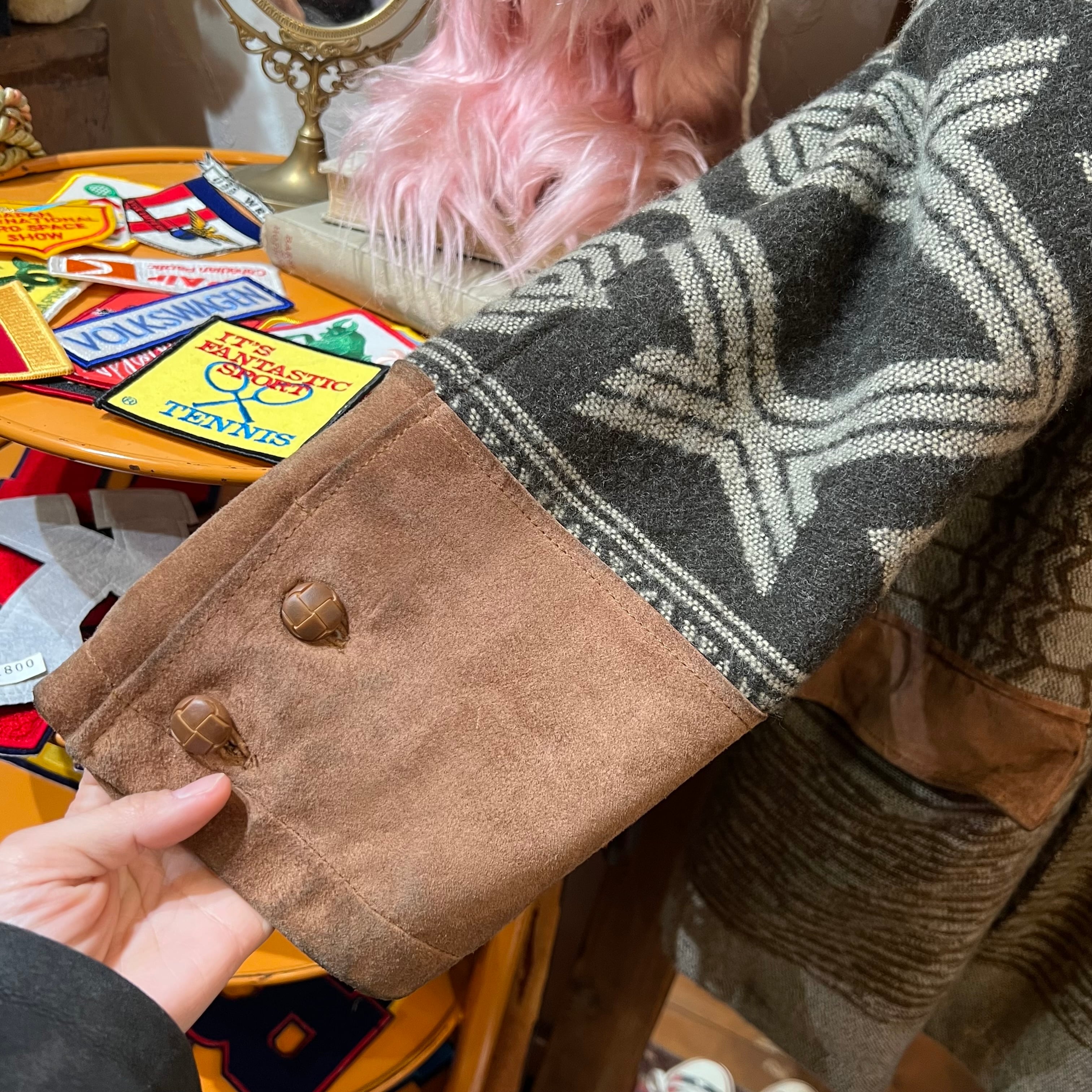 スエードとウール地の切り替えがおしゃれな一点です。