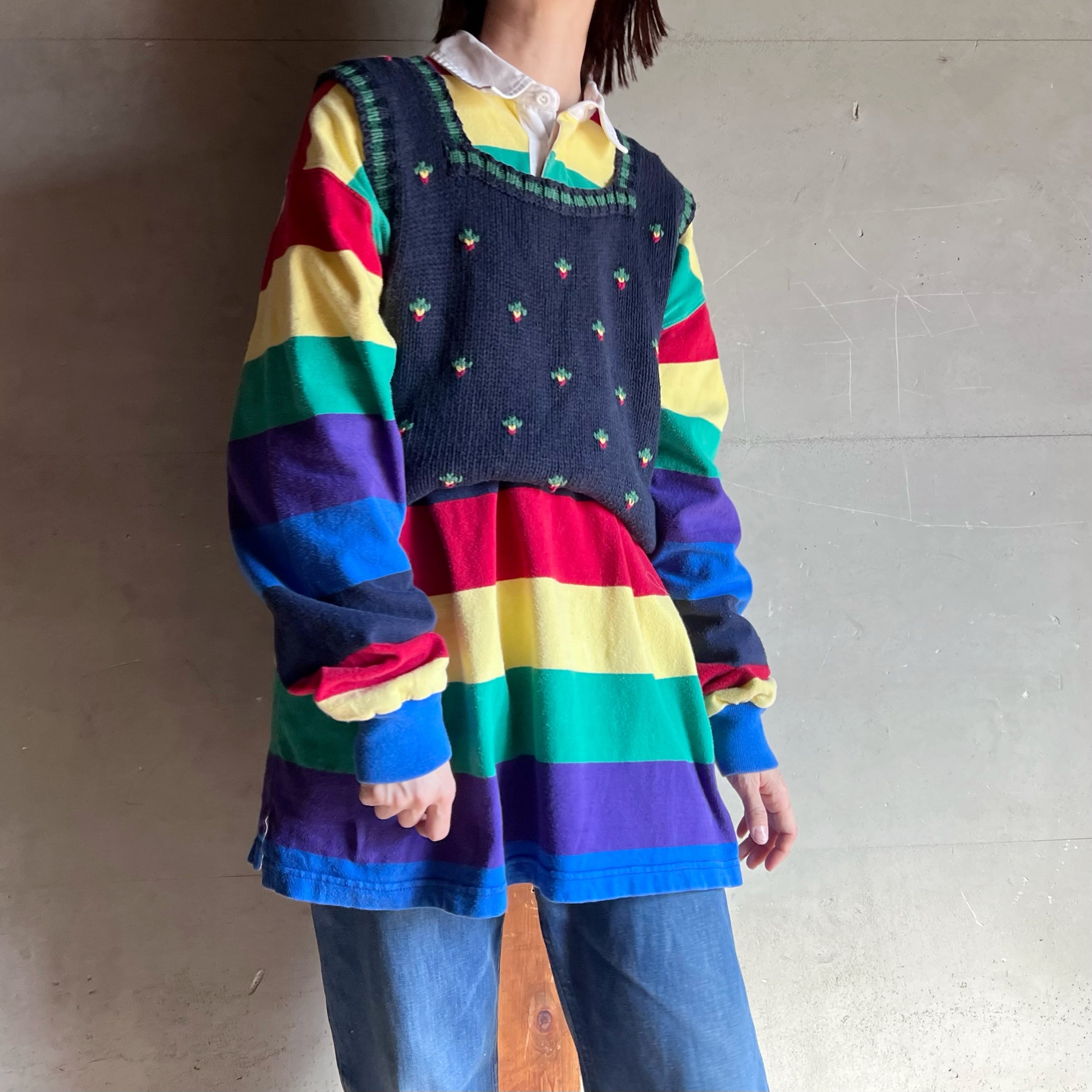 レインボーボーダーのラガーシャツ。