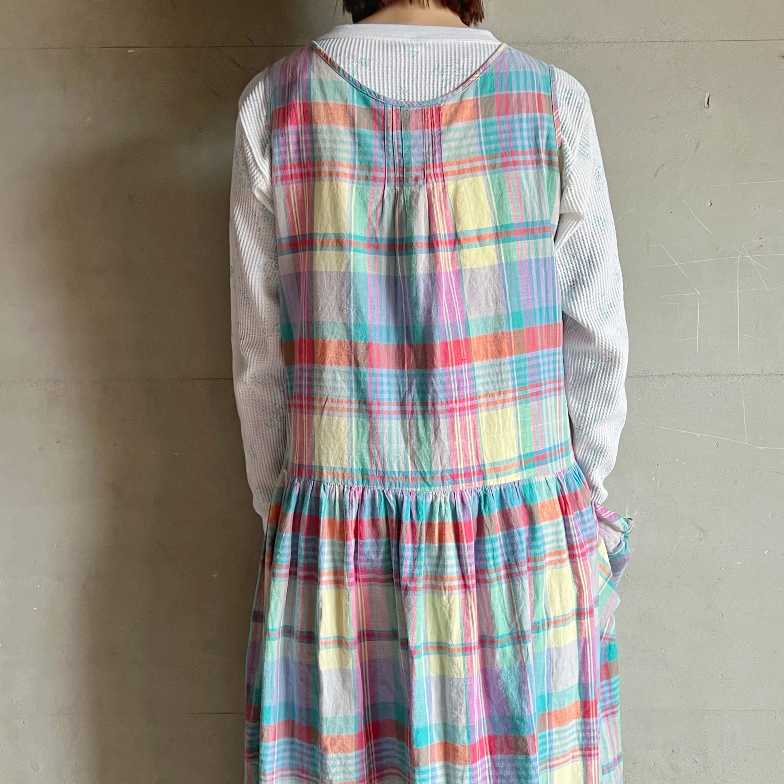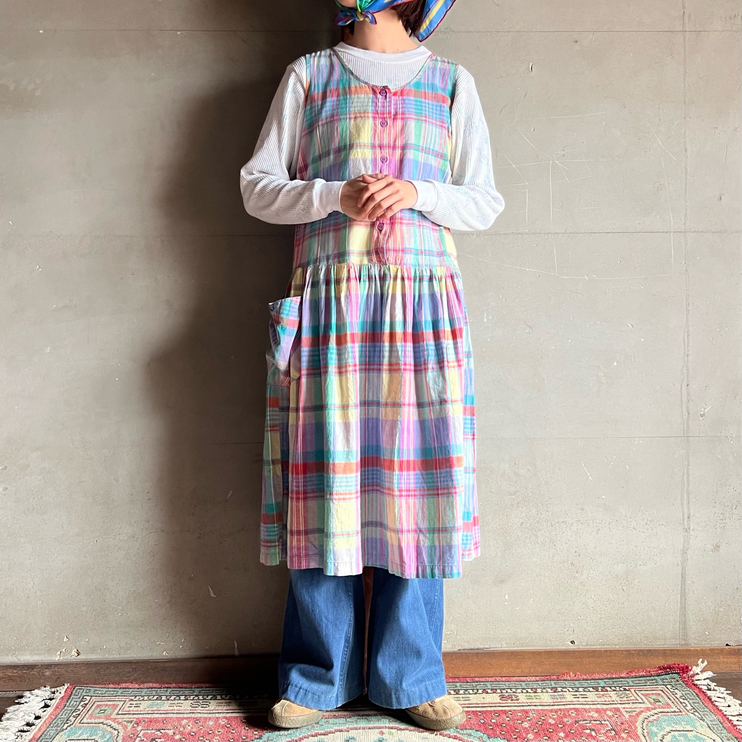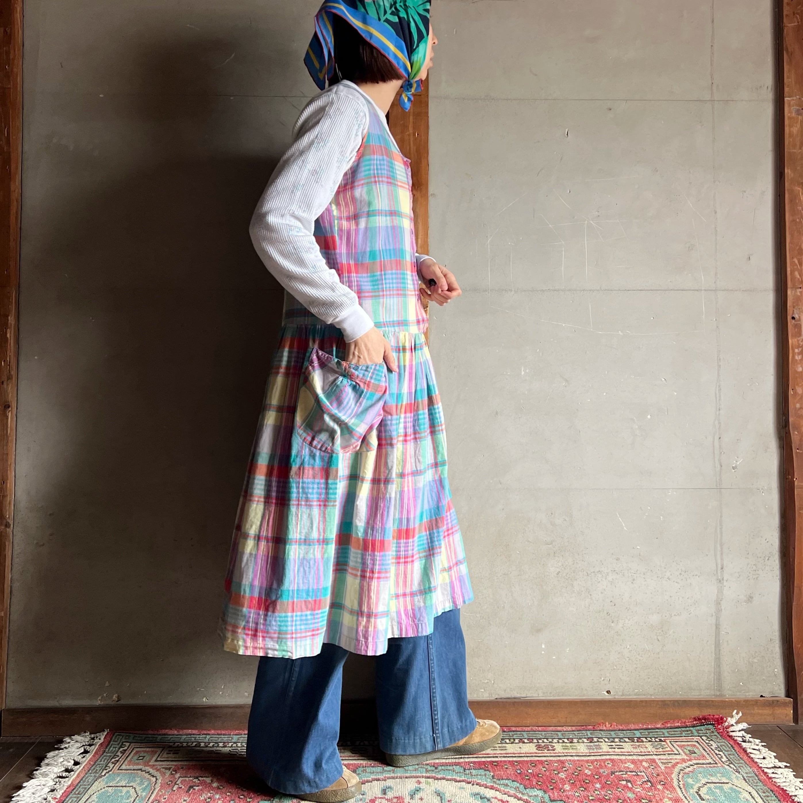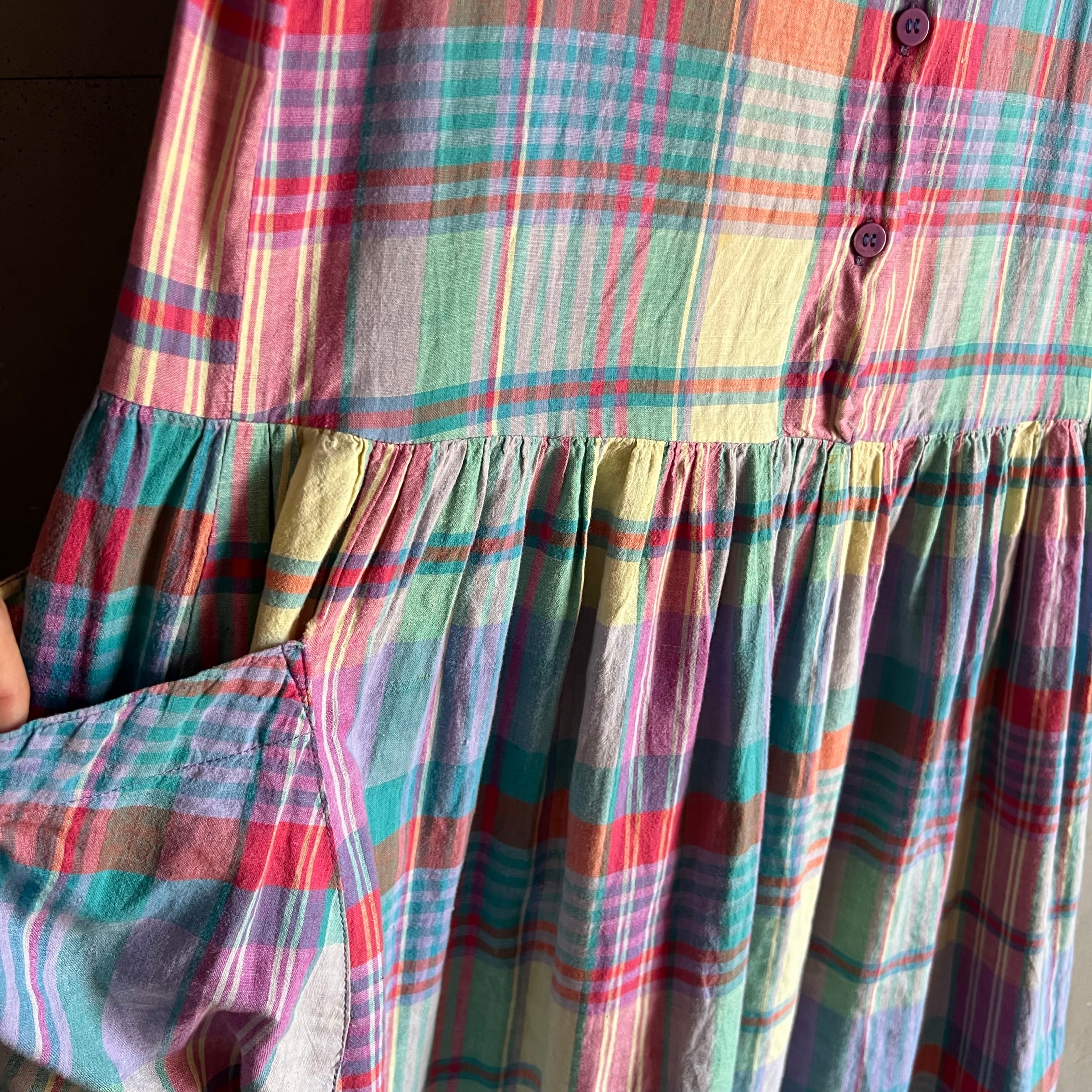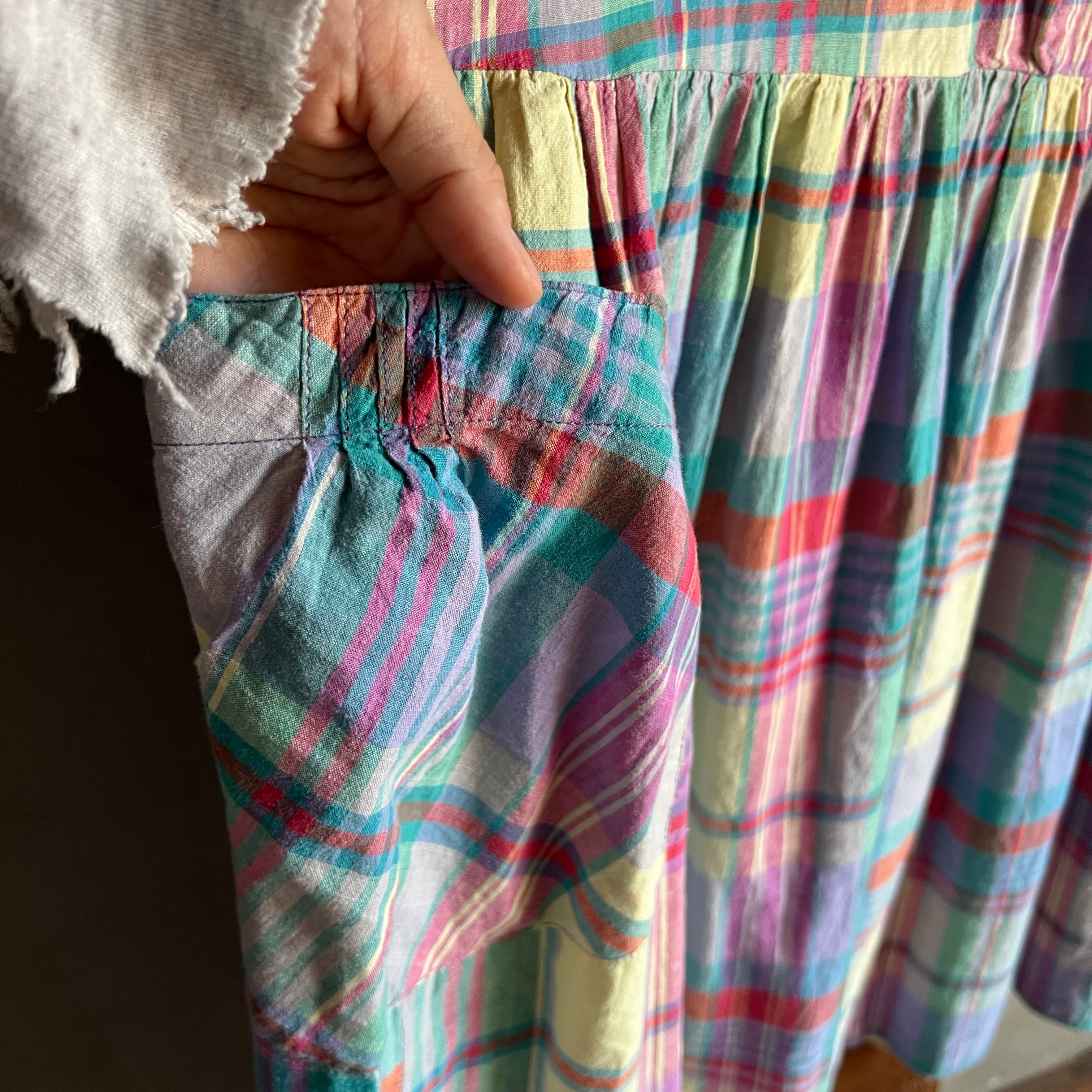 カラフルなチェック模様、ポケットがついているのも嬉しい。