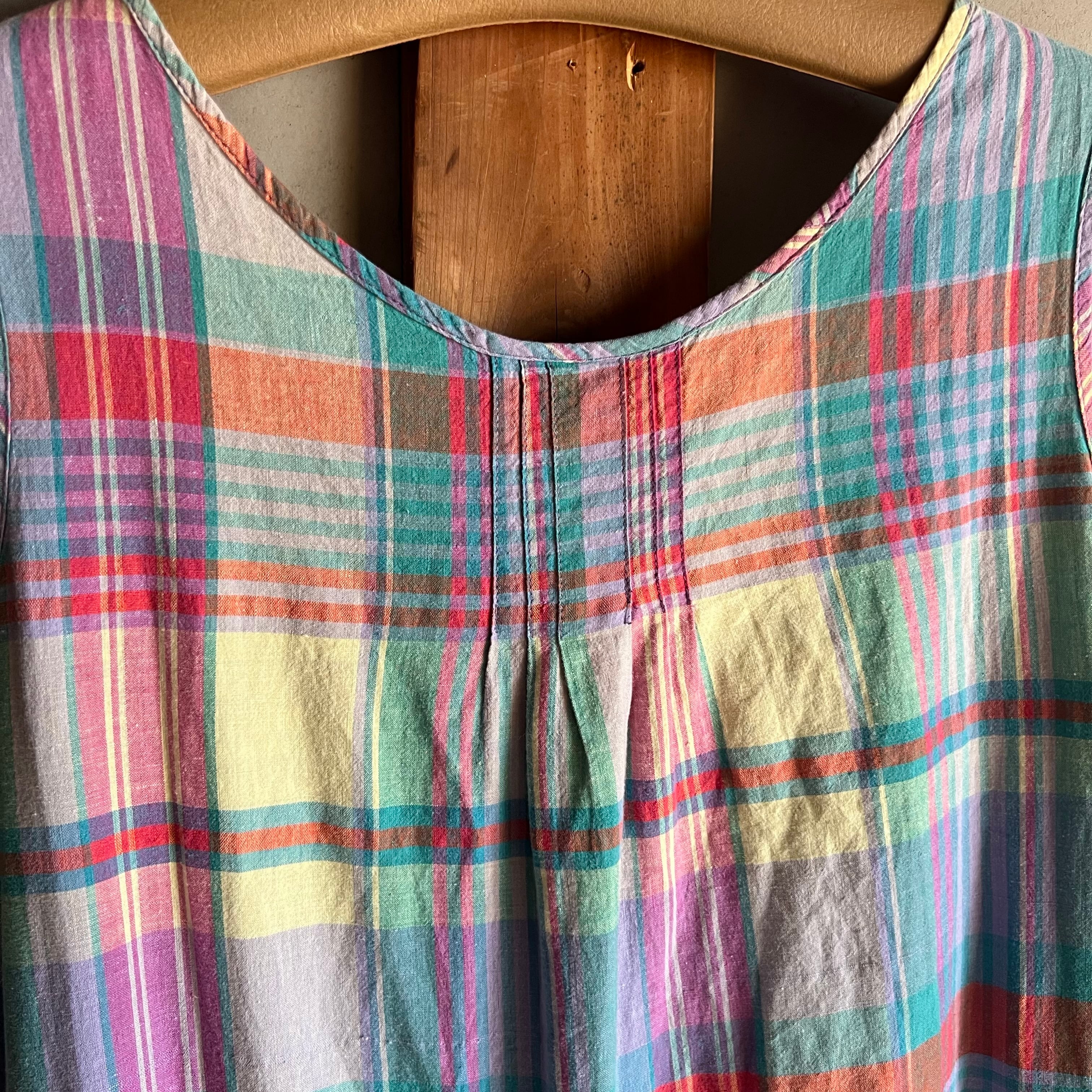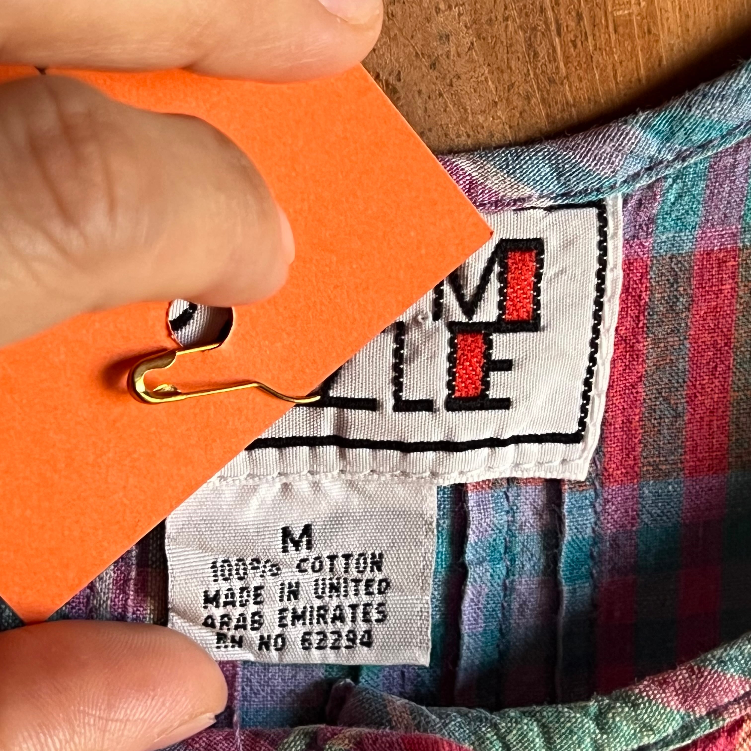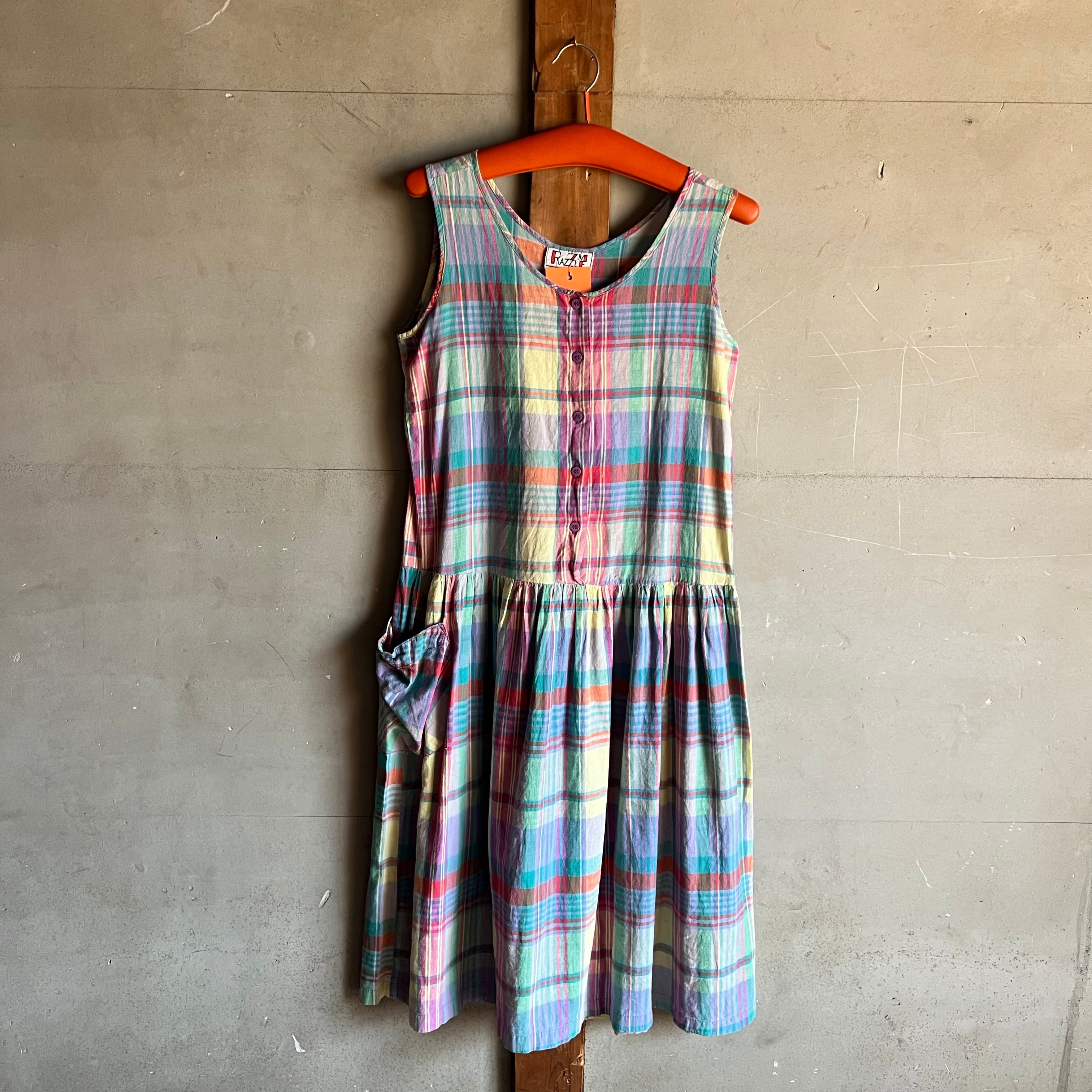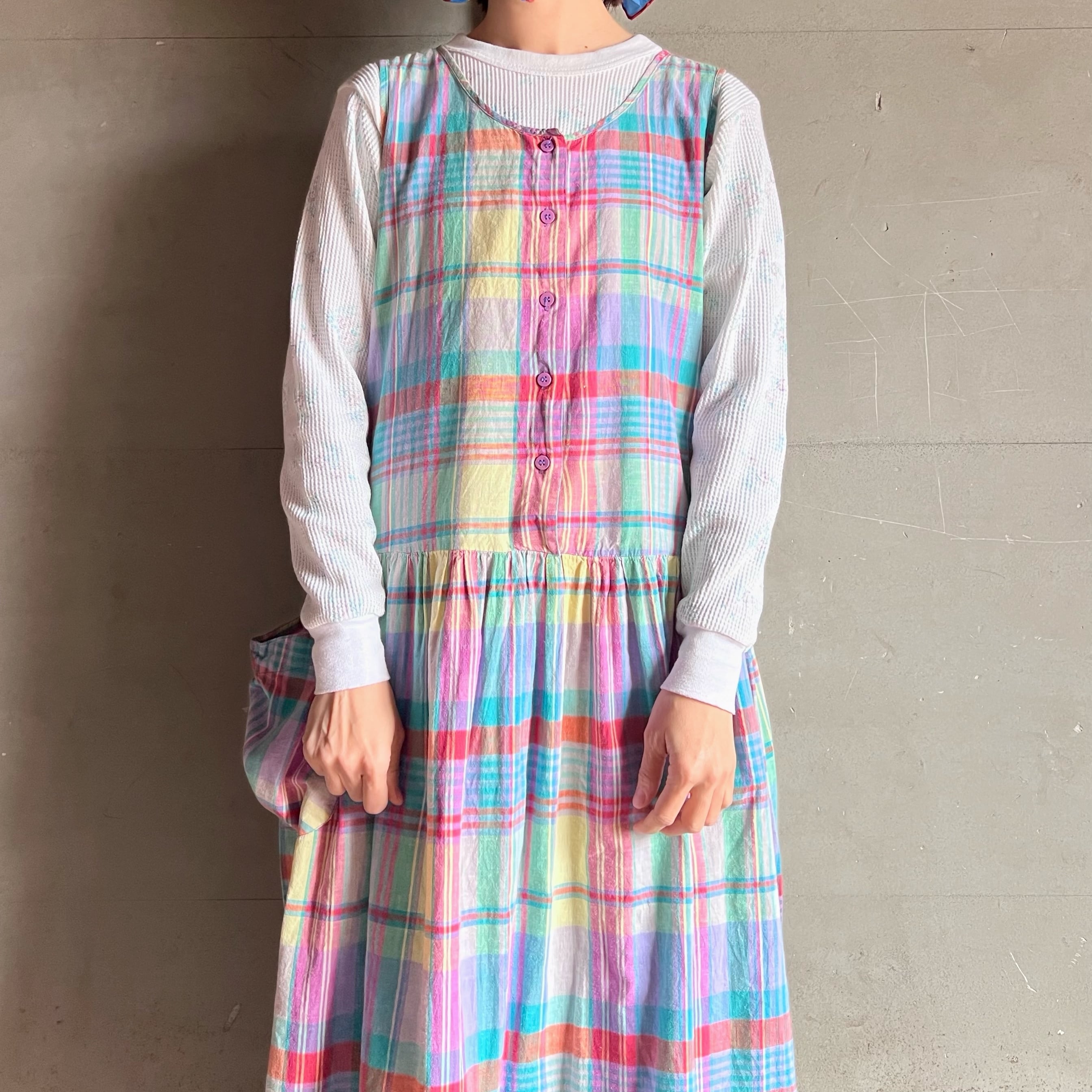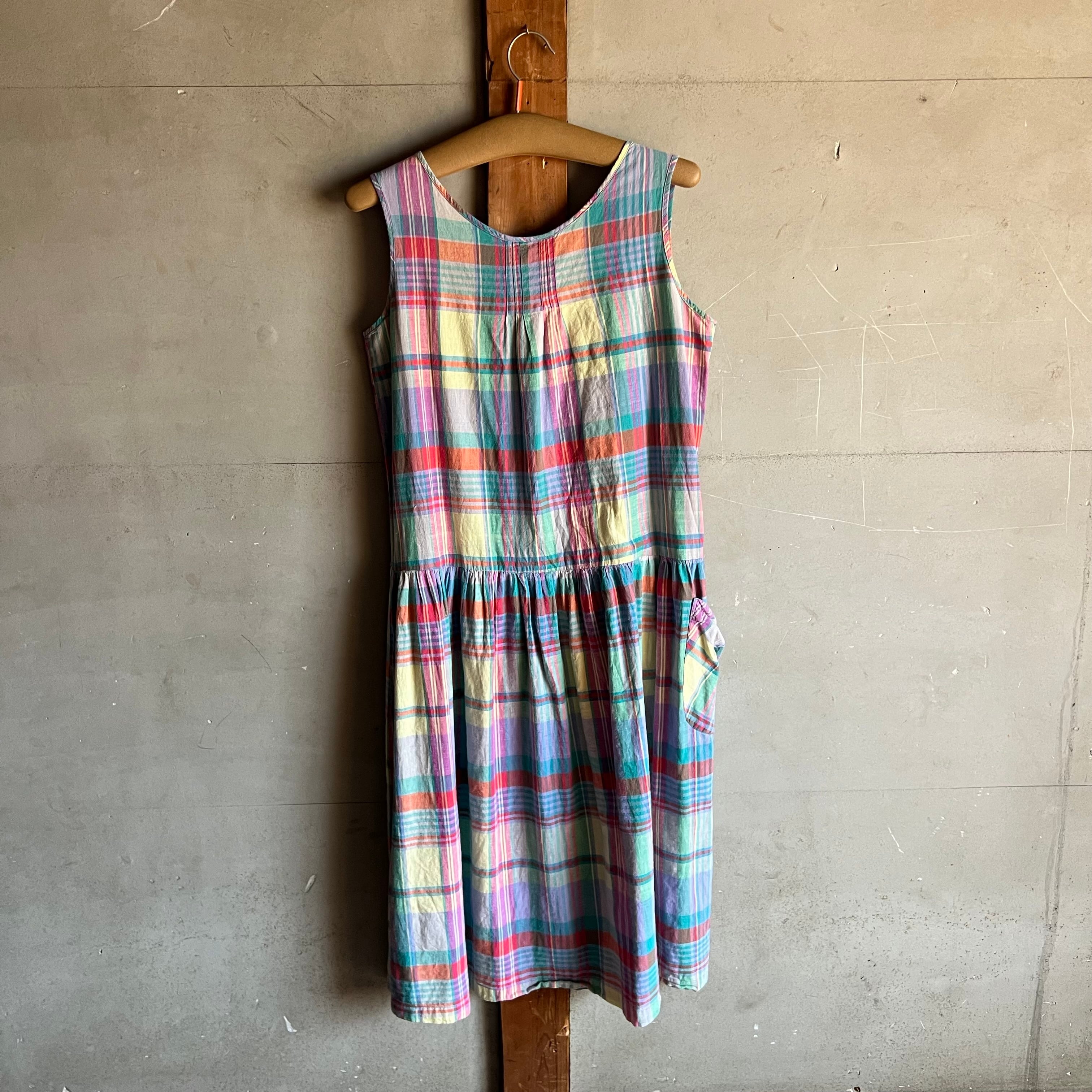 カラフルなチェック模様、ポケットがついているのも嬉しい。