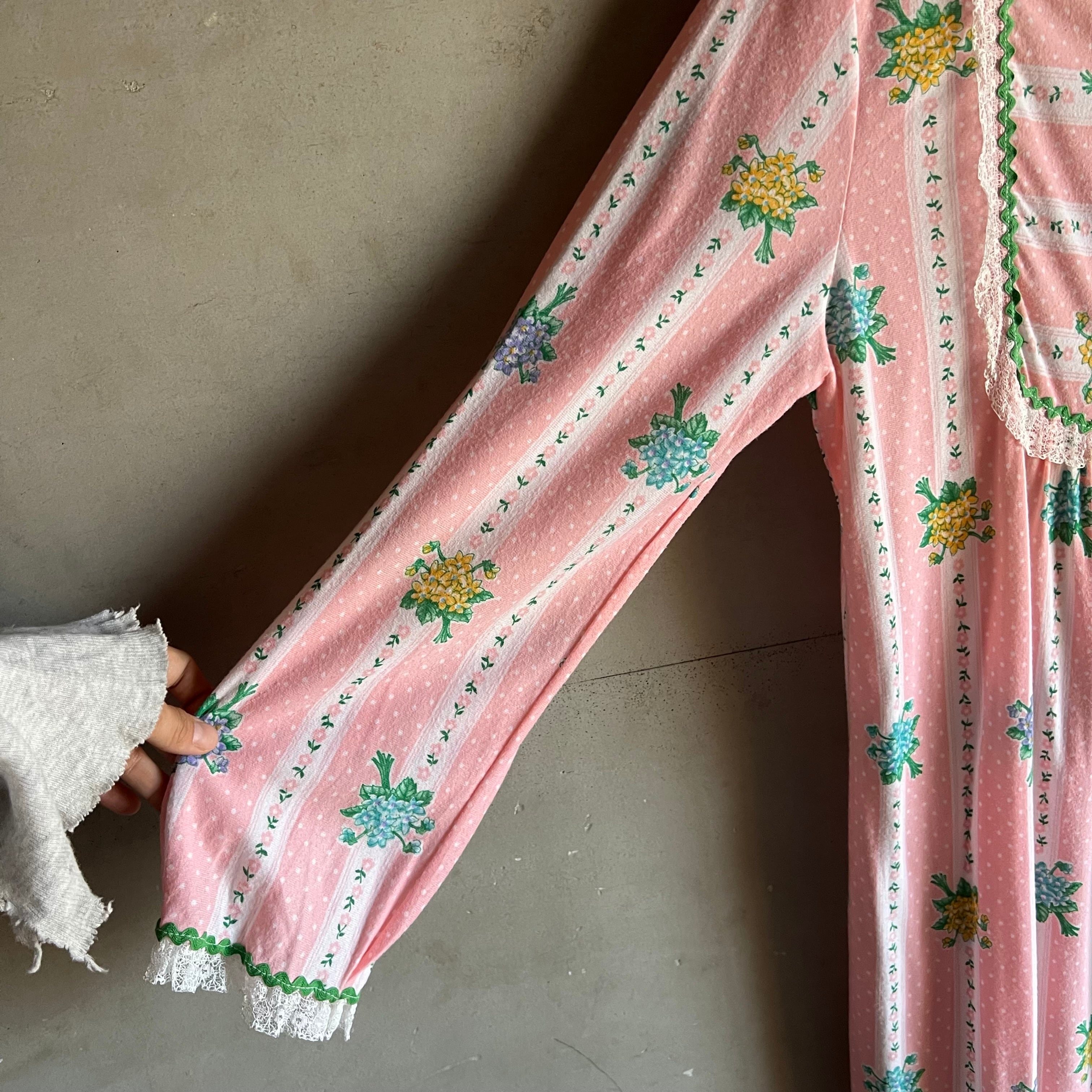春らしい薄手の起毛コットン生地のワンピース。