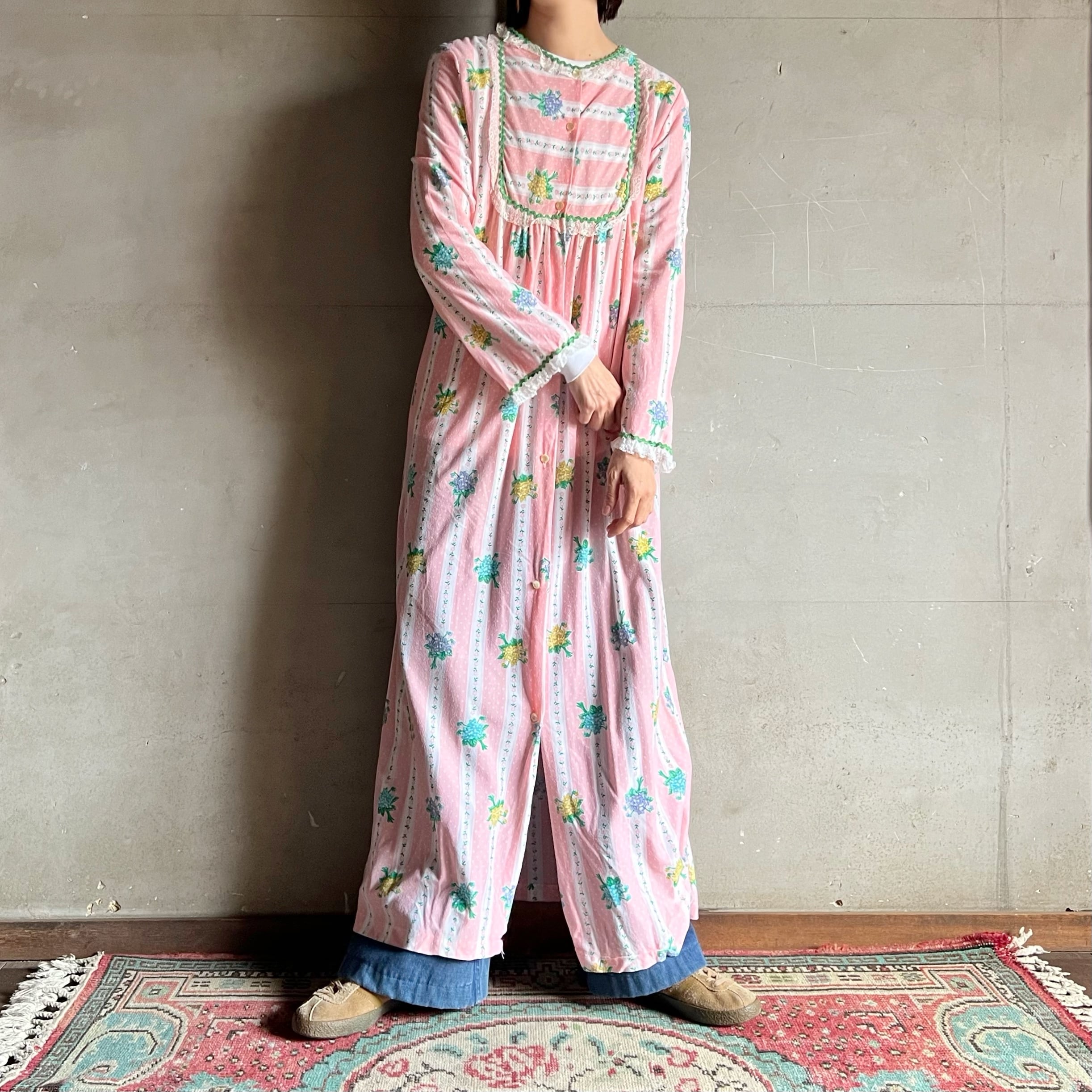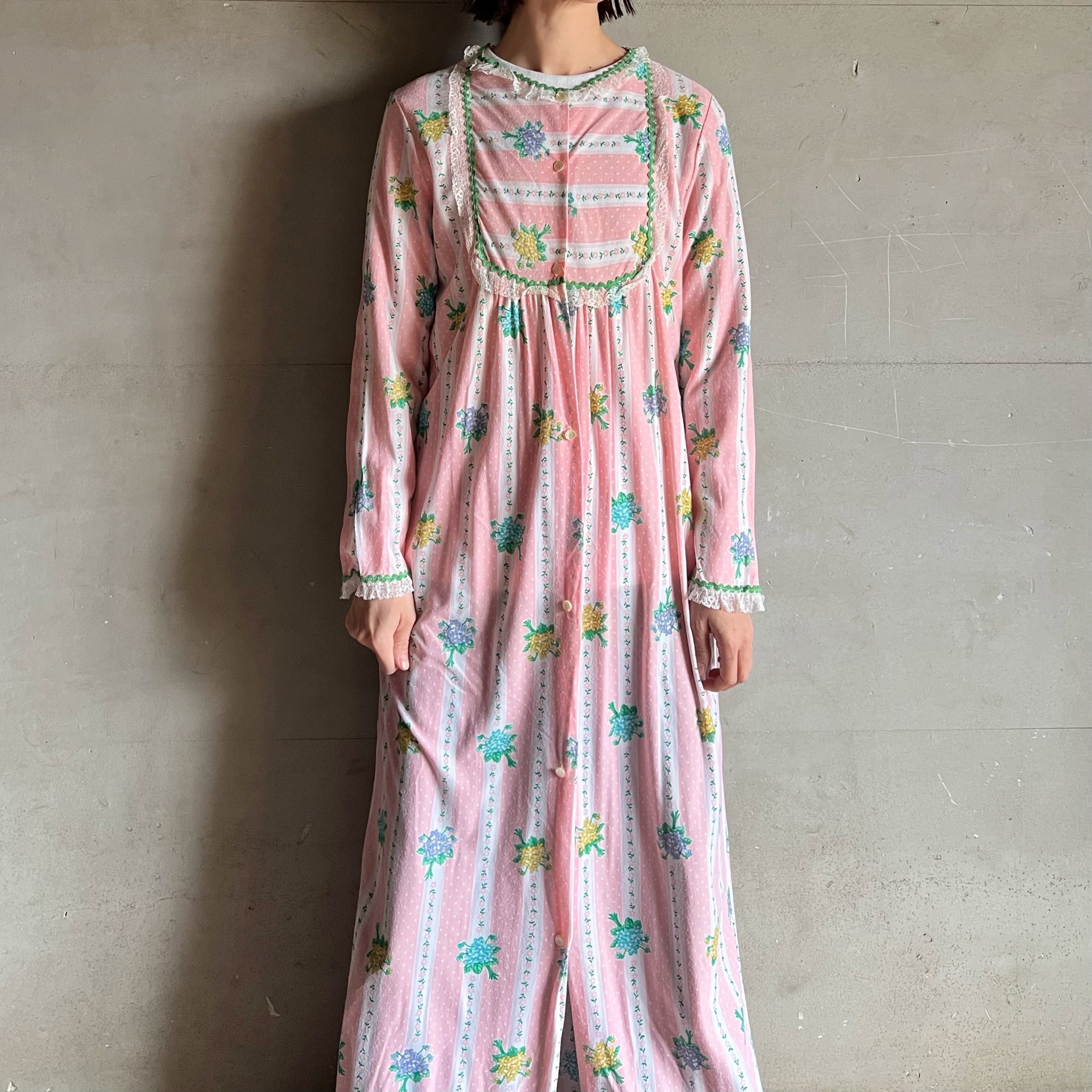 70s Floral Stripe Dress【1141】