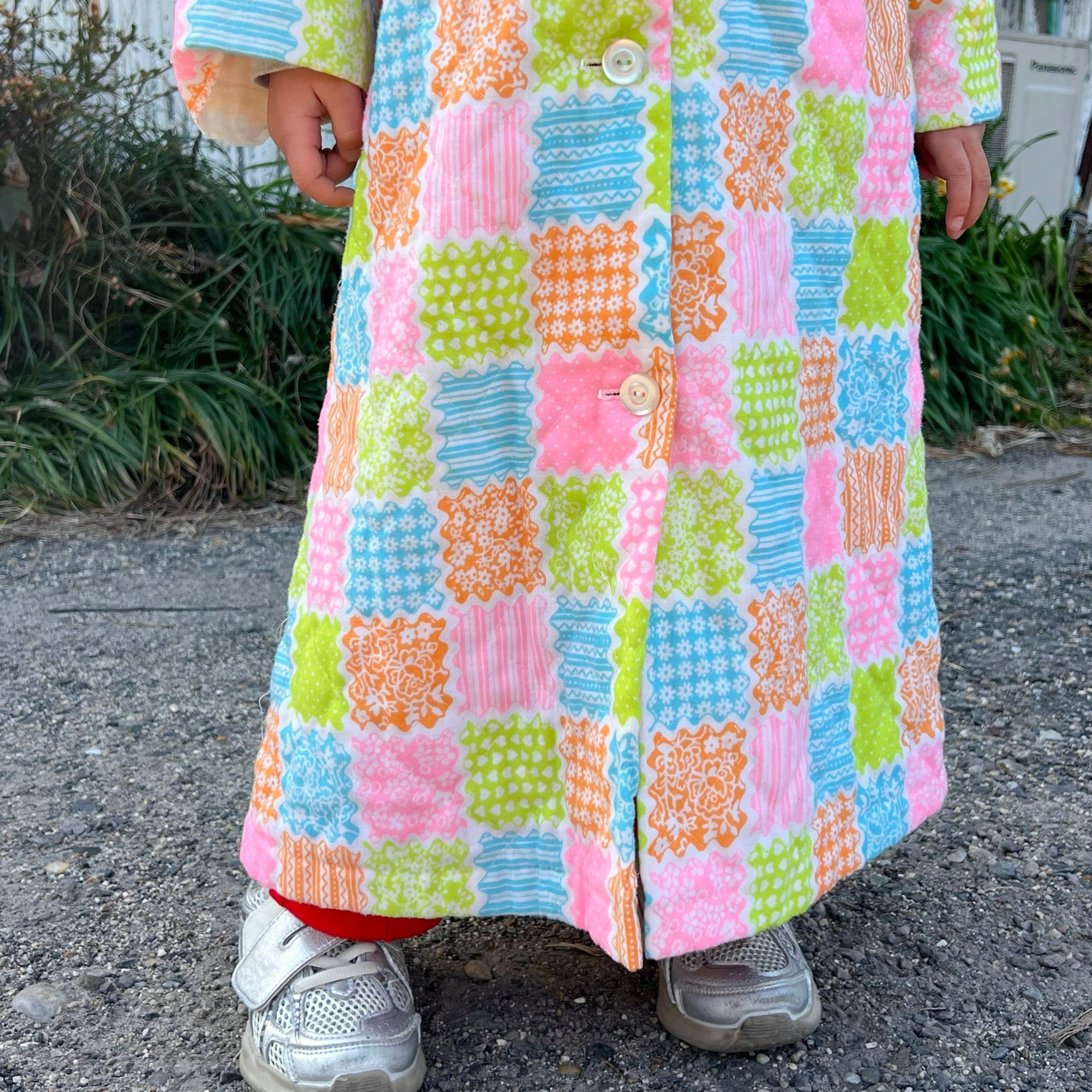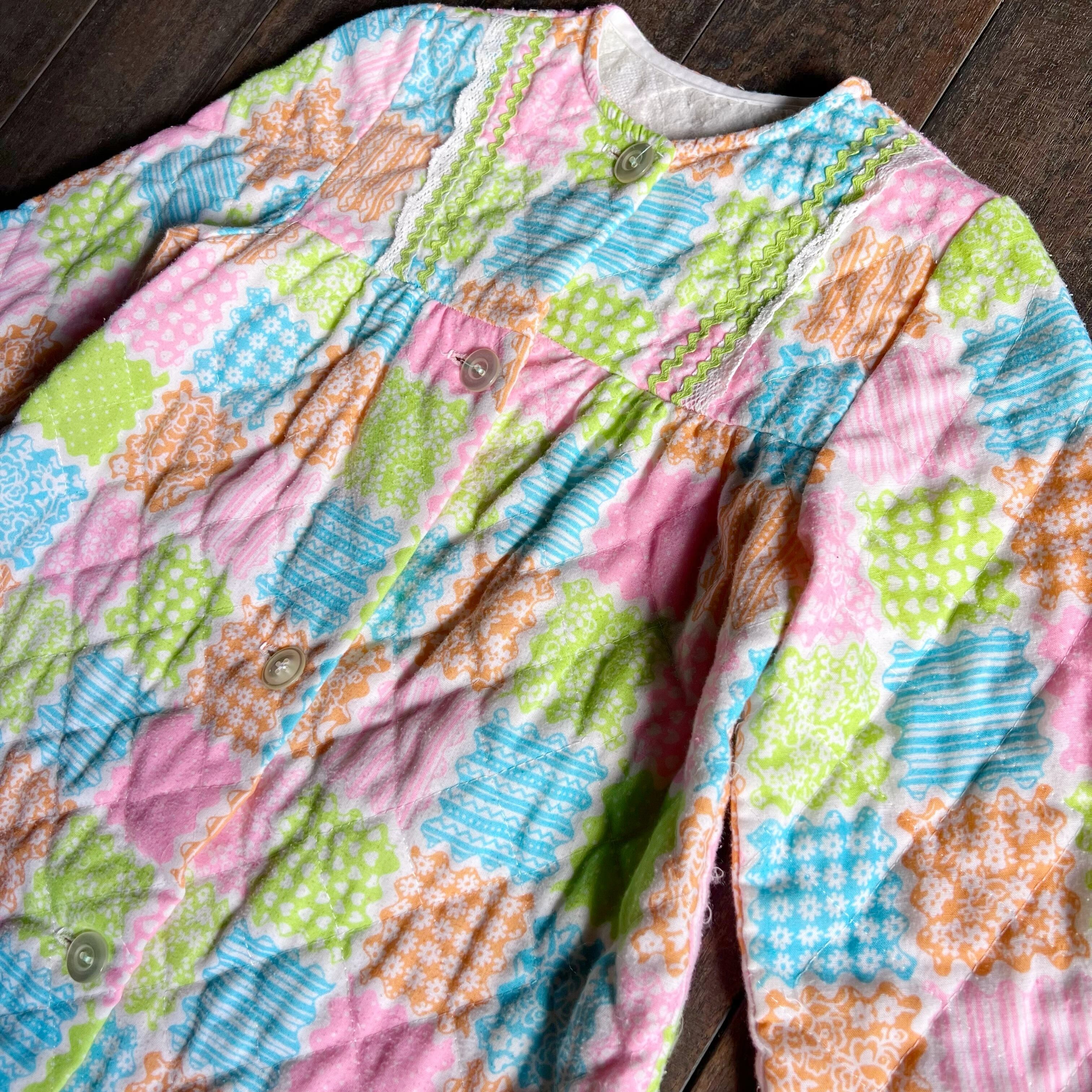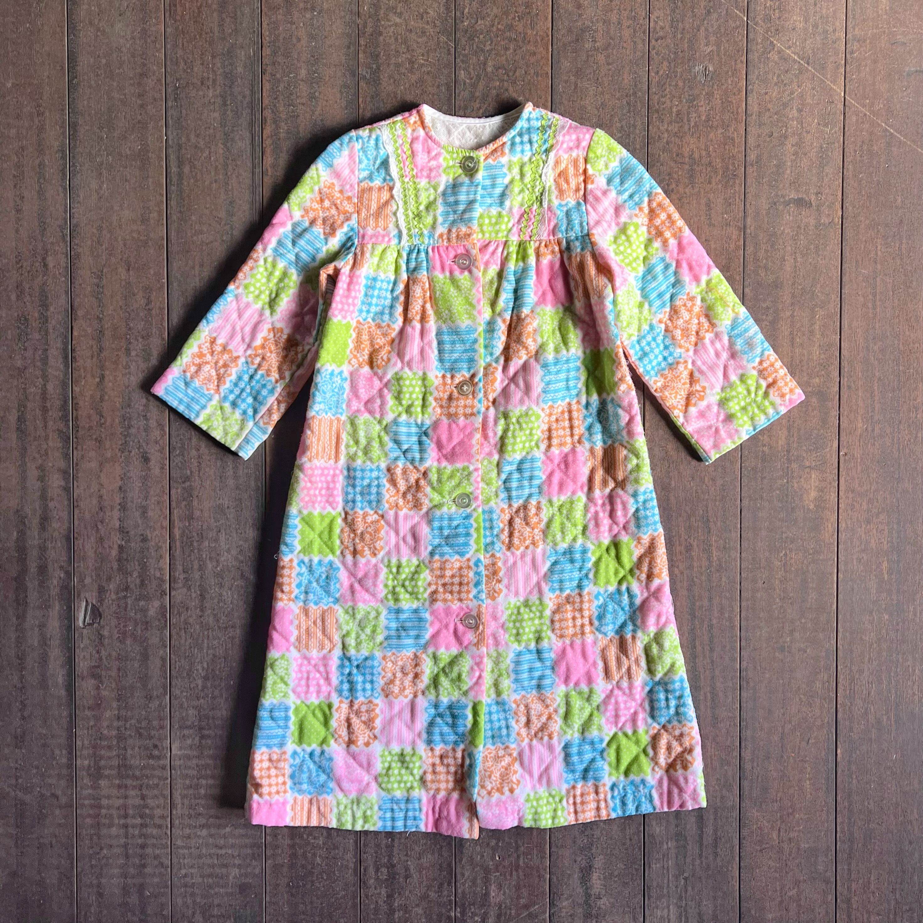 パステルカラーのパッチワーク柄が可愛いキルティングガウン。
