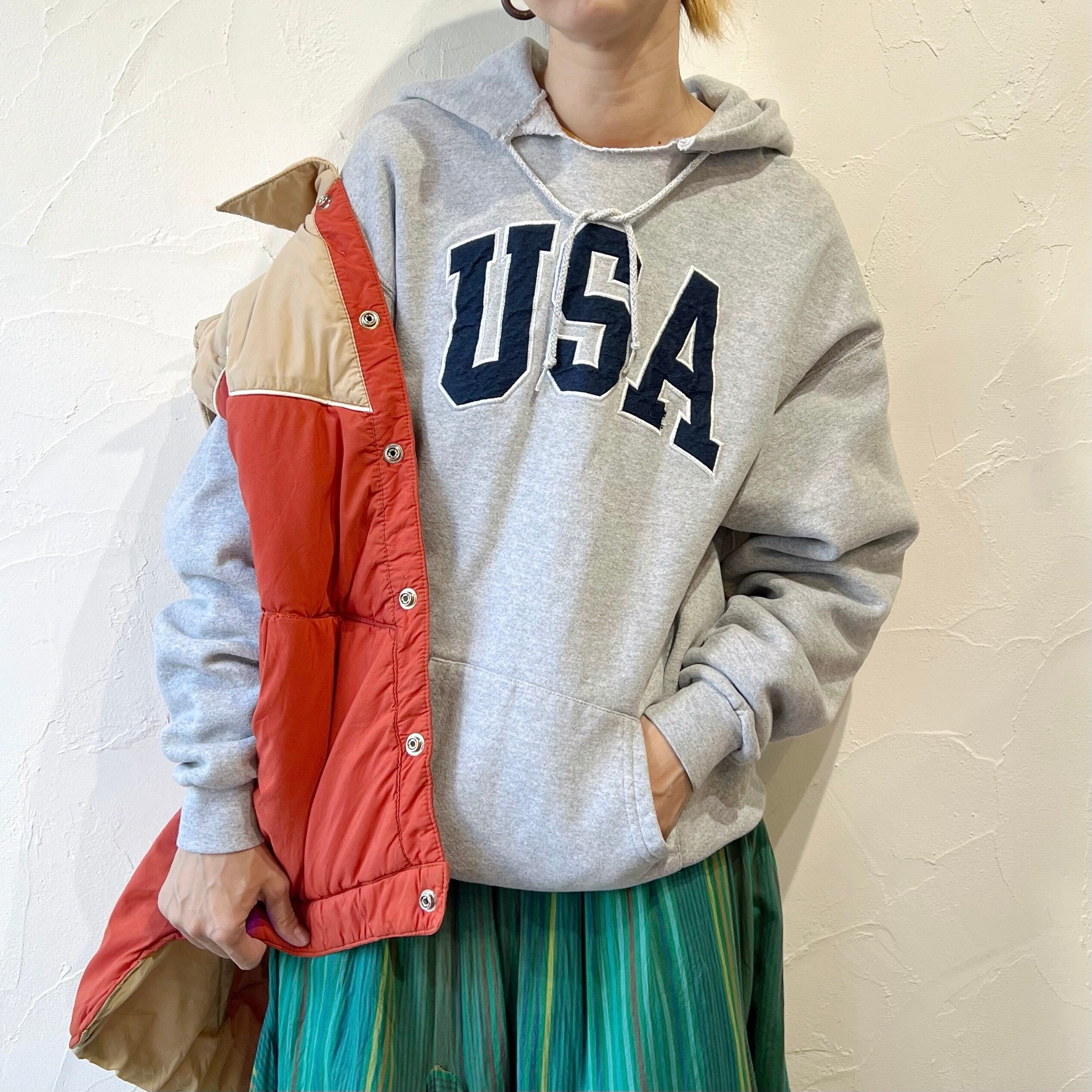 大きなUSAのフェルトのパッチがインパクト大のフーディー。