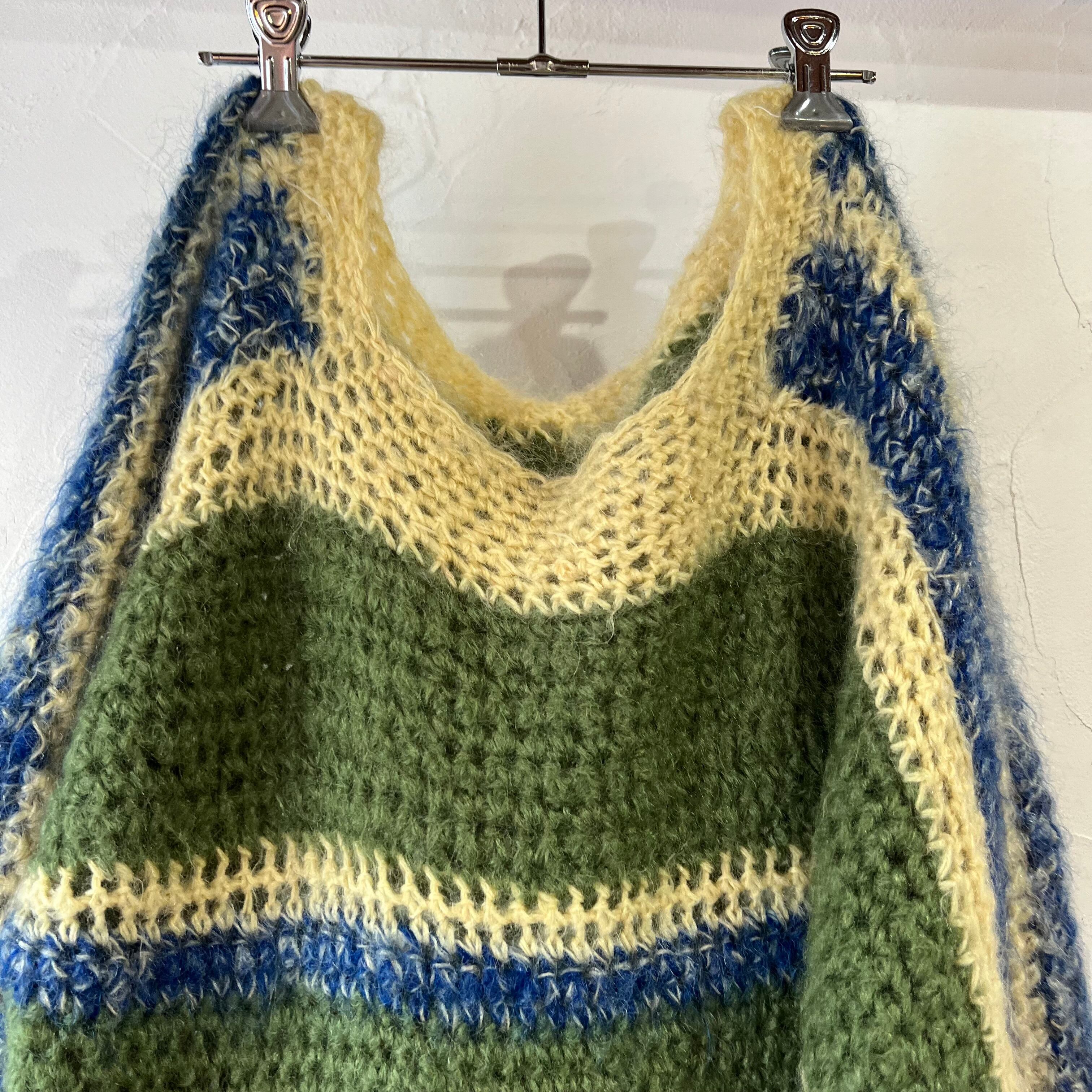 ざっくりと編まれた七分袖、優しいカラーで春先にもピッタリのアイテムではないでしょうか。