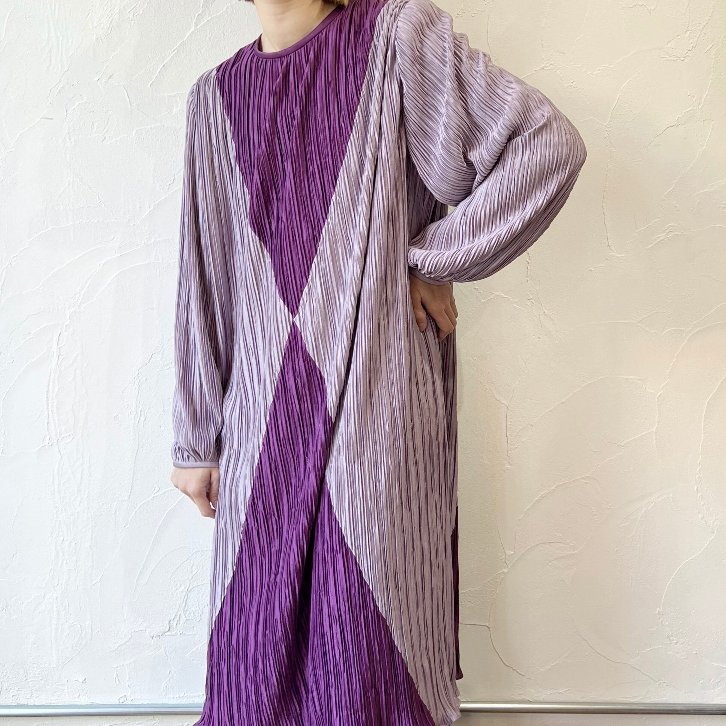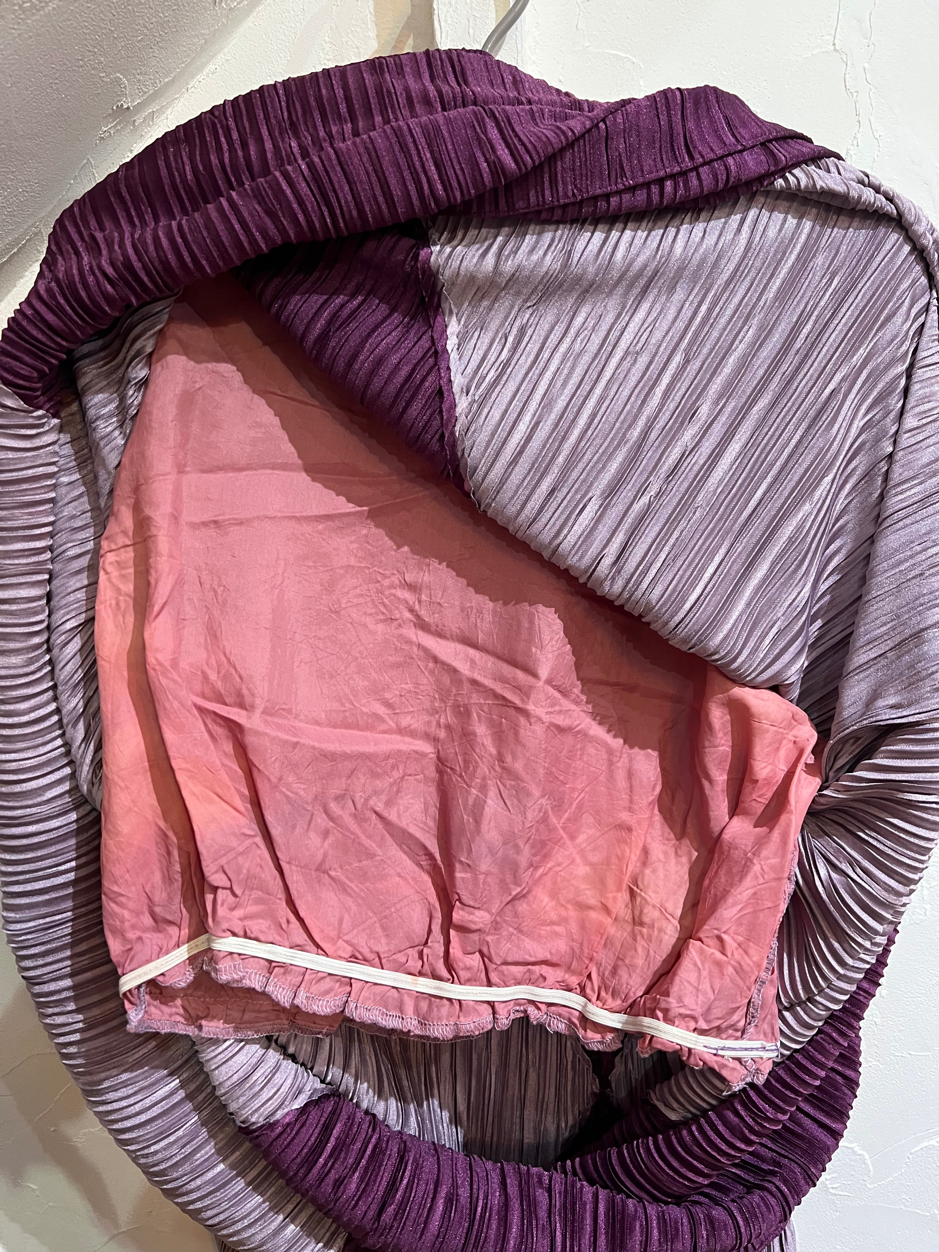 ランダムプリーツのラベンダーとパープルカラーは柄ではなく生地が切り替えられています。