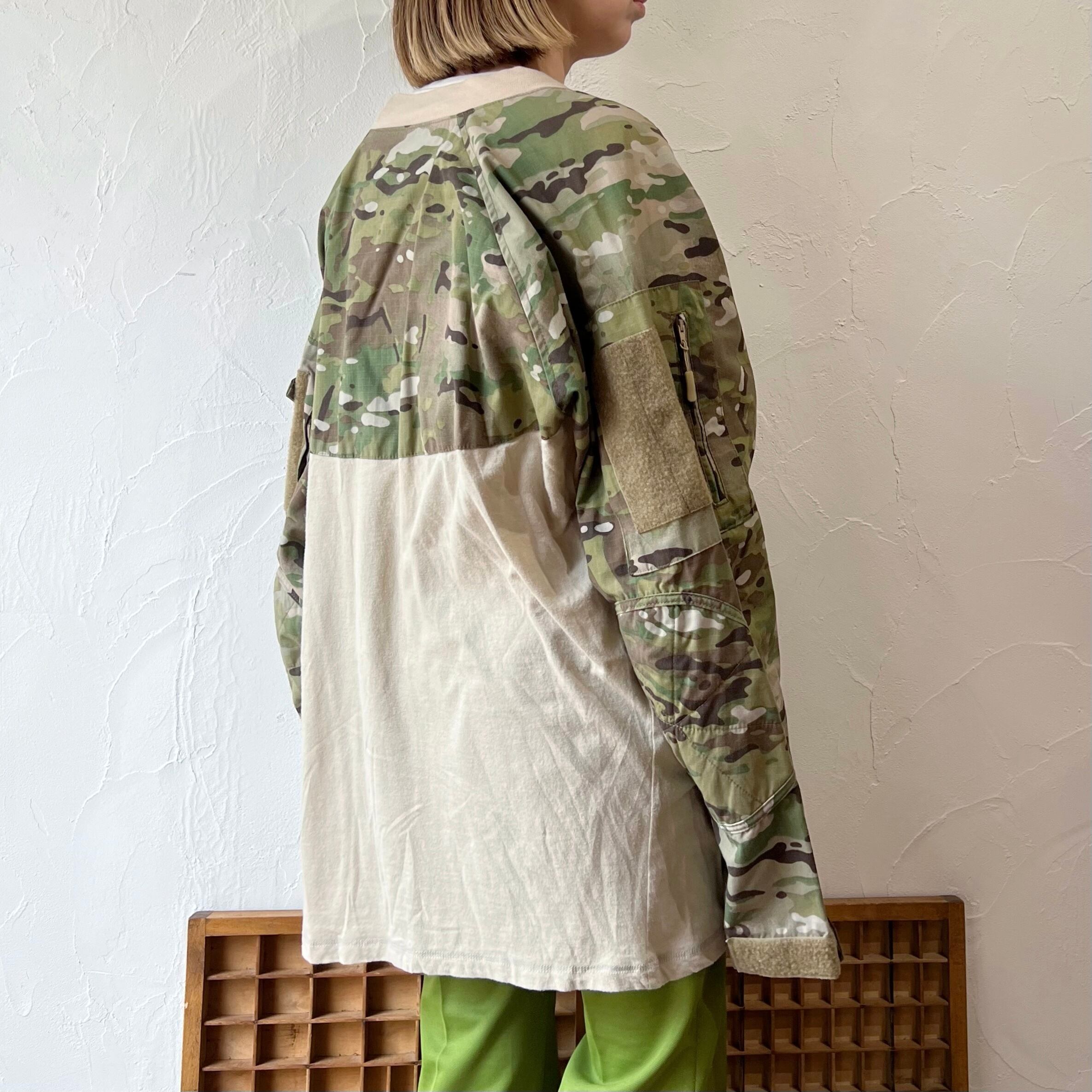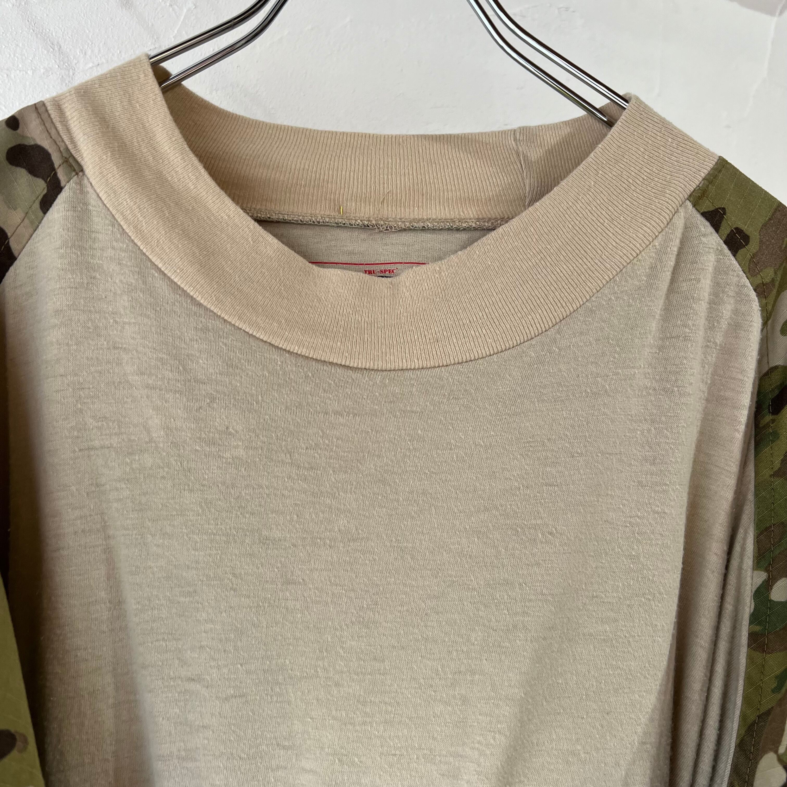Tシャツのボディーにジャケットの袖が切り替えられたようなトップス。