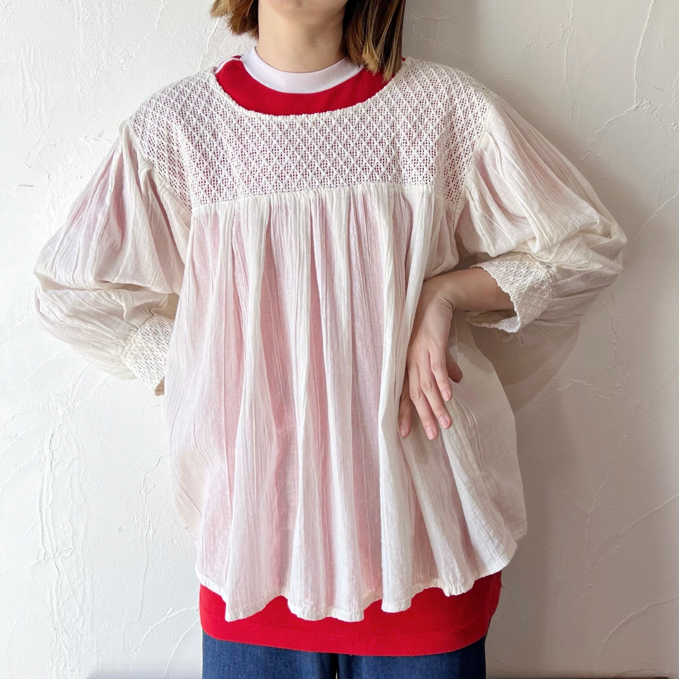 胸元から肩、背中にかけてのコットンのレースが可愛いコットンガーゼトップス。