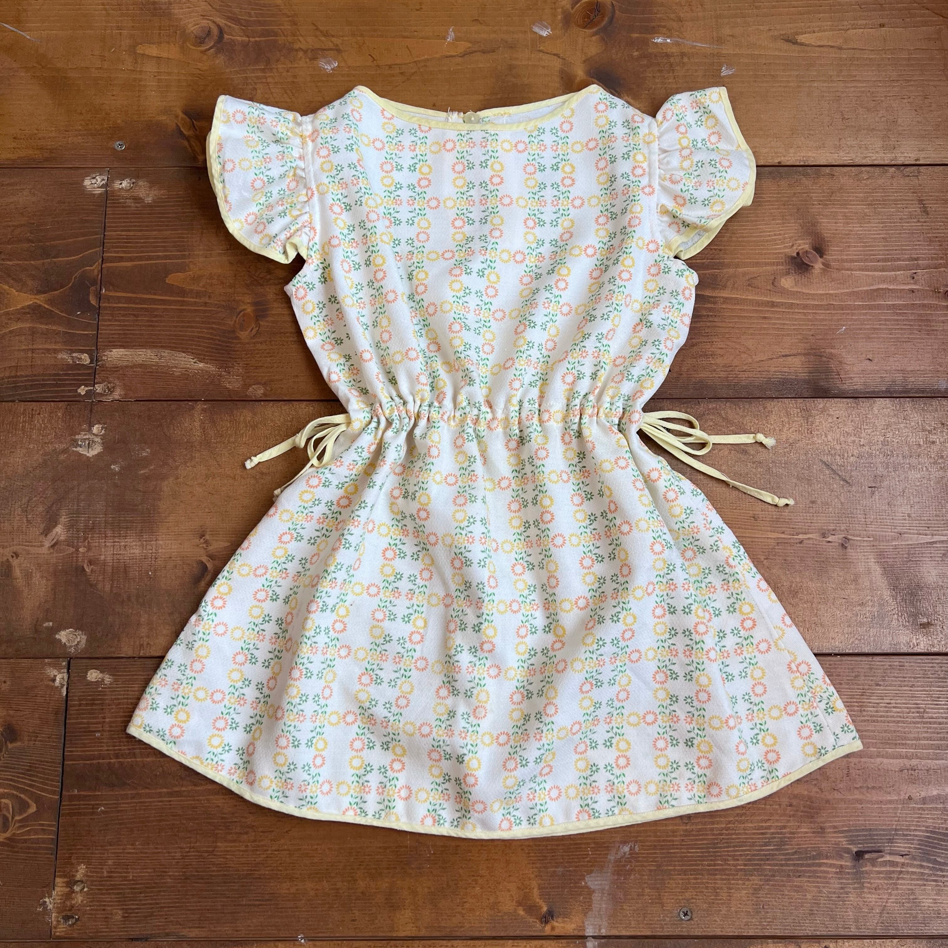 ひまわりを彷彿とさせるイエローとオレンジのお花模様が夏らしくとても可愛いワンピース。
