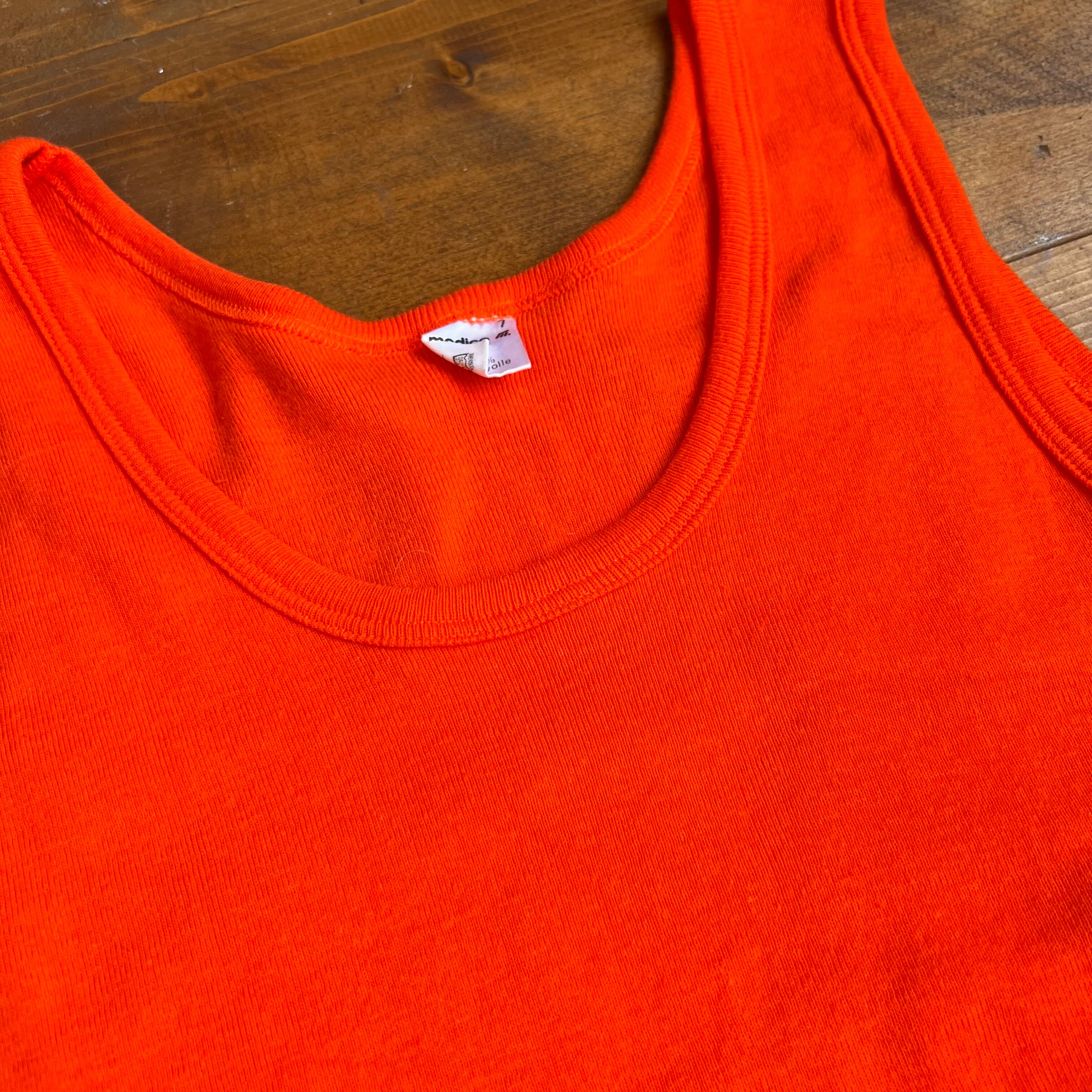 鮮やかオレンジのヨーロッパのタンクトップ。
