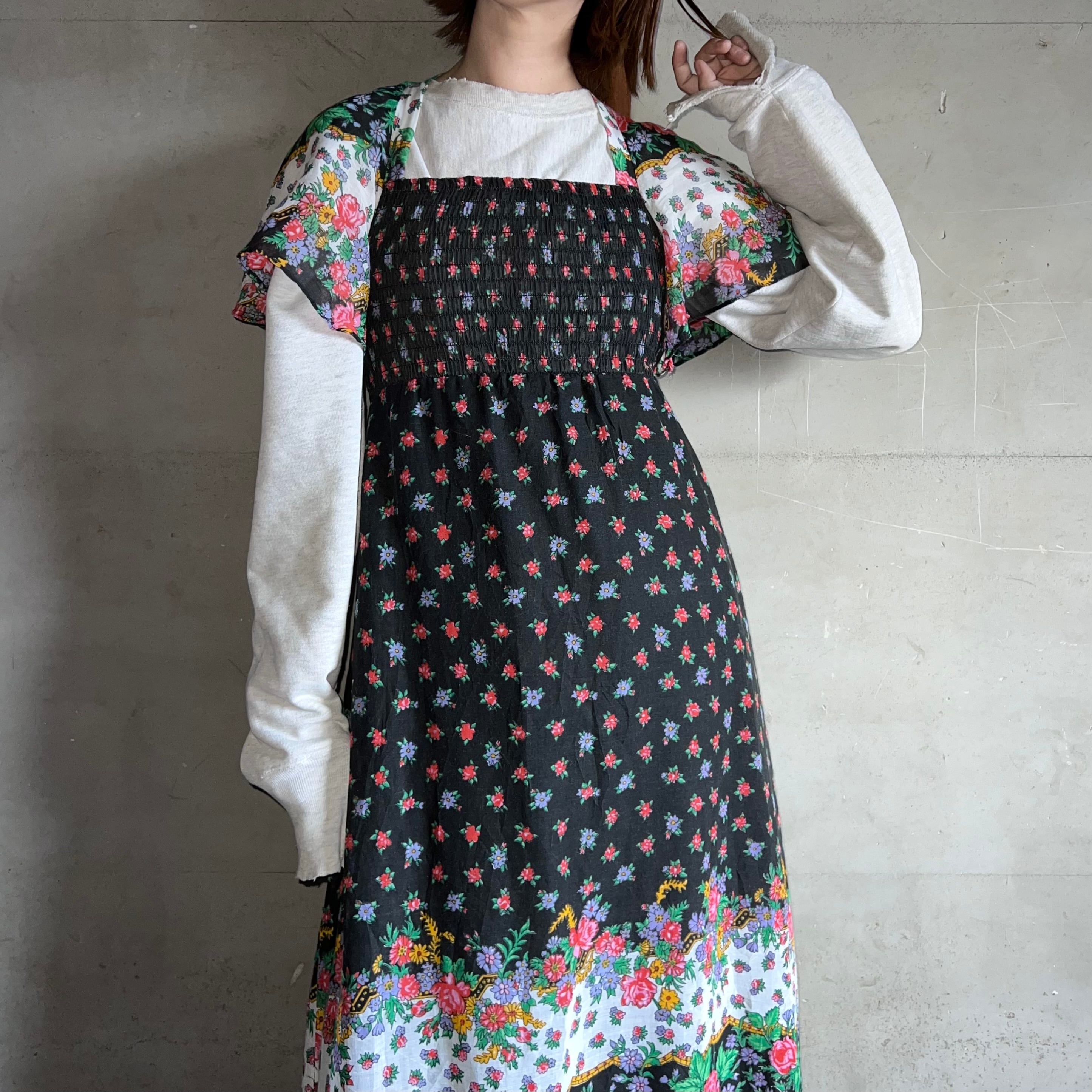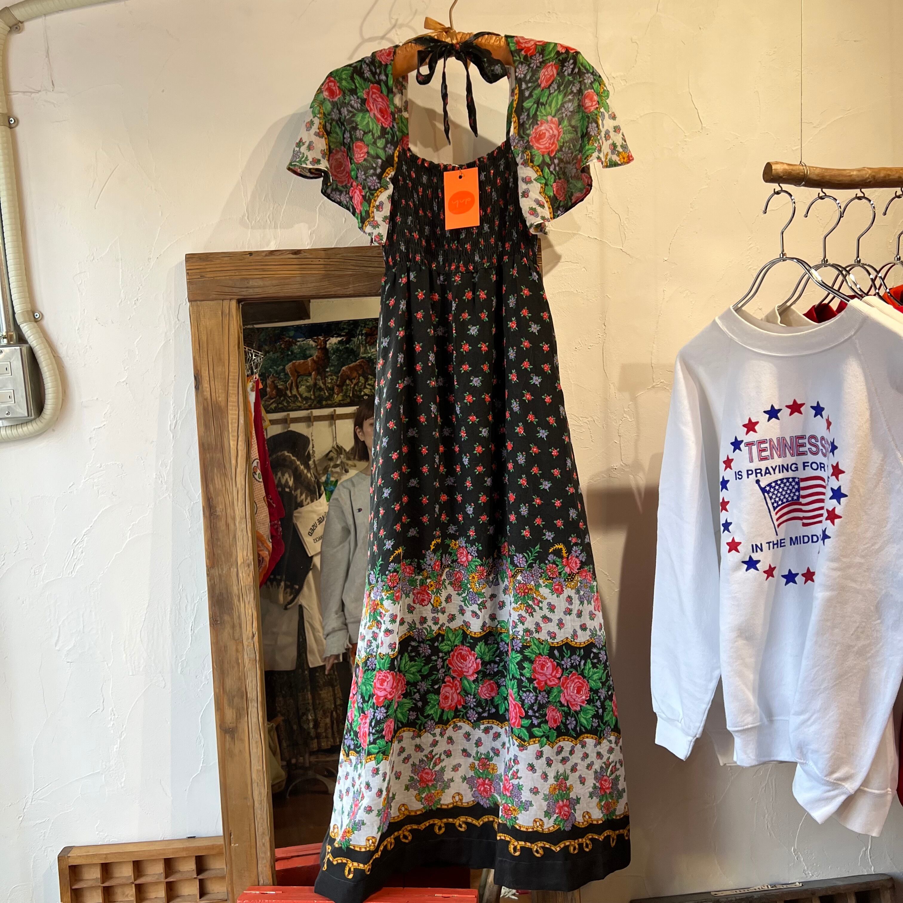 シャーリングの花柄ワンピース。