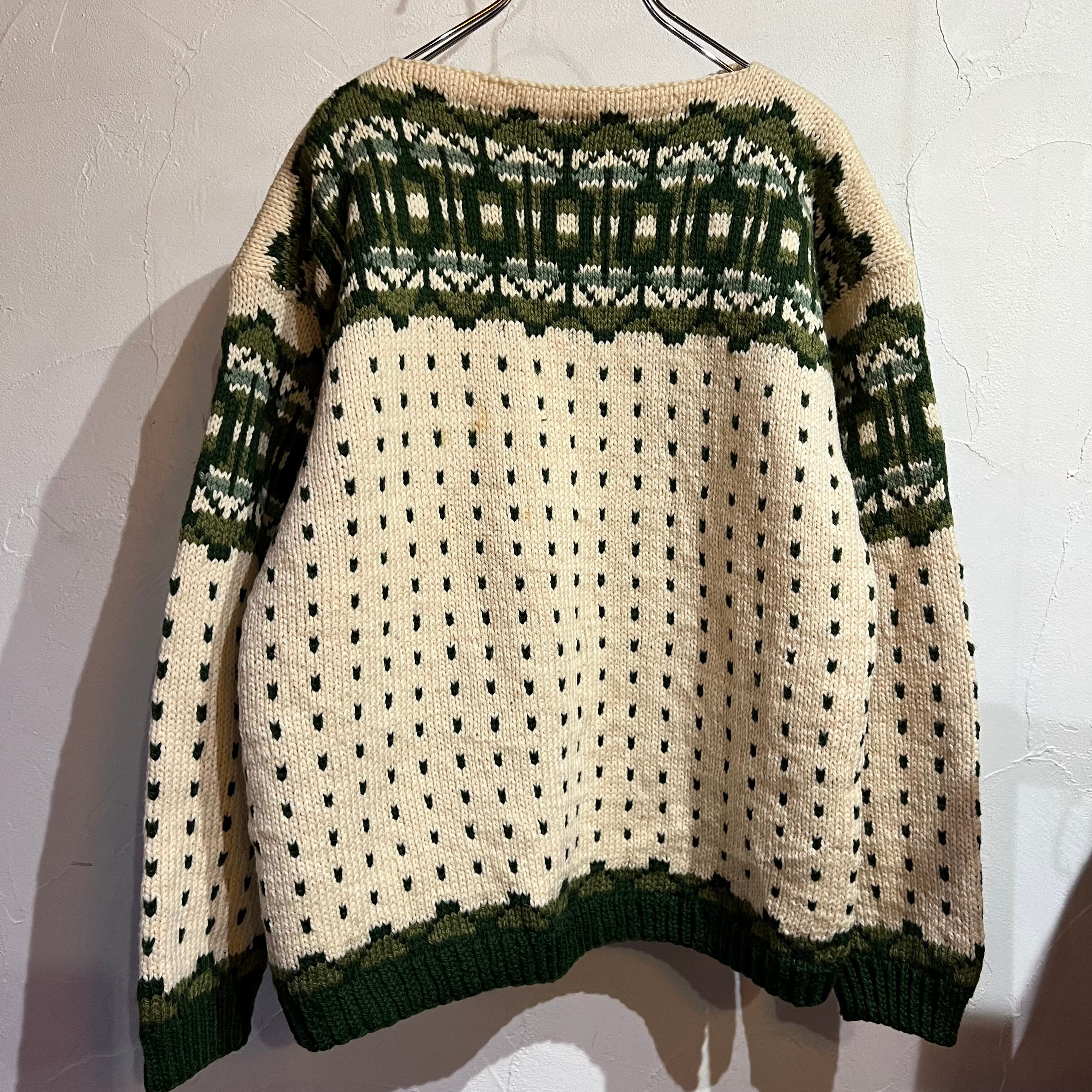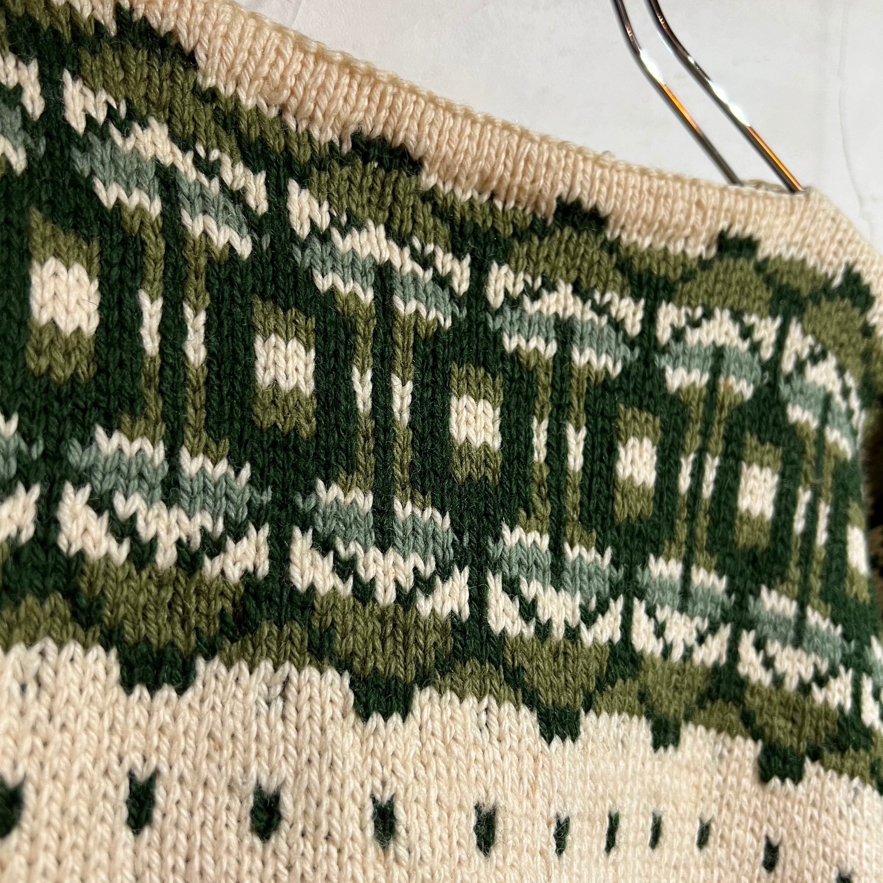 グリーンの珍しいノルディックセーター。