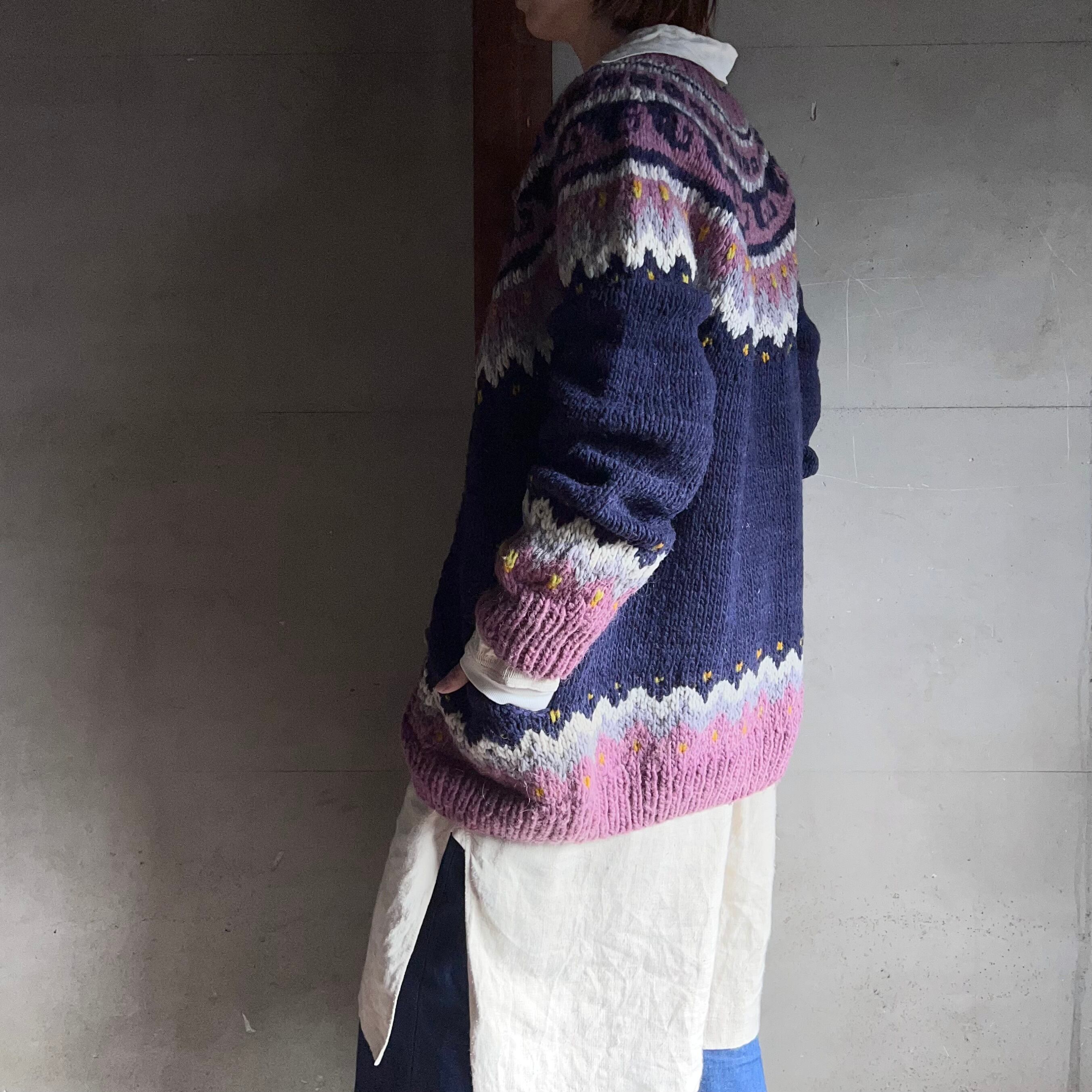 ネイビーとパープルのノルディック風エクアドルカーディガンです。