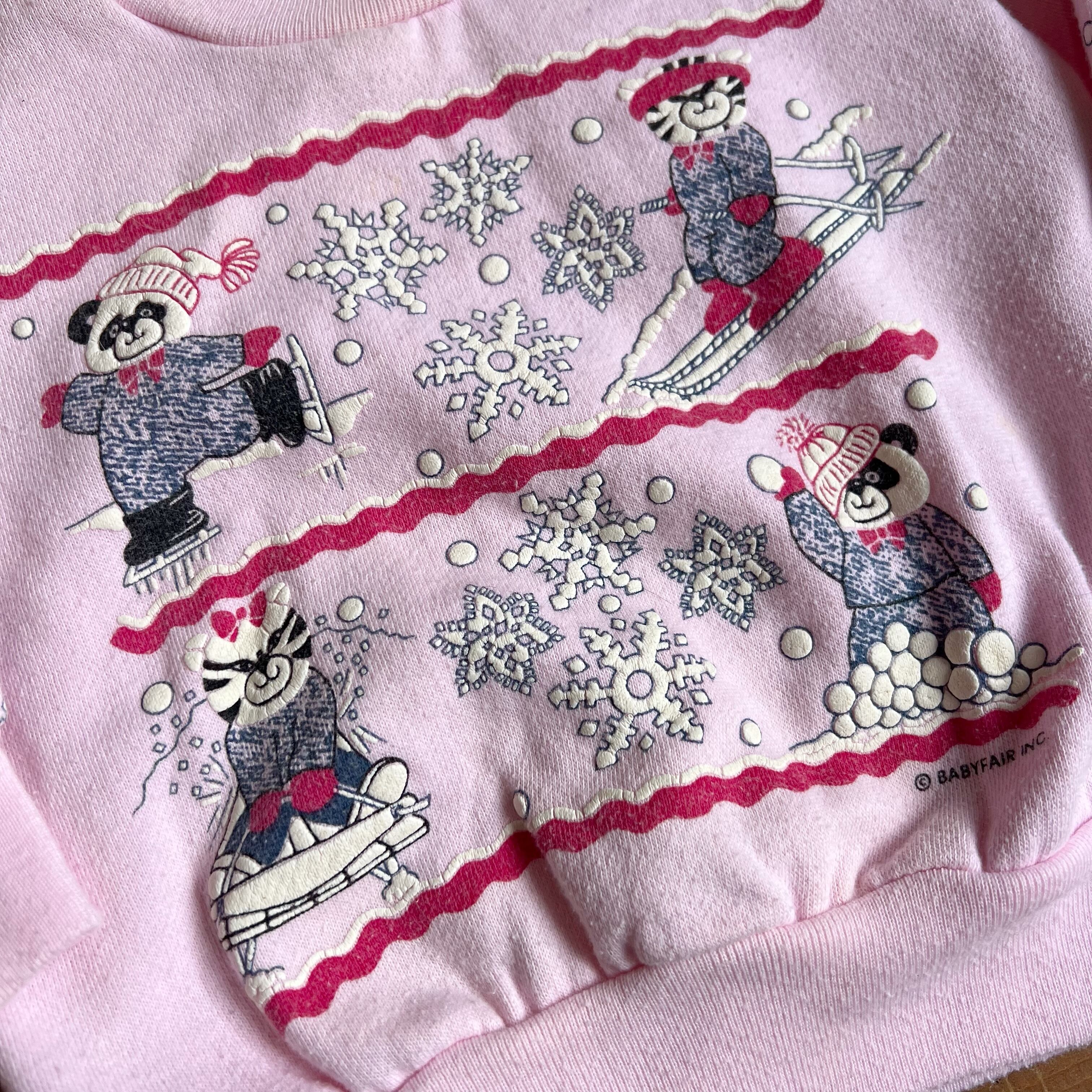 ピンクベースに雪の柄のプリントスウェットです。